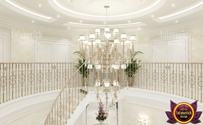 Отделка каменной лестницы в проекте классического холла включает декоративные элементы, кованые перила и сами ступени. Эстетическое восприятие лестничной системы зависит от качественных свойств материалов: ступени из белого и мягкого кремового мрамора придают помещению праздничность, а блеск минерала создаёт ощущение благородной роскоши.