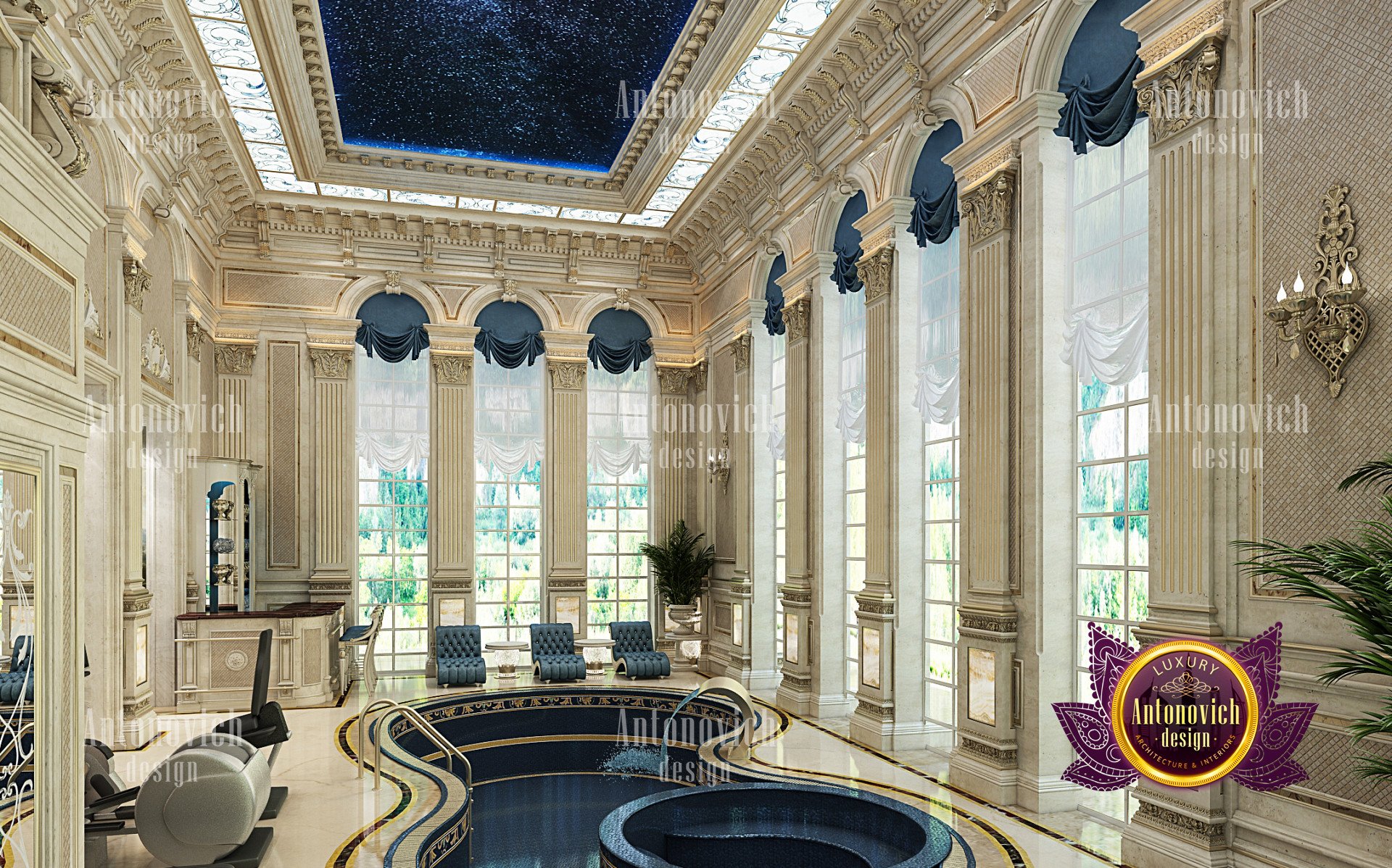 Антонович Дизайн (Antonovich Design) создал изысканный и элегантный интерьер роскошного бассейна. Он лёгкий и воздушный, поэтому идеально подходит для роскошных домов. Антонович Дизайн преобразил зону, придав ей элегантность: дизайн роскошного бассейна в доме заметен в оформлении стен и общей атмосфере. Для многих проектов классический дизайн бассейна для дома остаётся благородным и притягательным. Вы увидите очарование в элегантном декоре стен бассейна. Тёмная палитра соседствует с современными акцентами. Вы не устанете плавать в этом интерьер бассейна для отдыха и релаксации — он создан, чтобы дарить вам расслабление. Проект демонстрирует крытый бассейн для частного дома. Он даёт идеи оформления бассейна в доме.