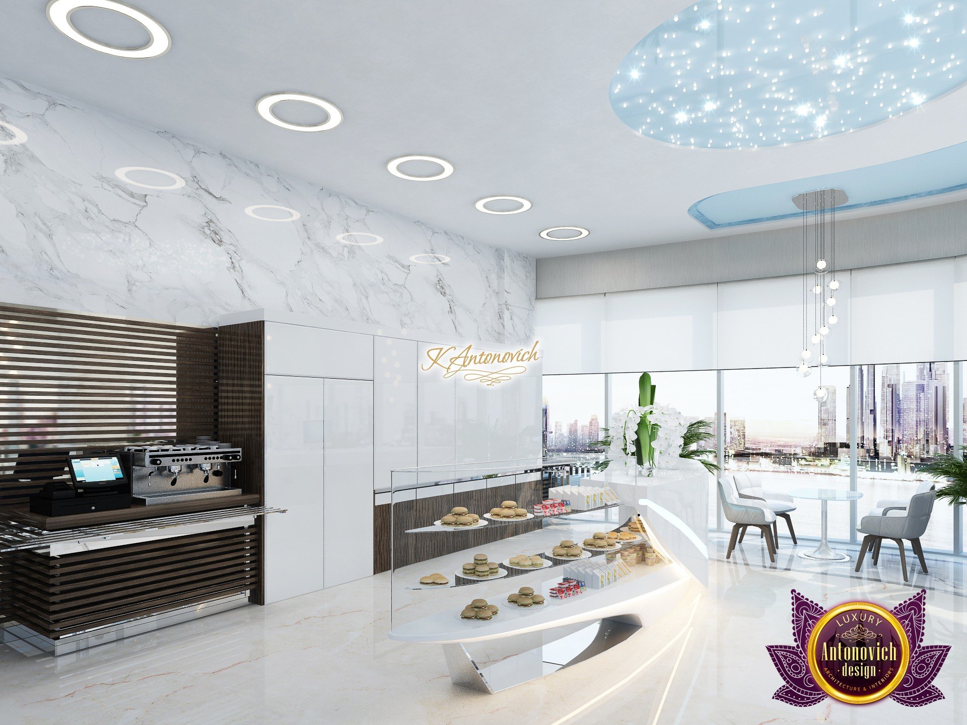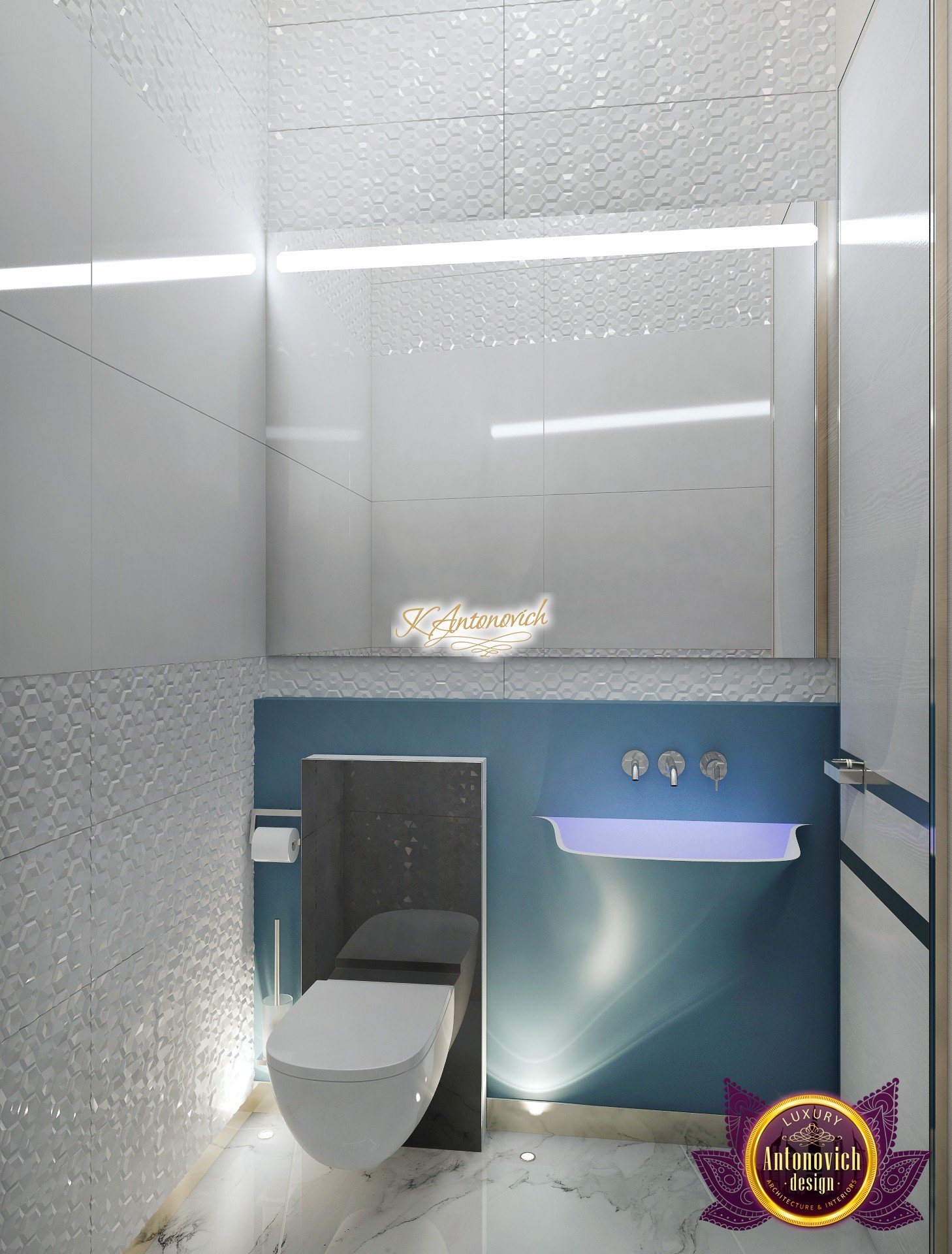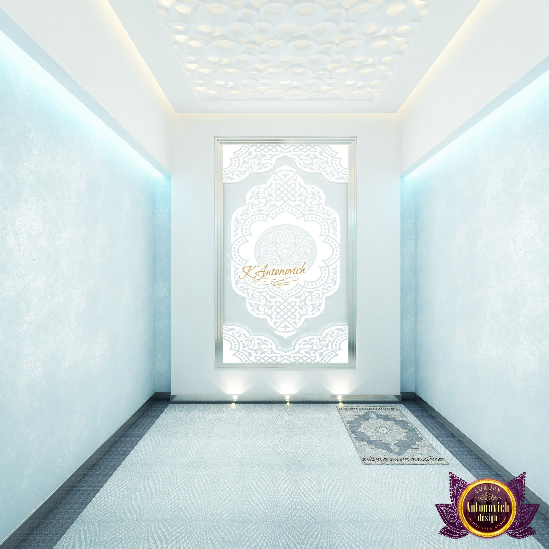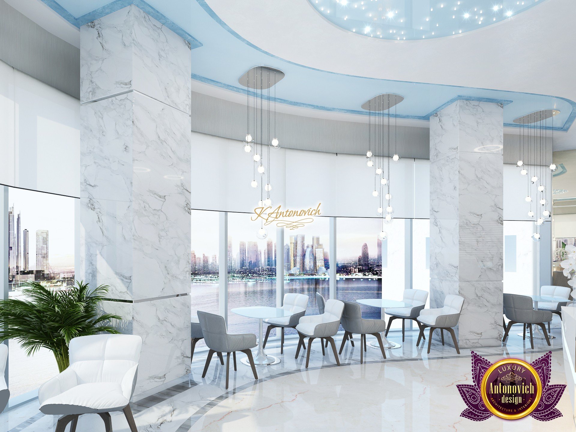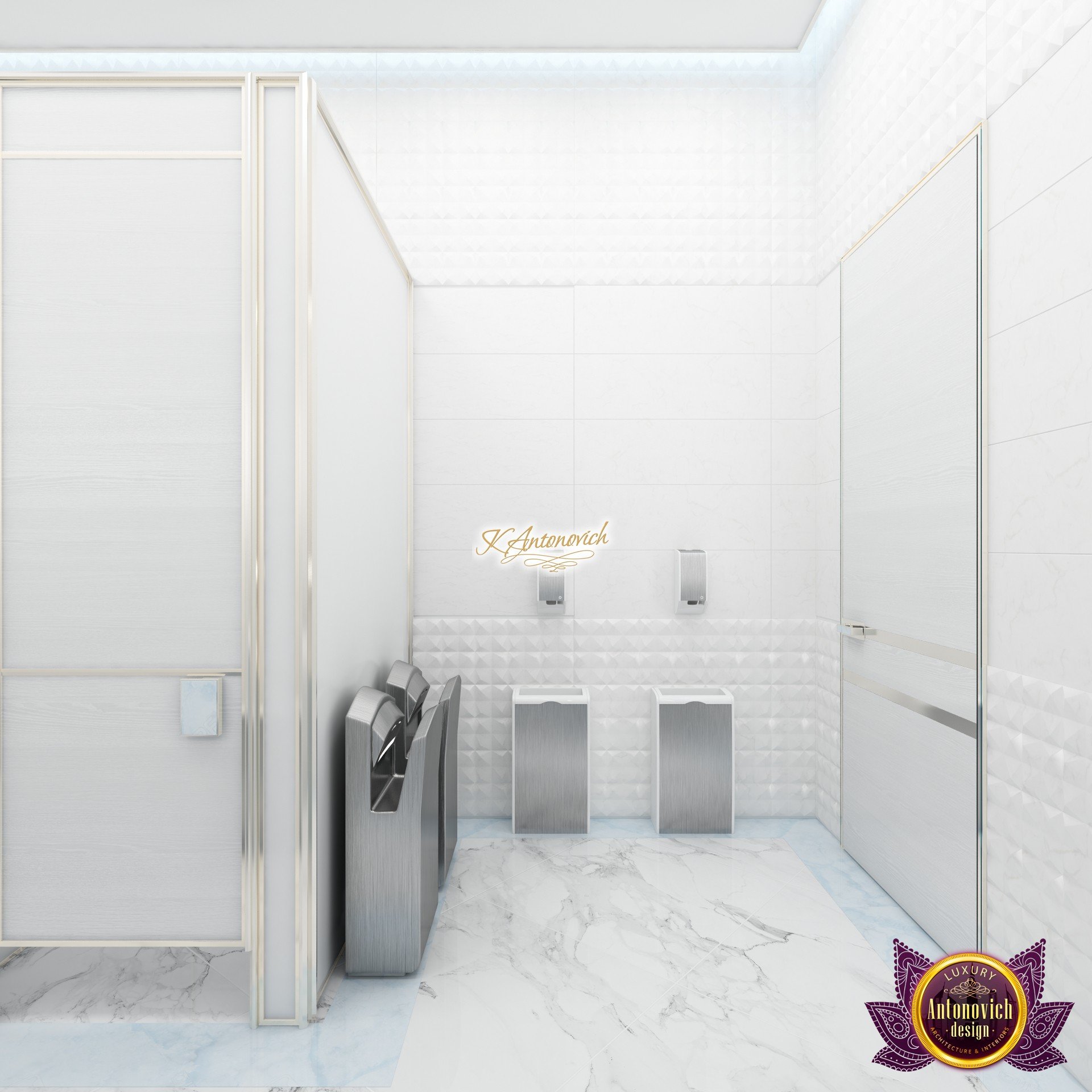 В основе проекта — дизайн частной клиники в современном стиле. Такой подход подчёркивает дизайн клиники и задаёт нужное настроение для процедур. Дизайнеры интерьера студии «Антонович Дизайн (Antonovich Design)» создали образ лёгкого и комфортного пространства, в котором ощущается эстетическое удовольствие. Этот интерьер настраивает каждого посетителя на правильное восприятие пространства и задаёт необходимое настроение для процедур. Концепция проекта имеет уникальные черты. Стены и полы облицованы белым итальянским мрамором, а приемная клиники из итальянского мрамора подчёркивает премиальность проекта. Универсальность отделки стен дополняют объёмные 3d панели для стен клиники с волнистым орнаментом в серебристых тонах, что подчёркивает дизайн интерьера косметологической клиники. С тем же текстурным решением оформлена красивая зона ресепшн. Реализация проекта интерьера клиники под ключ всегда основывается на чёткости в подборе материалов. Просторный холл разделён на несколько зон для отдыха — зонирование пространства в клинике выполнено. Для этого использованы потолочный декор и оригинальные перегородки. В интерьере доминирует светлая палитра холодных оттенков от белого до мягкого голубого, создавая светлый интерьер клиники премиум. Дизайн помещений стал источником абсолютного комфорта как для клиентов клиники, так и для сотрудников — интерьер клиники для комфортных процедур обеспечен продуманной планировкой. Чтобы дополнить атмосферу тёплыми природными нотами, авторы предложили вертикальное озеленение стен клиники. Запрос на уютный интерьер для сотрудников клиники учитывался при планировке. Подбор материалов для дизайна клиники основан на ясном понимании используемых фактур. Дизайн интерьера косметологической клиники от нашей студии — переплетение продуманных дизайнерских идей и инноваций.