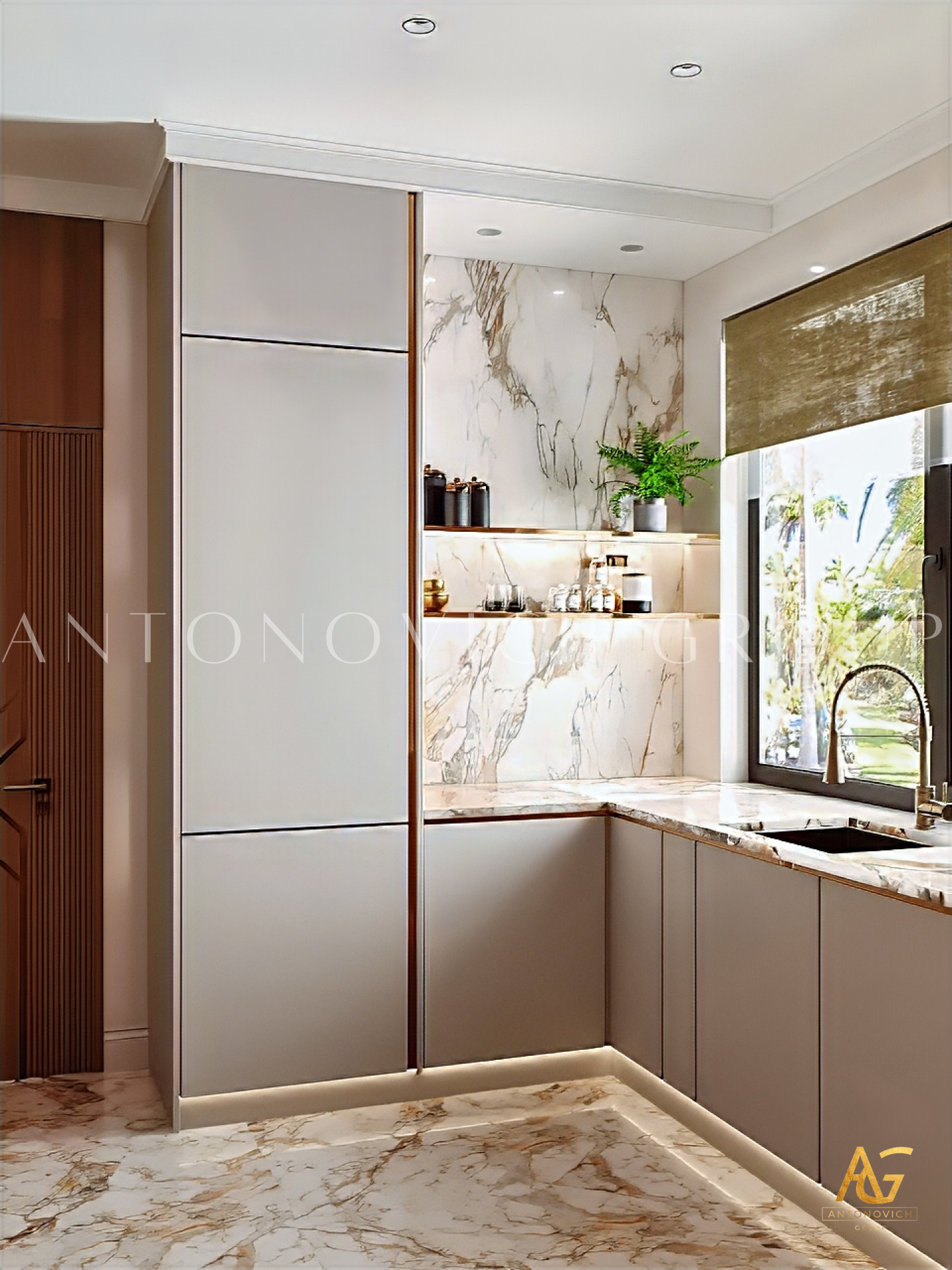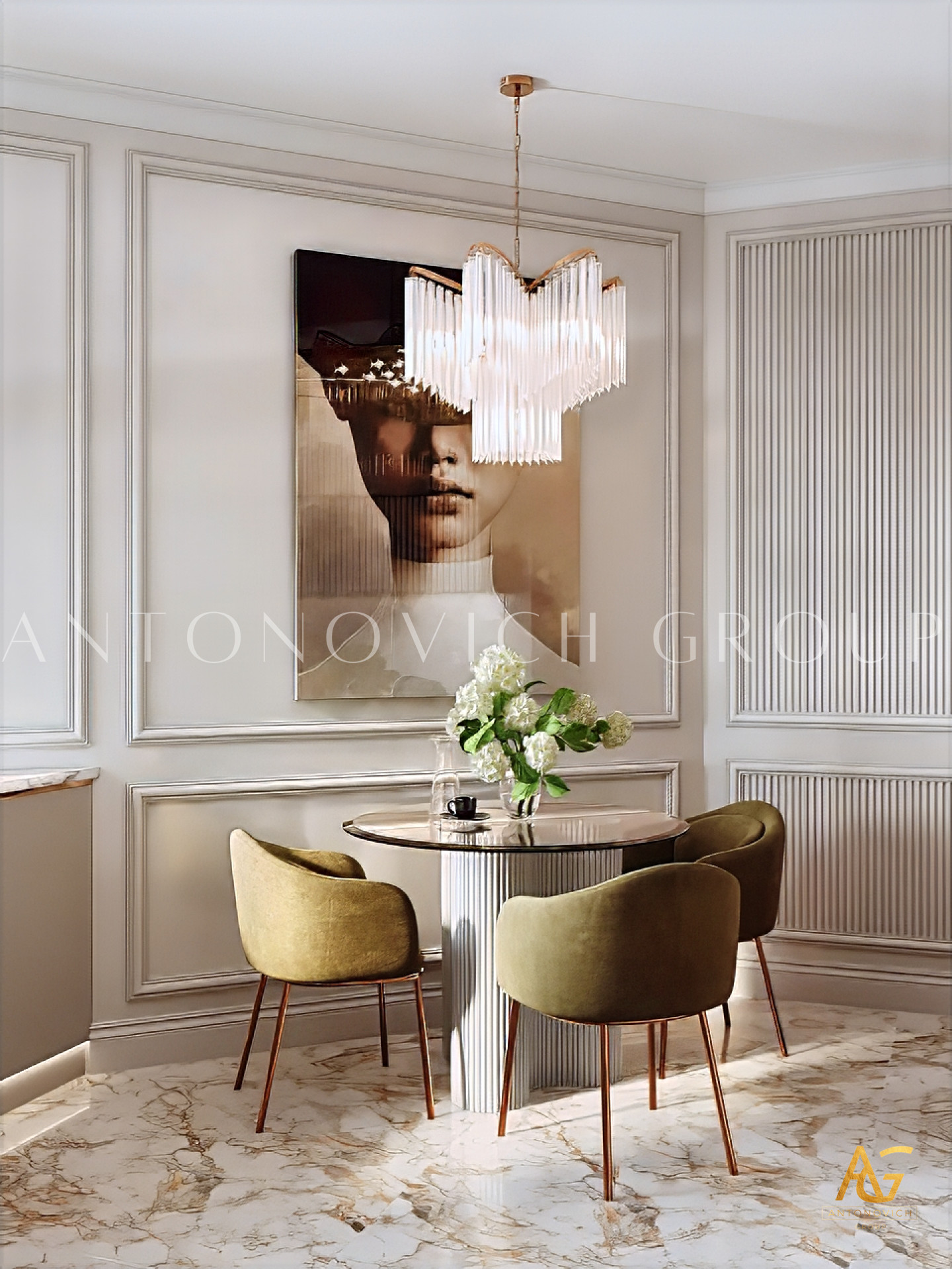 Открытые пространства рекомендуются для интерьеров с большими площадями и привлекательным внешним видом участка. Для создания нужного настроения важны панорамные стеклянные окна в кухне, стеклянные стеновые панели для кухни и стеклянные стены и раздвижные двери для кухни — они усиливают свет и визуальную связь снаружи. Антонович Дизайн (Antonovich Group) в этой статье показывает, как такие решения формируют приятную и элегантную обстановку для кухни и столовой.