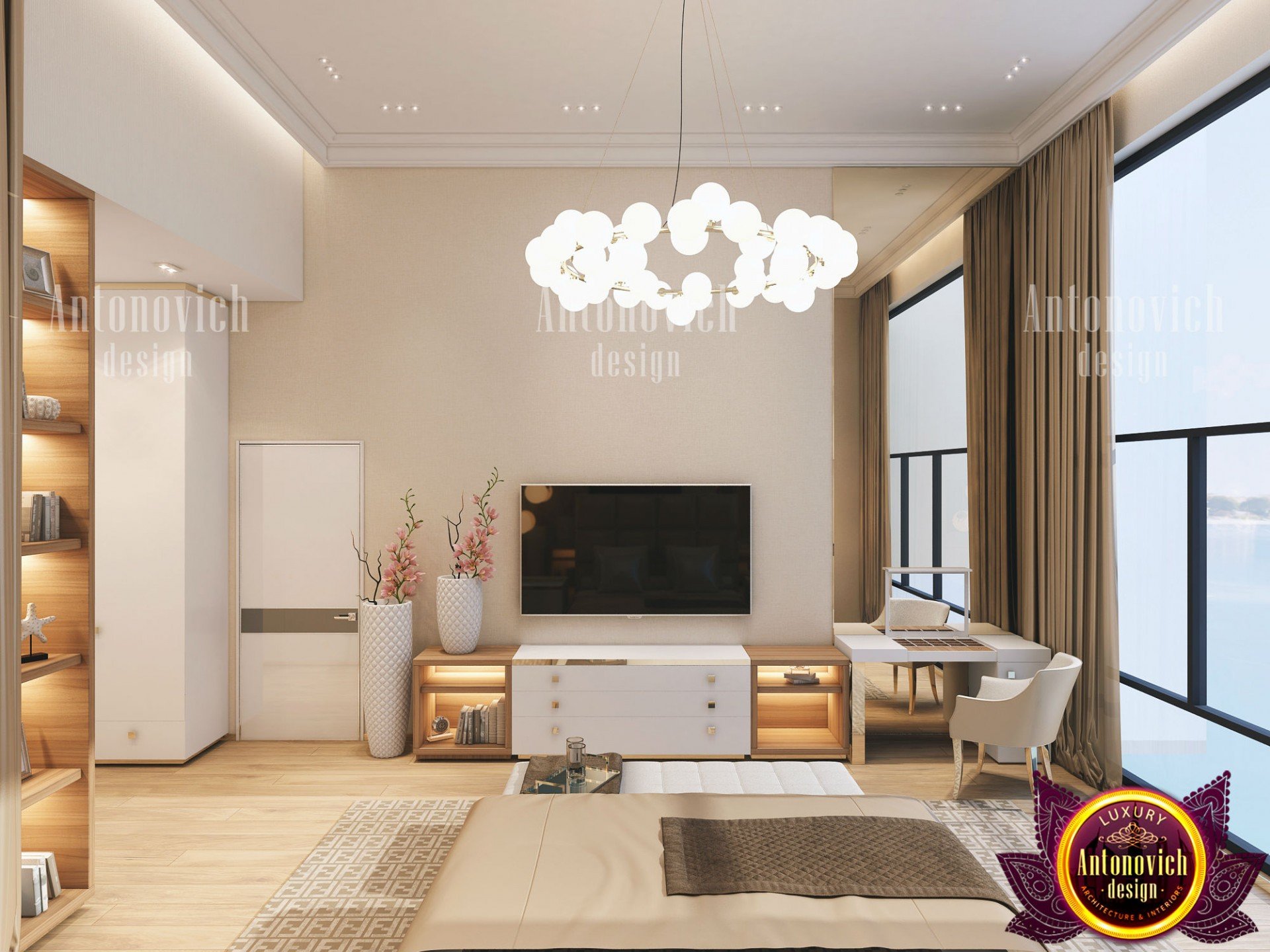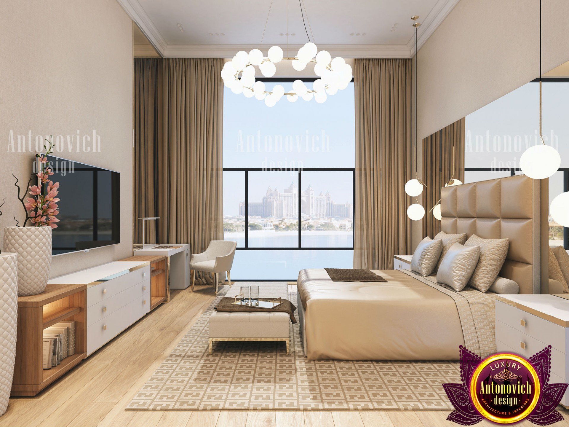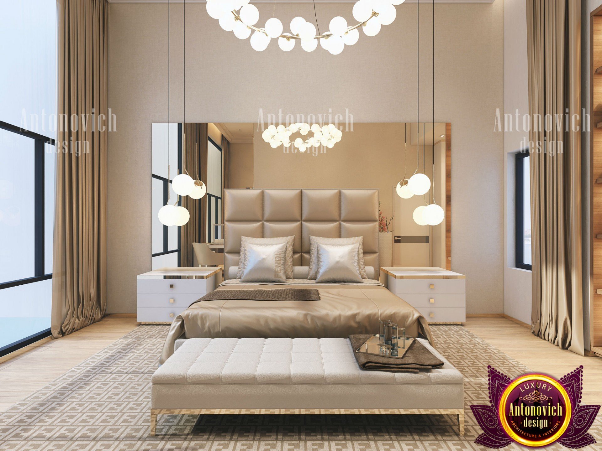 В интерьере спальни от Антонович Дизайн (Antonovich Design) всегда отражаются актуальные модные тенденции — новые решения в отделочных материалах, тканях, оттенках, технологиях и приёмах дизайна. Современный дизайн спальни особенно привлекателен: отделка спальни премиум подчёркивает статус и утонченный вкус владельца.