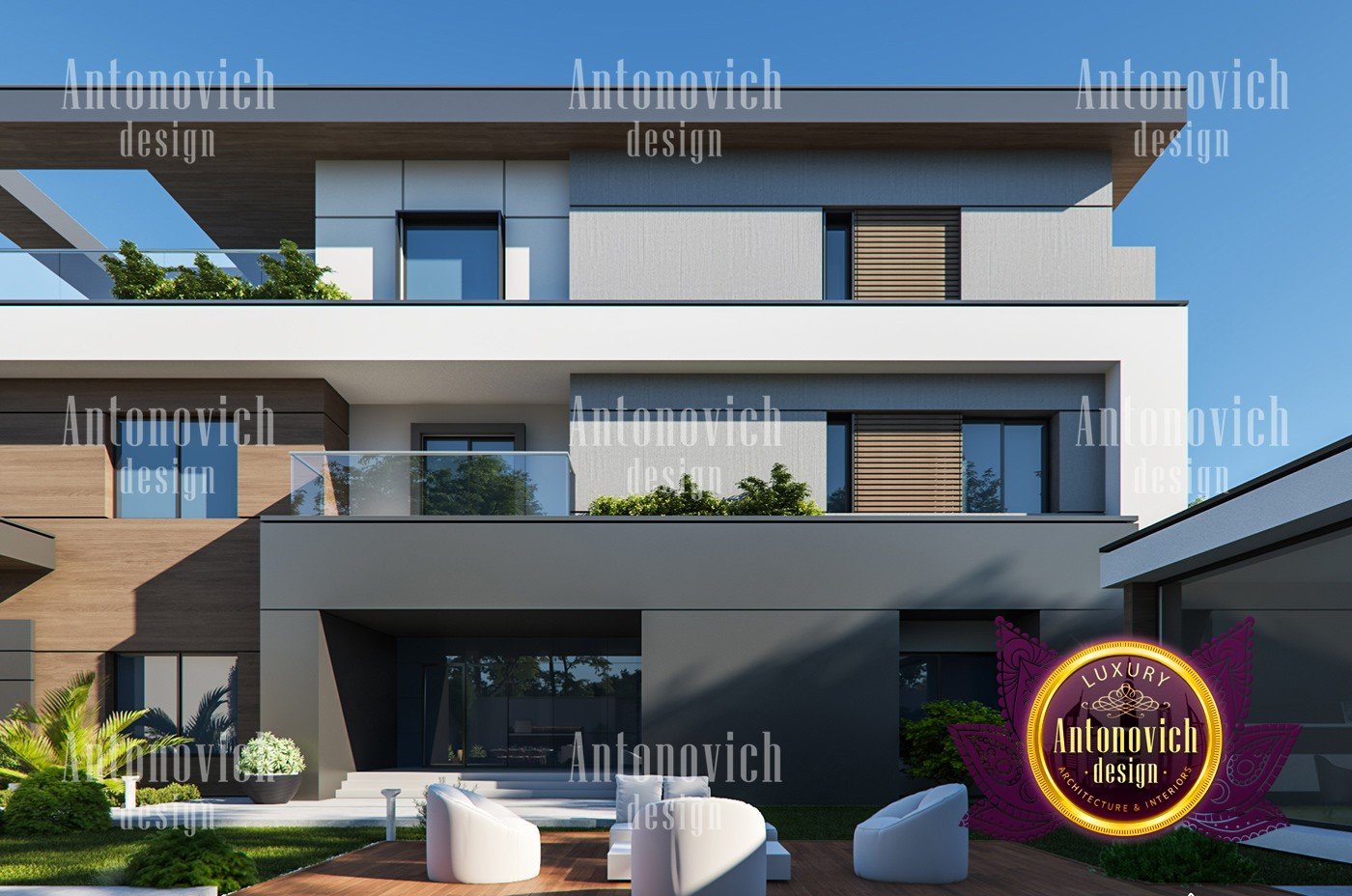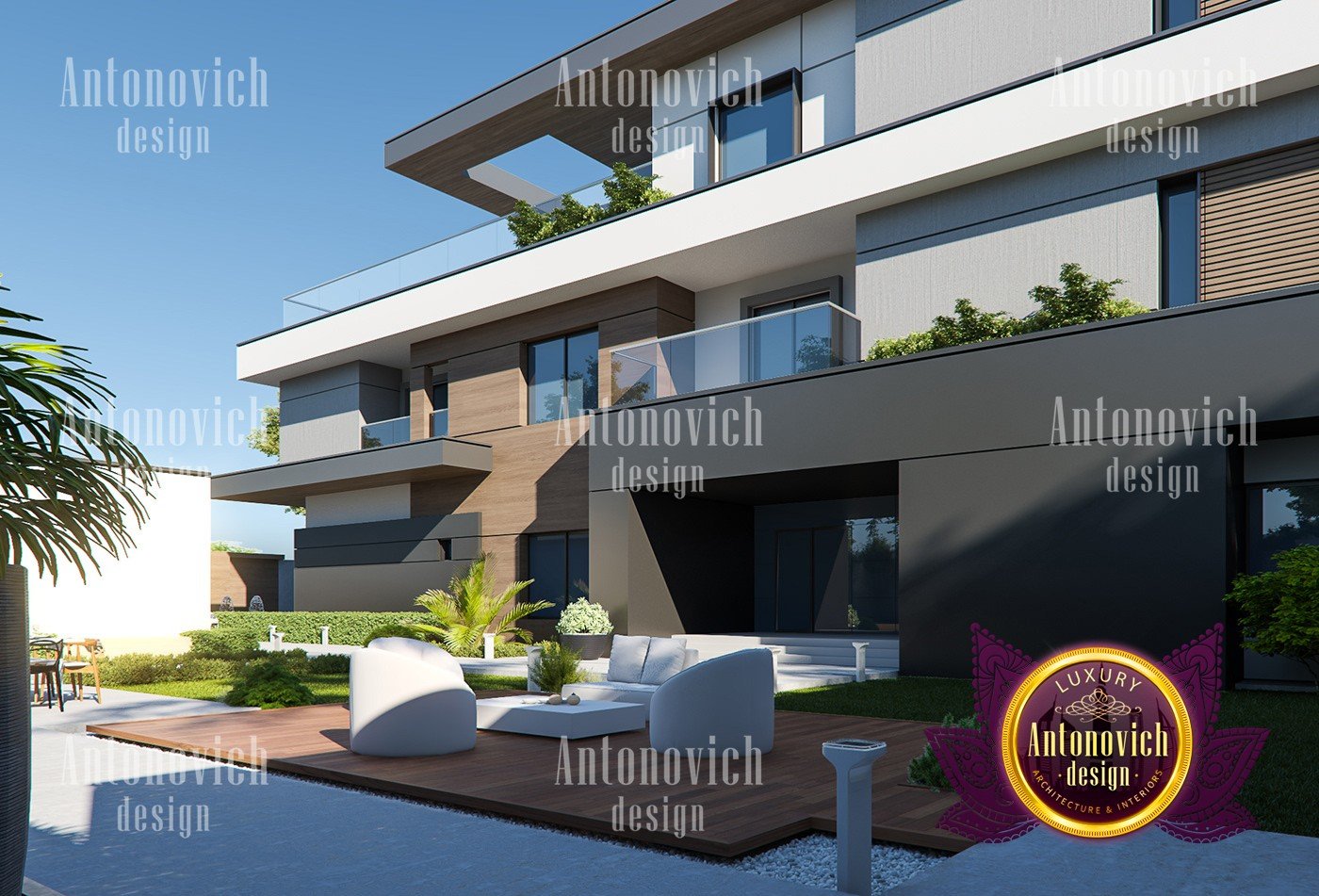 Антонович Дизайн (Antonovich Design) создал этот стиль дома, где форма служит функции. Основа современного стиля — форма, которая отличает его от модерна. Форма означает очертание; у этого современного жилого дома доминирует коробчатая форма. Он состоит из чистых линий, которые подчёркивают художественные детали интерьера — именно чистые линии в интерьере задают настроение. Текстуры тоже важны: текстуры в современном интерьере добавляют глубину и акцентируют пространство.