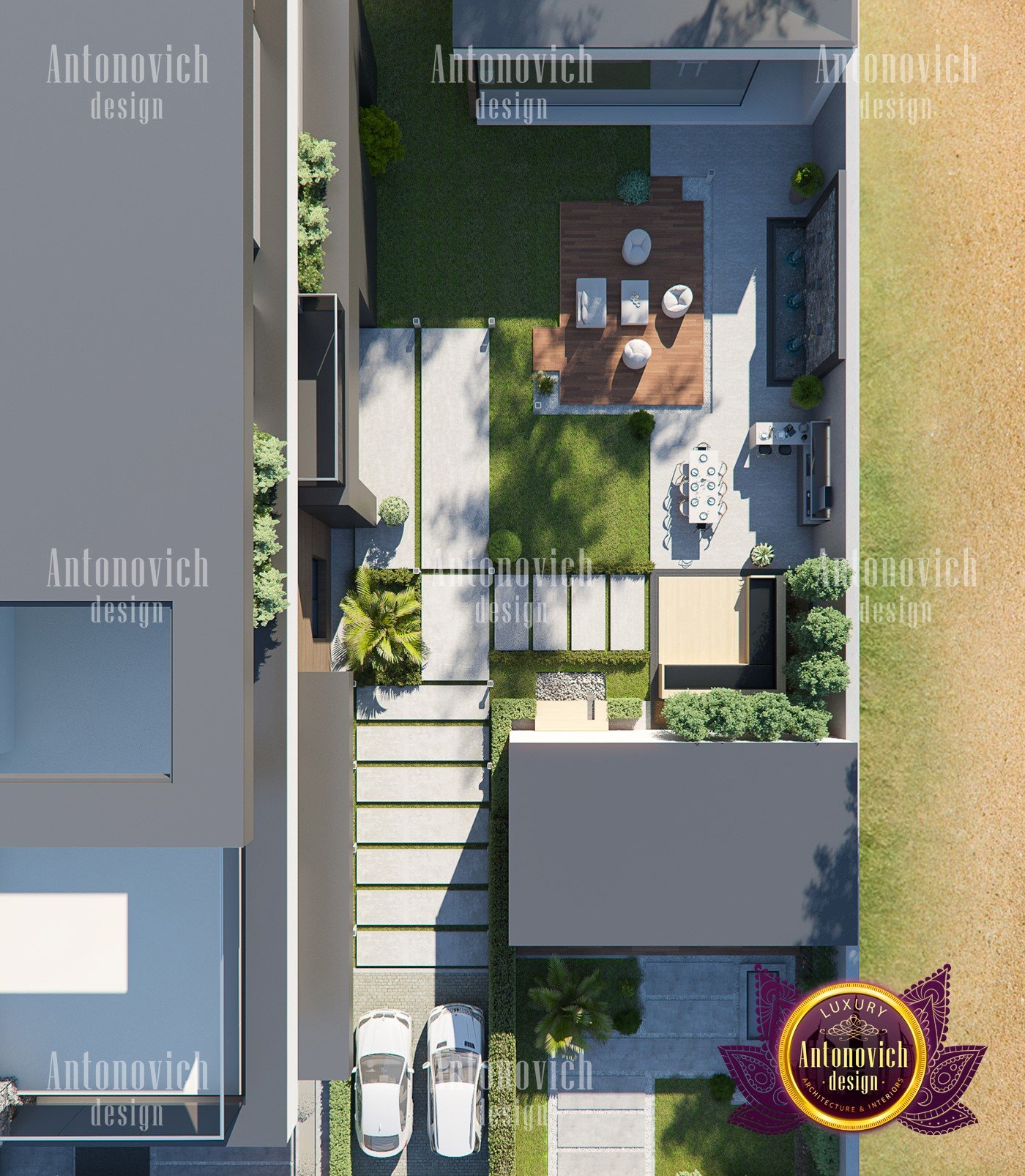 - Наружное освещение: в показанной модели есть зона отдыха на улице, которая требует освещения, особенно ночью; наружное освещение делает пространство безопасным и уютным.