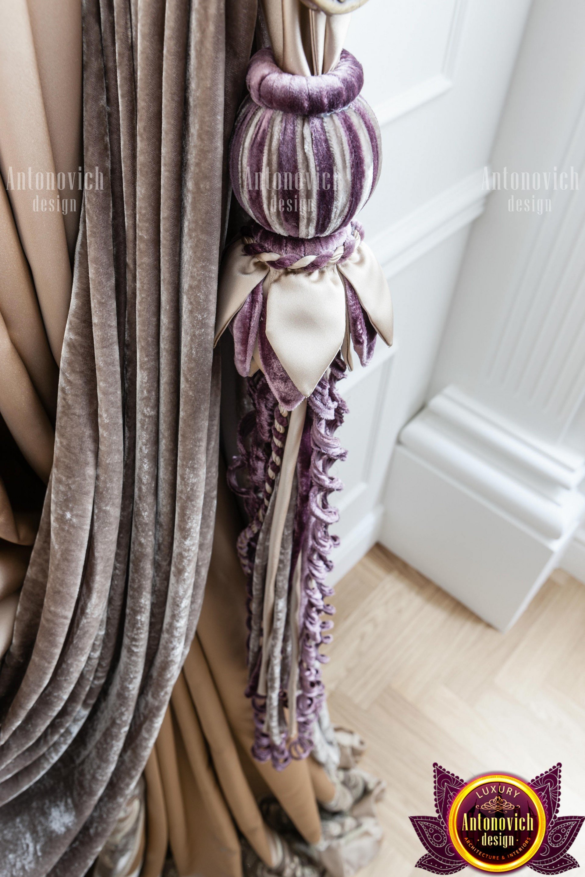 В элитной мастерской по пошиву дизайнерских штор Антонович Дизайн (Antonovich Design) вы можете выбрать любые аксессуары, которые наши мастерицы оформят индивидуально на заказ: