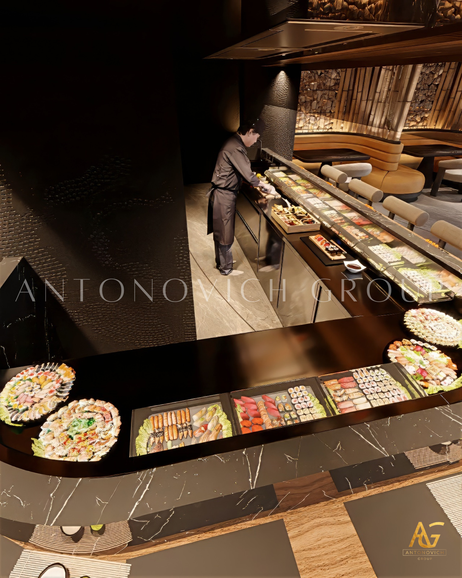 По мере роста и стремления к высшему уровню сервиса Антонович Дизайн (Antonovich Design) предлагает лучшее в области интерьерного искусства. Этот ресторан в Саудовской Аравии, созданный нашей студией, сочетает тонкий стиль, продуманную мебель и выразительные элементы, которые придают вашему пространству индивидуальность и демонстрируют изумительные формы и поверхности гостям. Если вы планируете дизайн ресторана в Саудовской Аравии, мы предложим решение, в котором каждая деталь служит общей идее роскоши и комфорта.РОСКОШНОЕ И СИЯЮЩЕЕ ПРОСТРАНСТВО