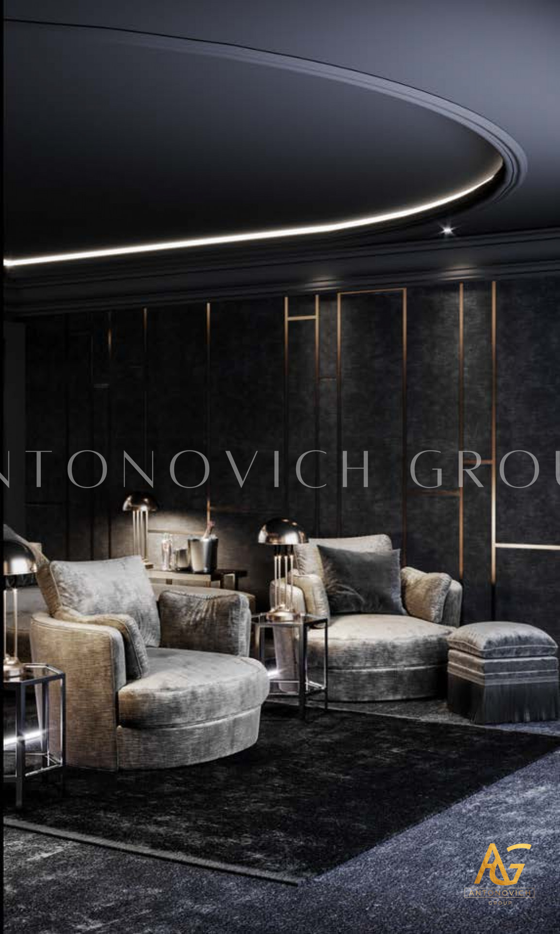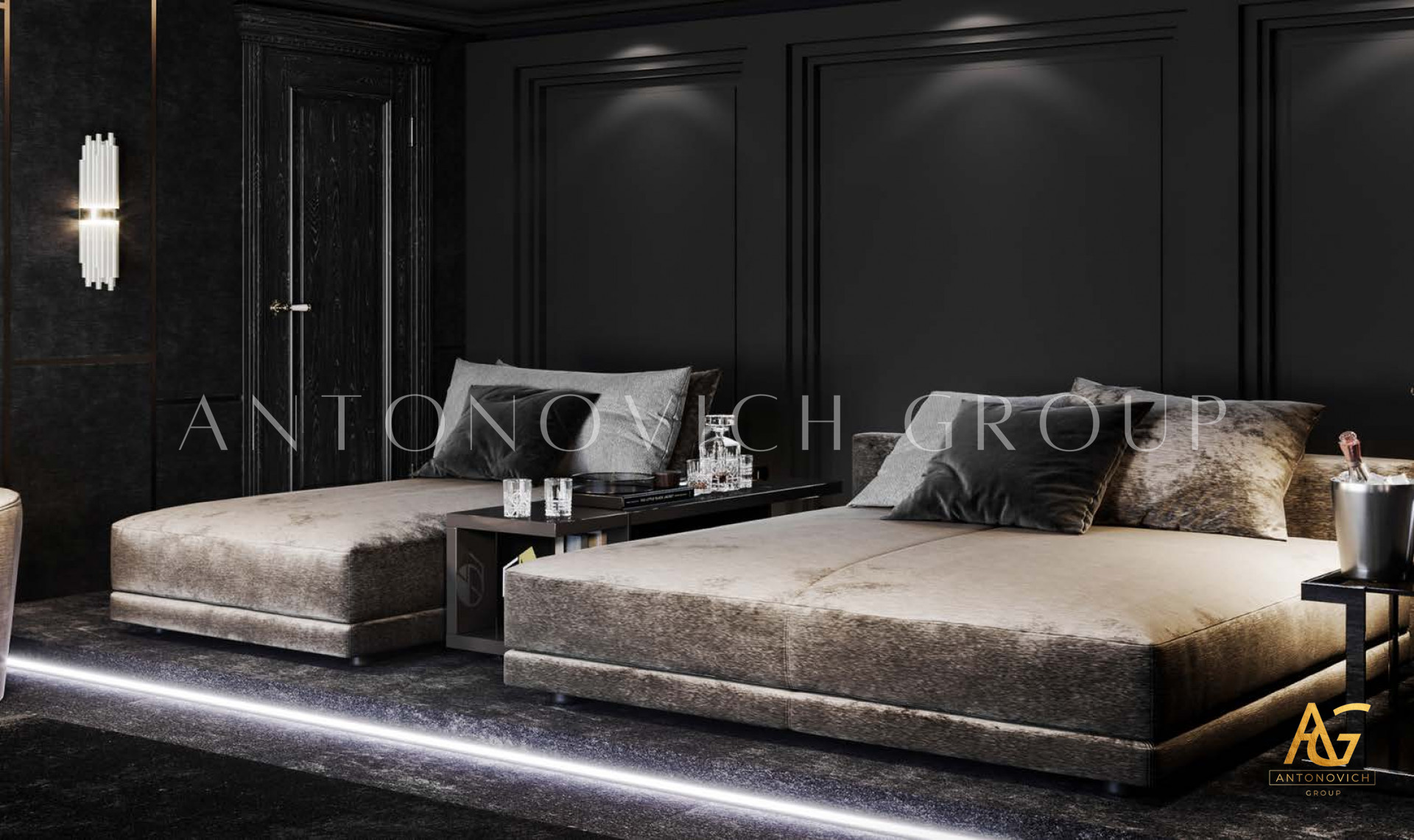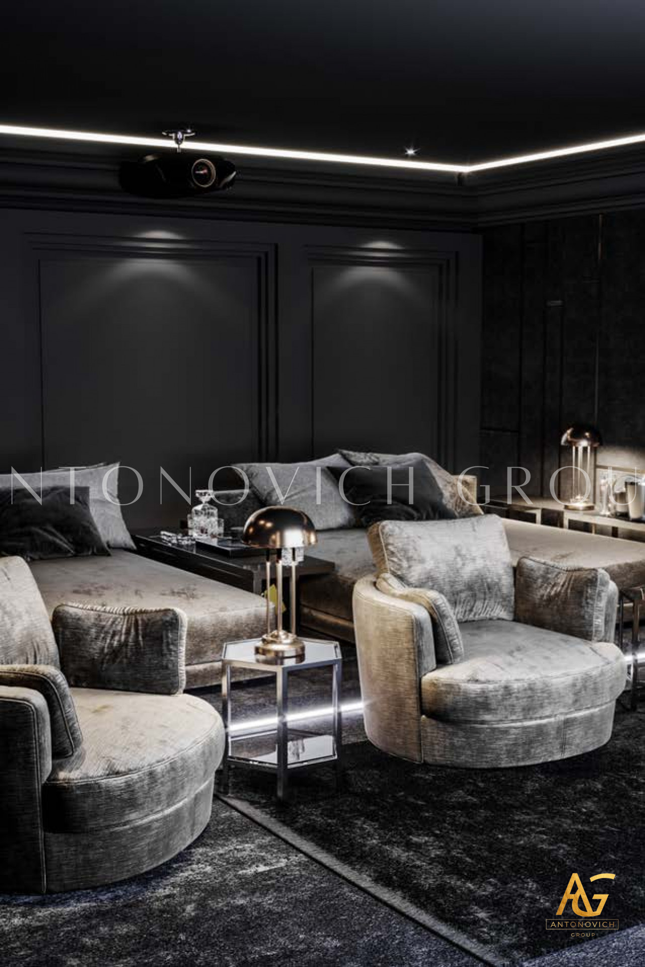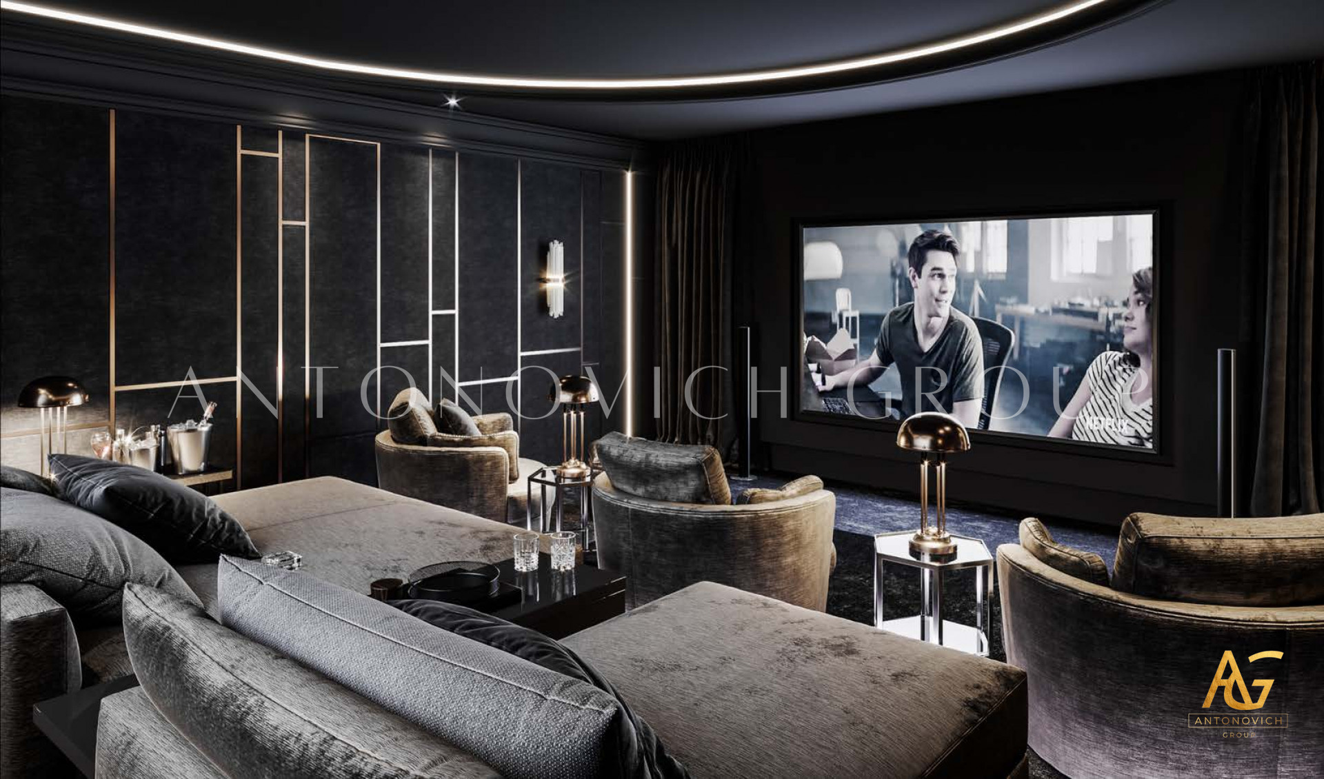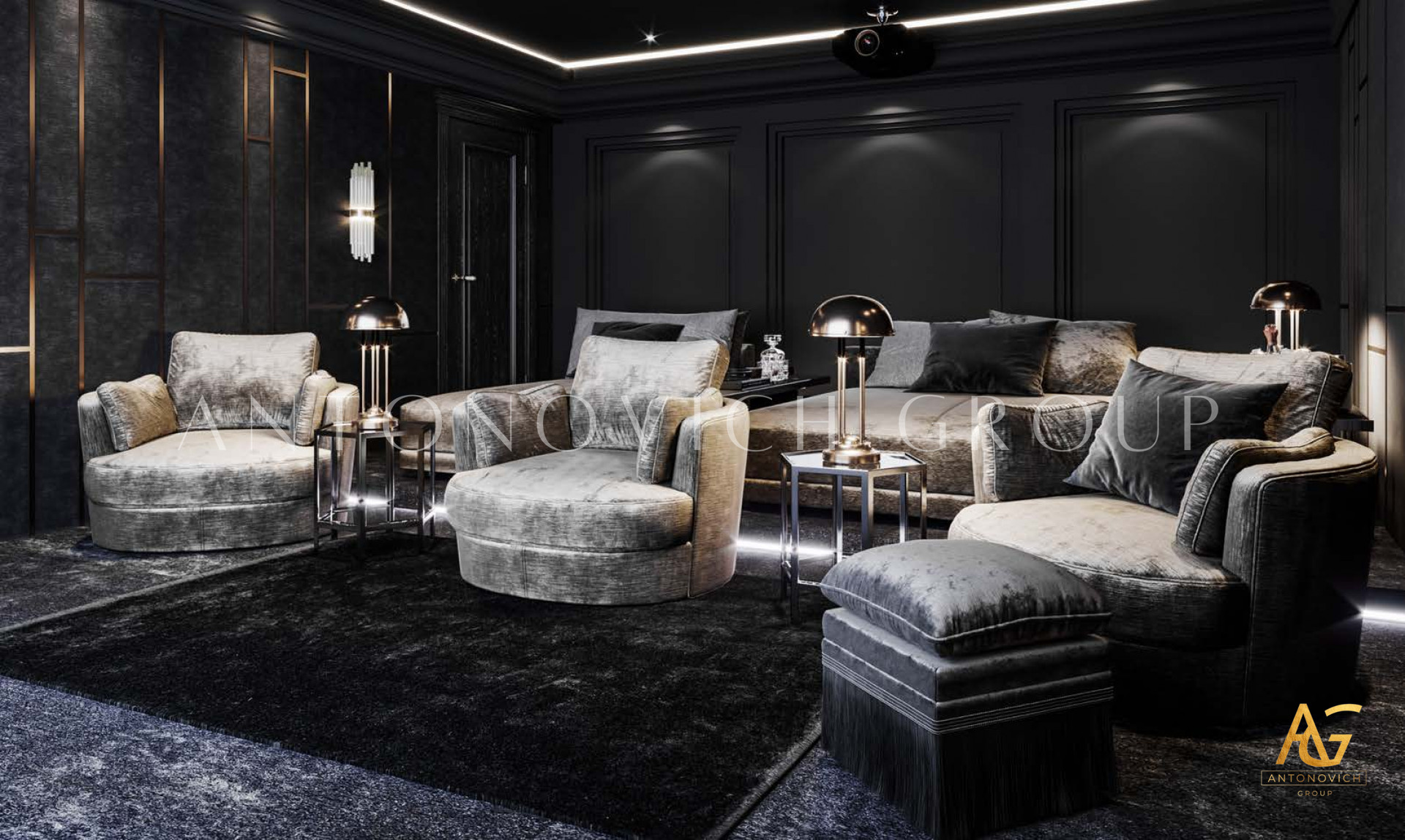 В сфере роскошного образа жизни, где каждая деталь пронизана утонченностью и элегантностью, Антонович Групп (Antonovich Group) выступает образцом премиального дизайна интерьеров. Прославленные своими изысканными проектами, они обращают творческий потенциал к пространству развлечений, создавая дизайн домашнего кинотеатра, который преобразует просмотр в ритуал.