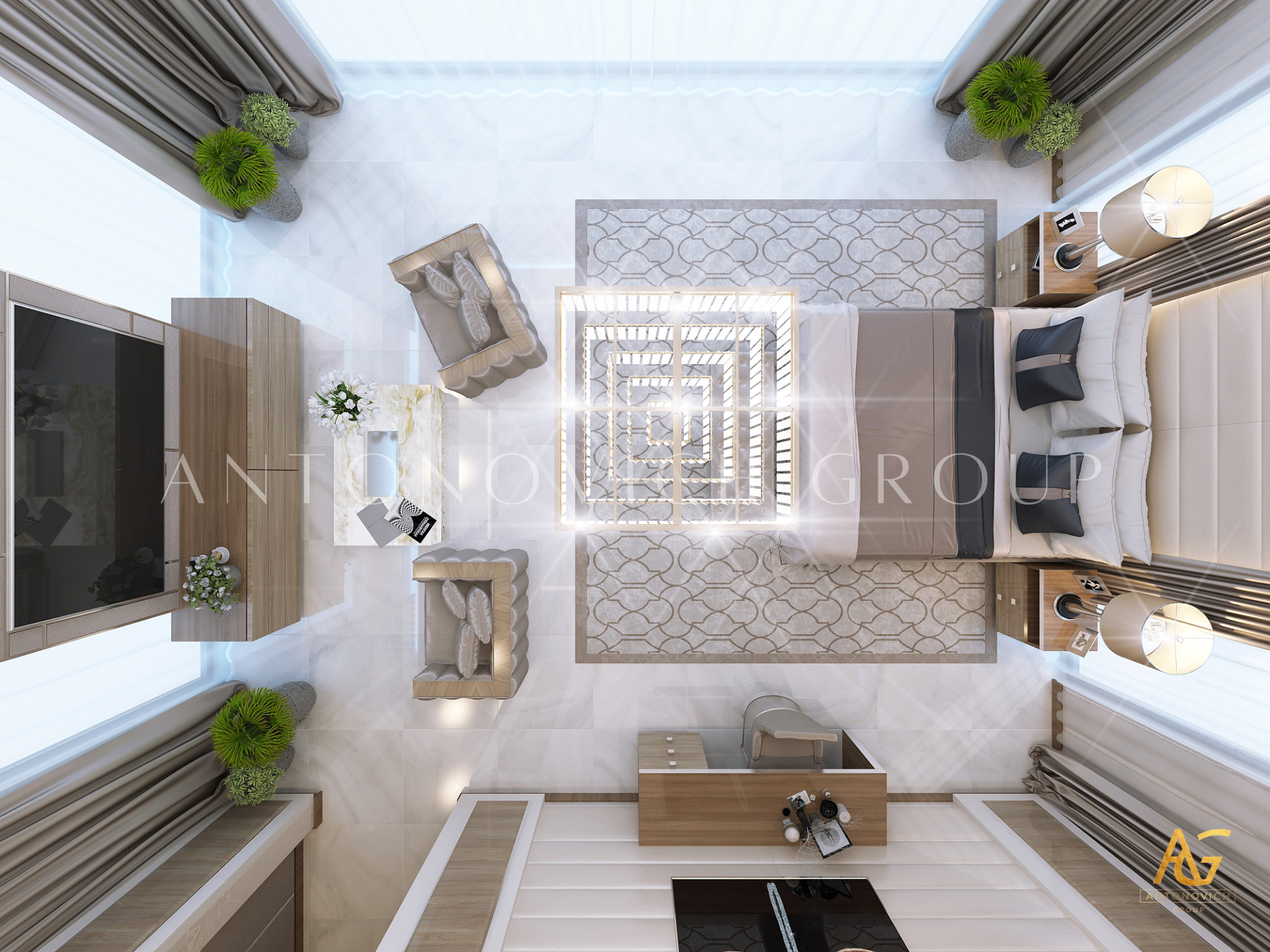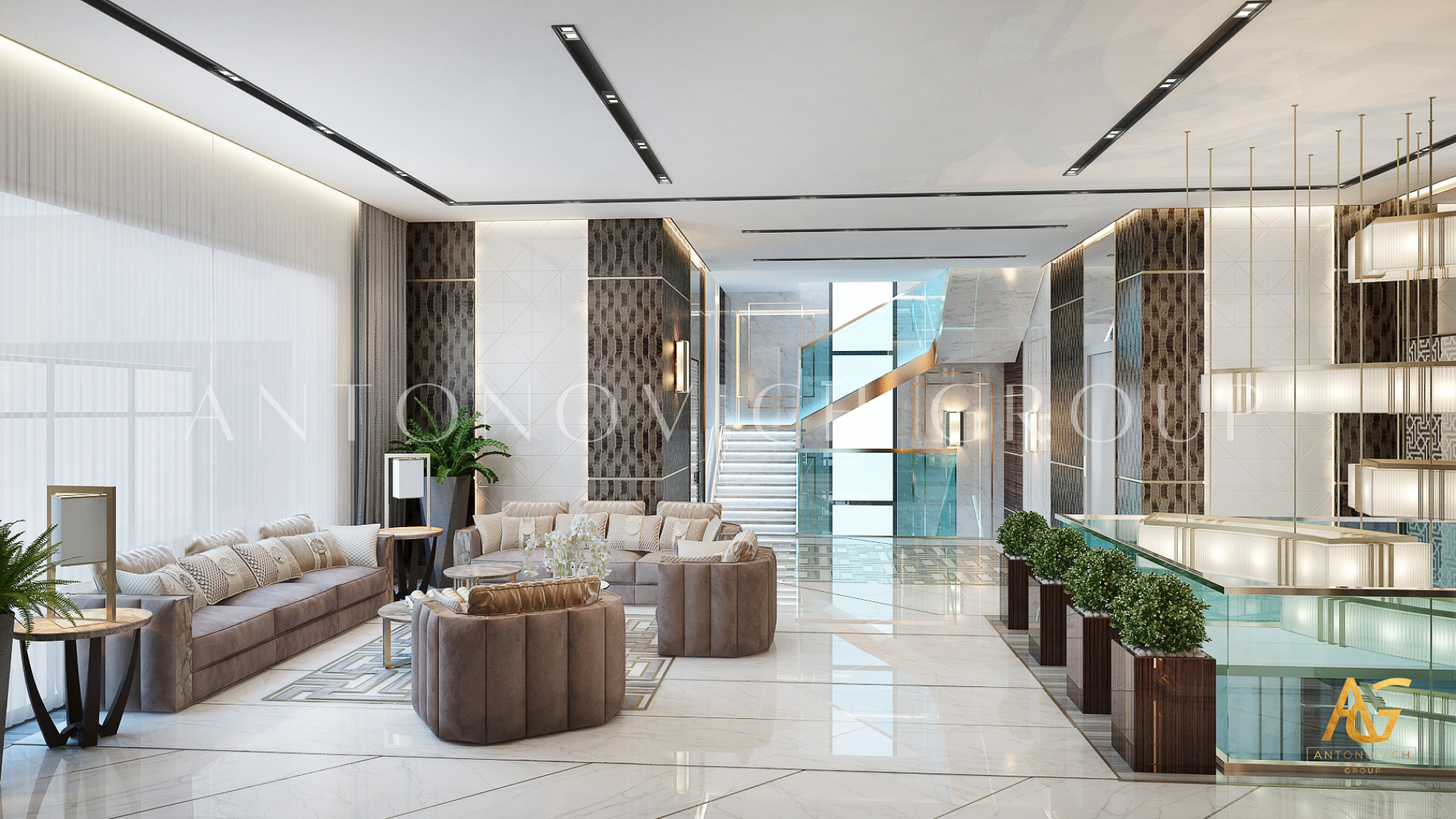 Эта вилла — не просто резиденция; это частное убежище, где архитектурные инновации и изысканность интерьера сливаются воедино. Каждая деталь, от фасада до тончайших столярных работ, иллюстрирует приверженность Antonovich Group к созданию домов, воплощающих элегантность и эксклюзивность.