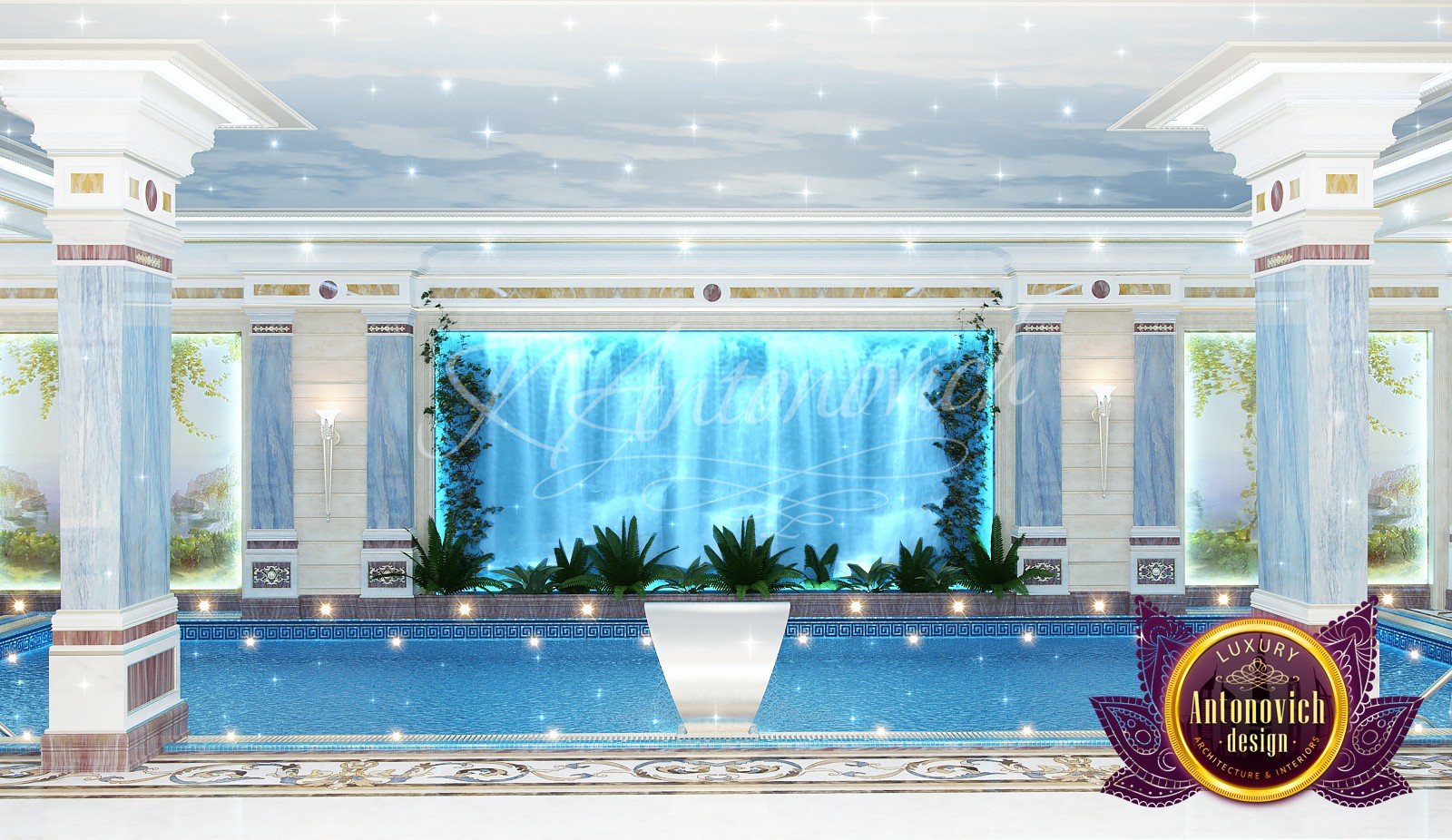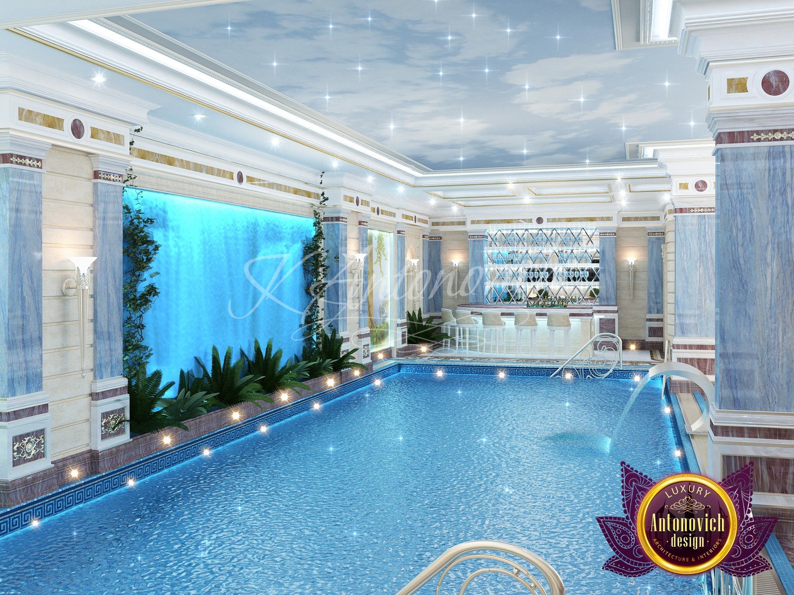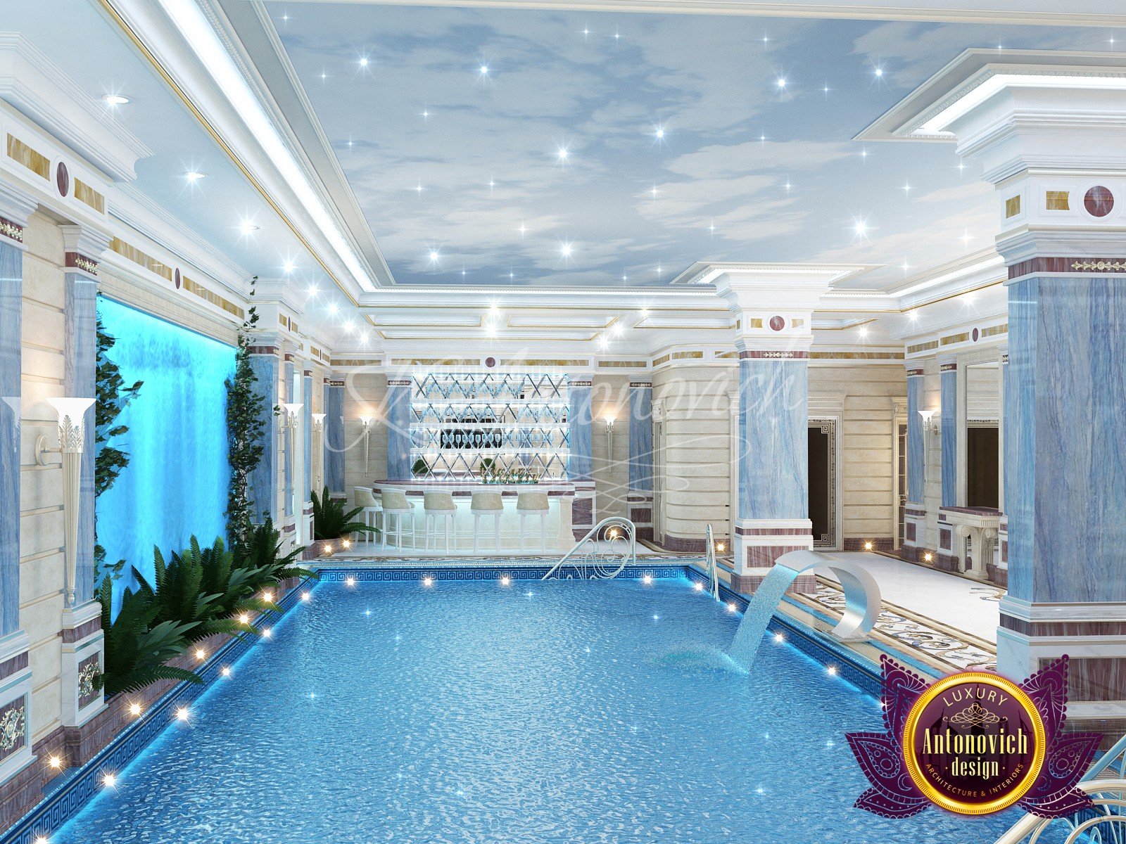 * проработка стилистических и цветовых решений, предварительный выбор материалов для бассейна.