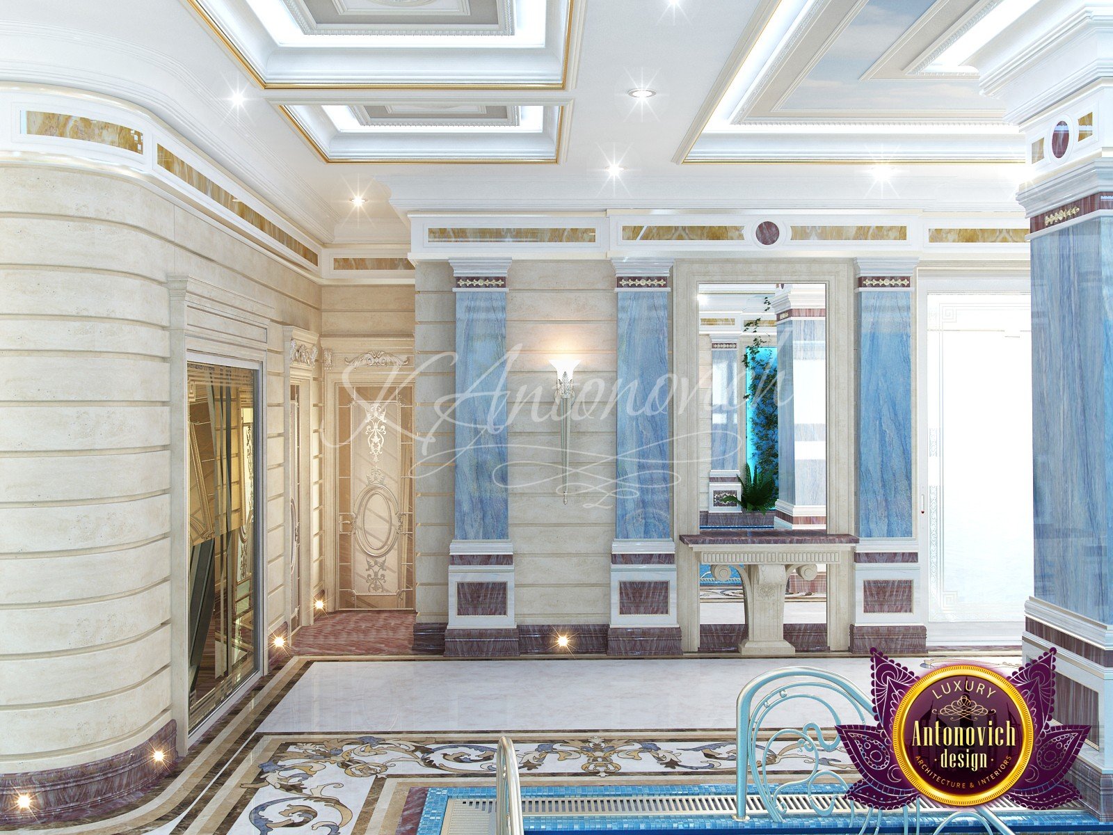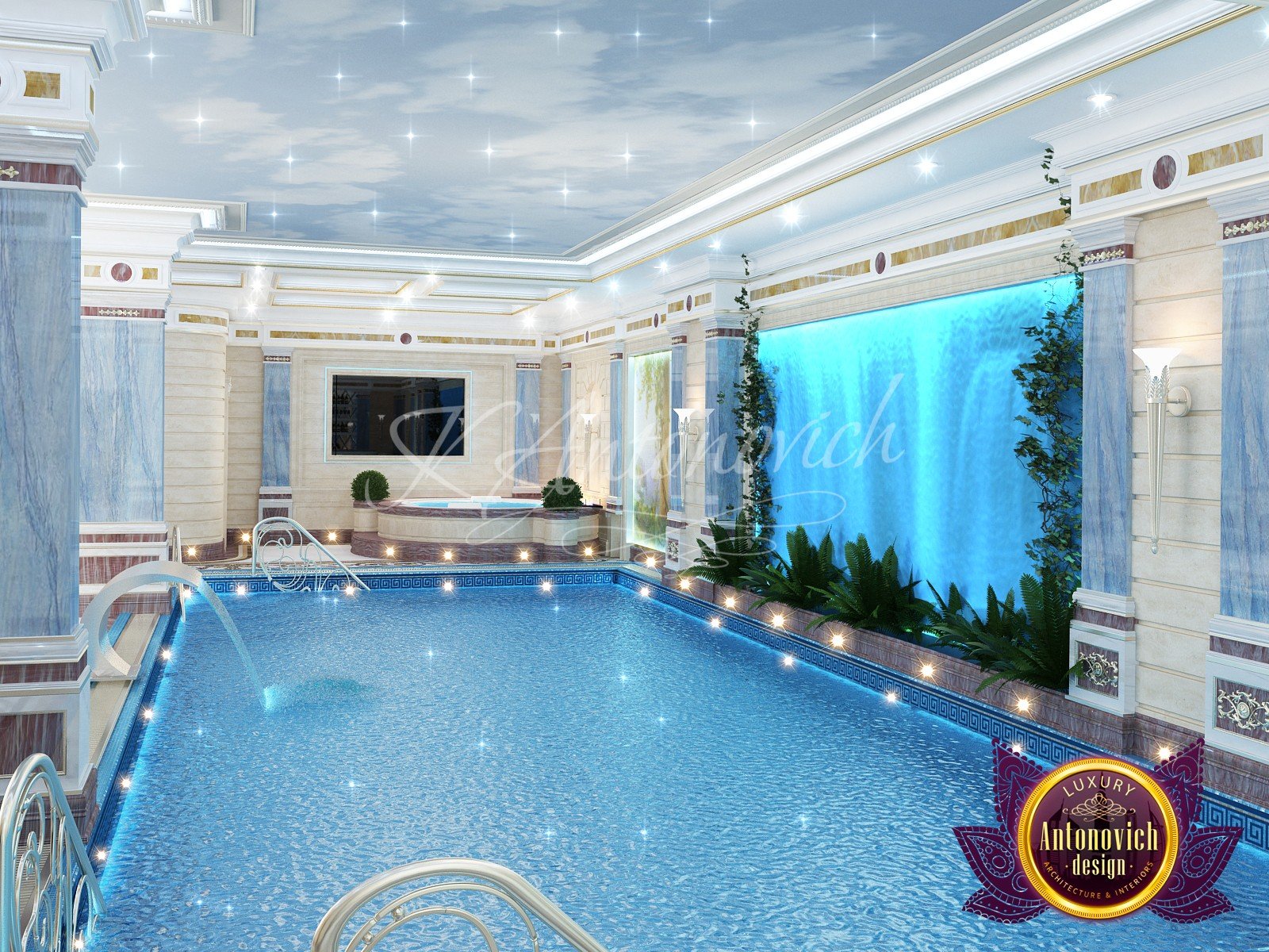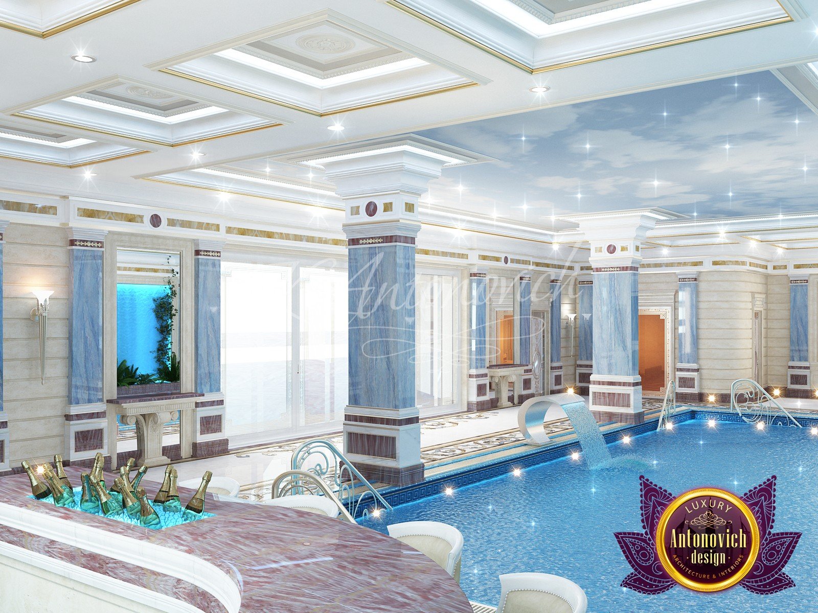 * проработка стилистических и цветовых решений, предварительный выбор материалов для бассейна.