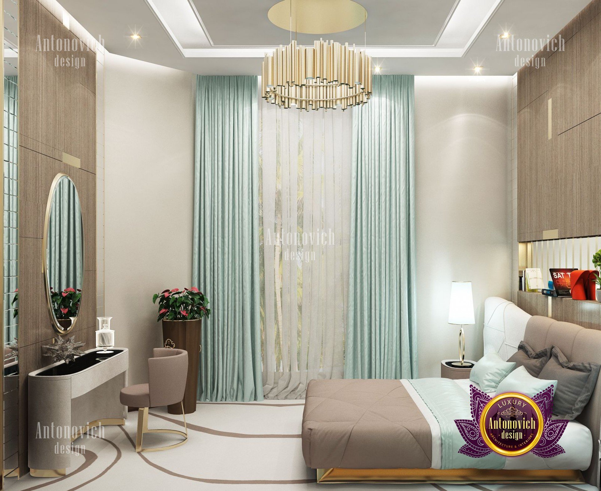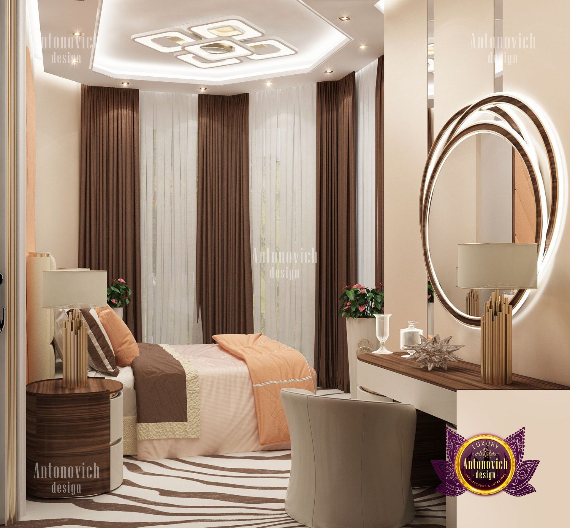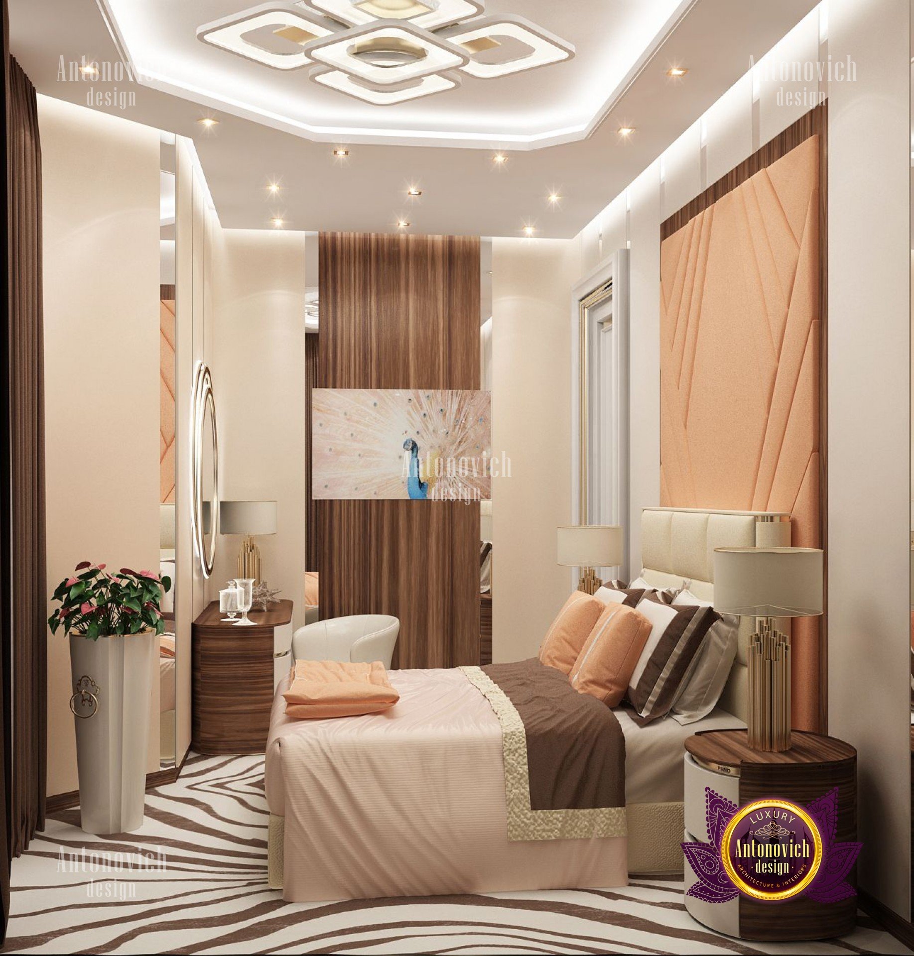 В этом проекте представлен дизайн спальни в Дубае — дом одних из самых впечатляющих видов. Его разнообразная культура сочетает роскошь и приключение. Атмосфера города звучит роскошью и изысканными деталями, как и этот роскошный дизайн спальни: персиковая коричневая кремовая палитра придаёт интерьеру спокойствие и умиротворение.