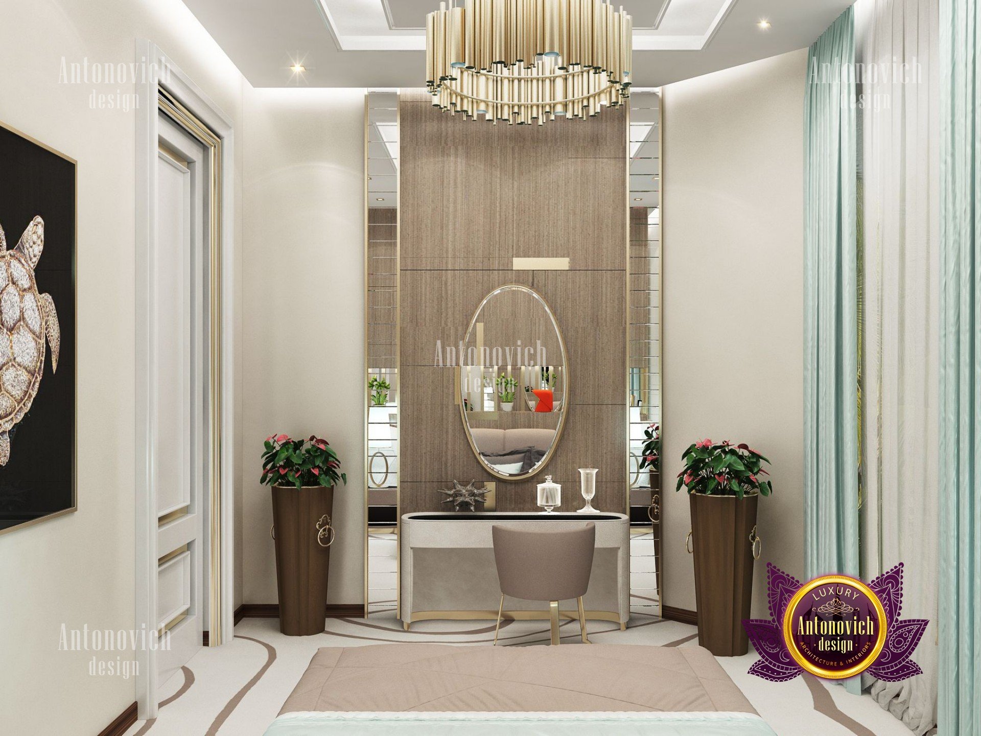 Роскошный дизайн спальни: свет, палитра и вместительная гардеробная