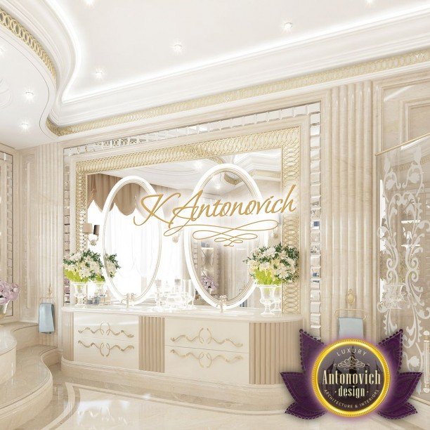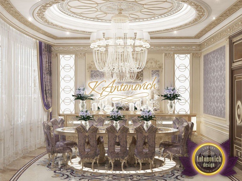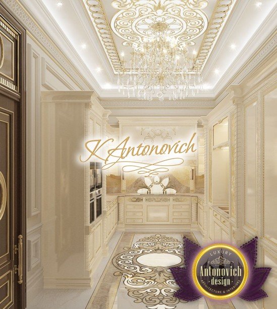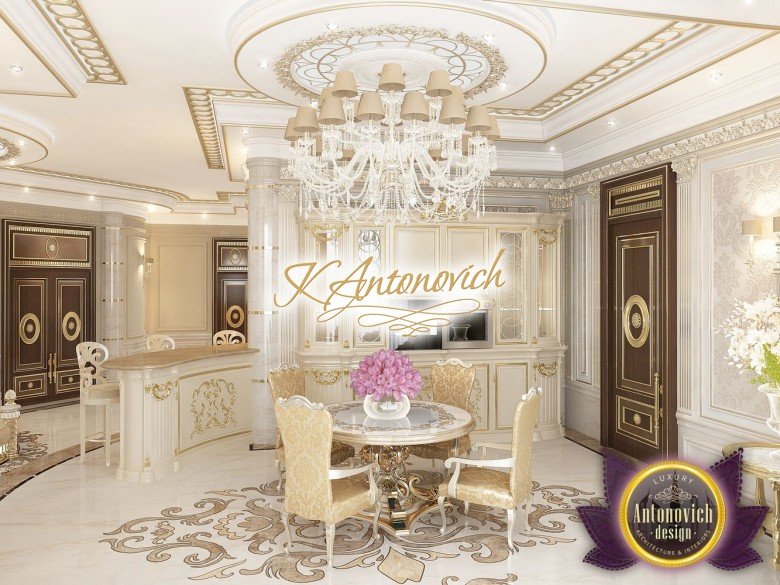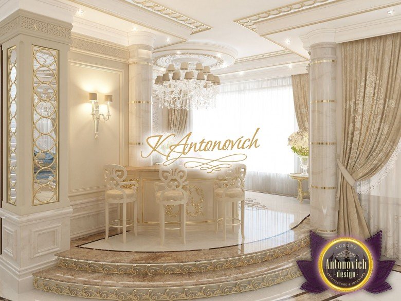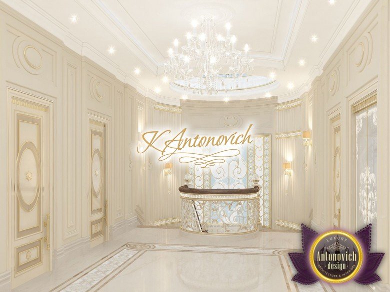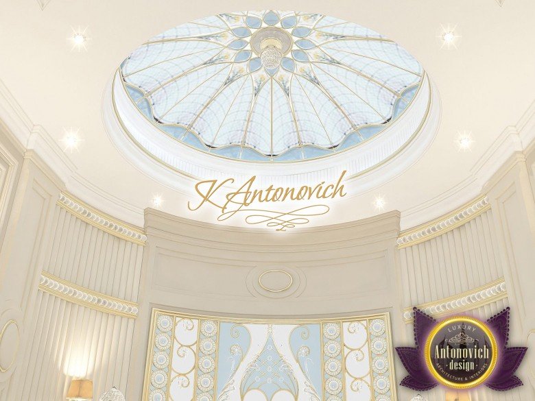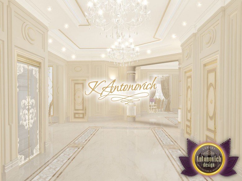 Этот проект создан для ценителей роскоши из Саудовской Аравии: интерьер виллы Мадина Мунавара (Madina Munawara) отражает мировые тенденции в дизайне элитной недвижимости. Интерьер роскошной виллы продуман до мельчайших деталей. Акцент по‑прежнему — на классический стиль в интерьере. Дизайнеры студии Антонович Дизайн (Antonovich Design) привнесли в него своё видение новых тенденций. Весь интерьер дома выглядит очень респектабельно и аристократично. Эта респектабельность начинается с оформления холла: резной мраморный пол и мраморная лестница в интерьере стали гармоничным сочетанием. Авторы повторяют ручные завитки в узорах витражных дверей и кованой балюстраде лестничного портала.