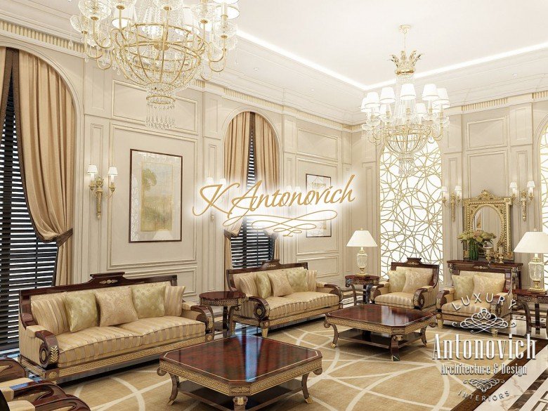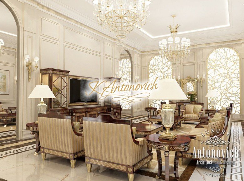 Подумайте, как вы можете подчеркнуть дизайн роскошной гостиной, чтобы у вас всегда было на что смотреть. Игра с мебелью по высоте для гостиной в Дубае, красивыми объектами, произведениями искусства и зеленью — самый простой способ задать масштаб и добавить интерес в интерьер роскошной гостиной.
