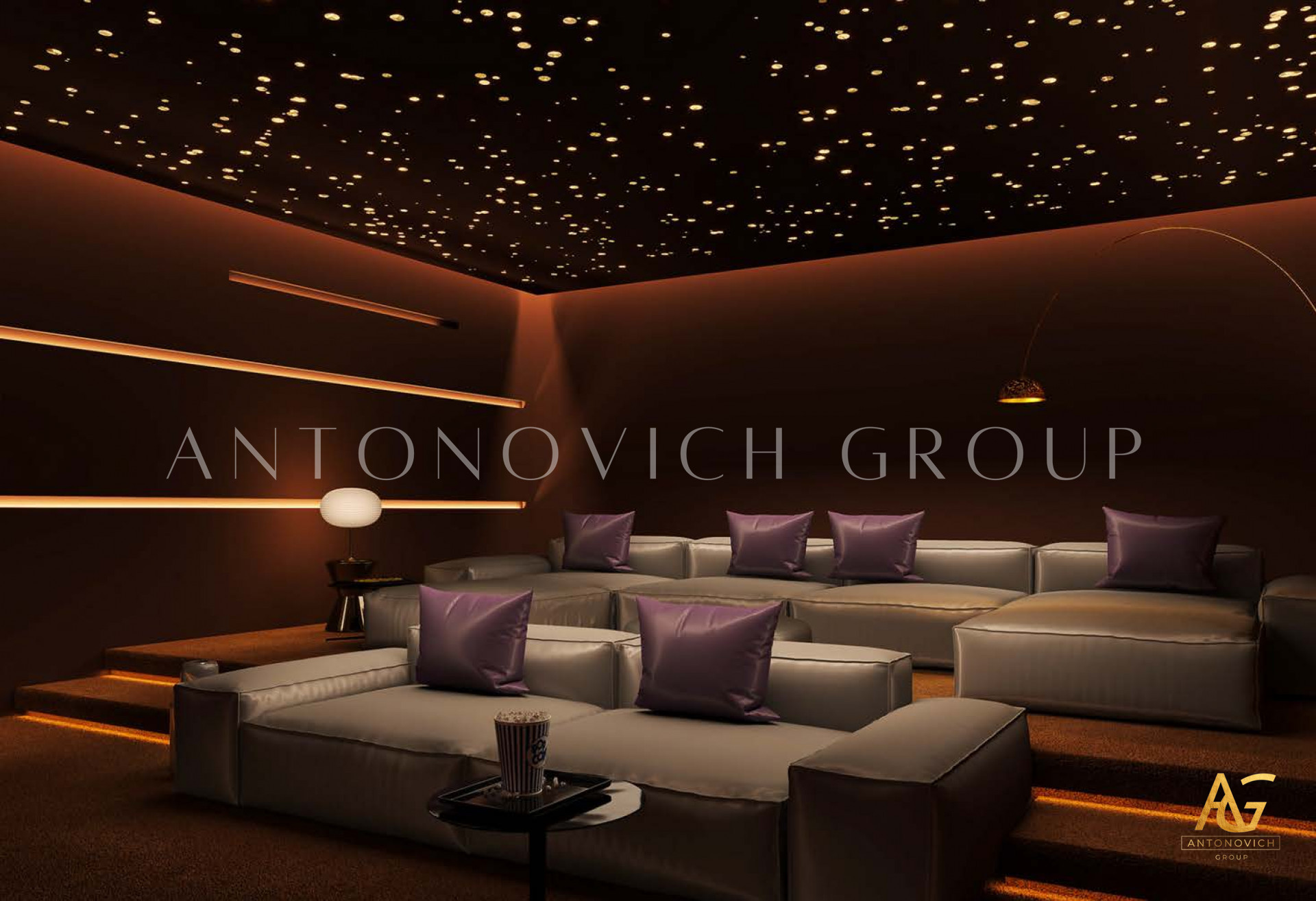 В сфере роскошных интерьеров появились домашние кинотеатры — и именно дизайн домашнего кинотеатра стал одним из центральных проявлений комфорта и статуса. Антонович Дизайн (Antonovich Design), известные своим мастерством в создании впечатляющих интерьеров, представляют новый подход к пространствам домашнего развлечения. Их проект сочетает эстетическое совершенство и тщательно подобранное освещение для домашнего кинотеатра, предлагая опыт, который превосходит ожидания.