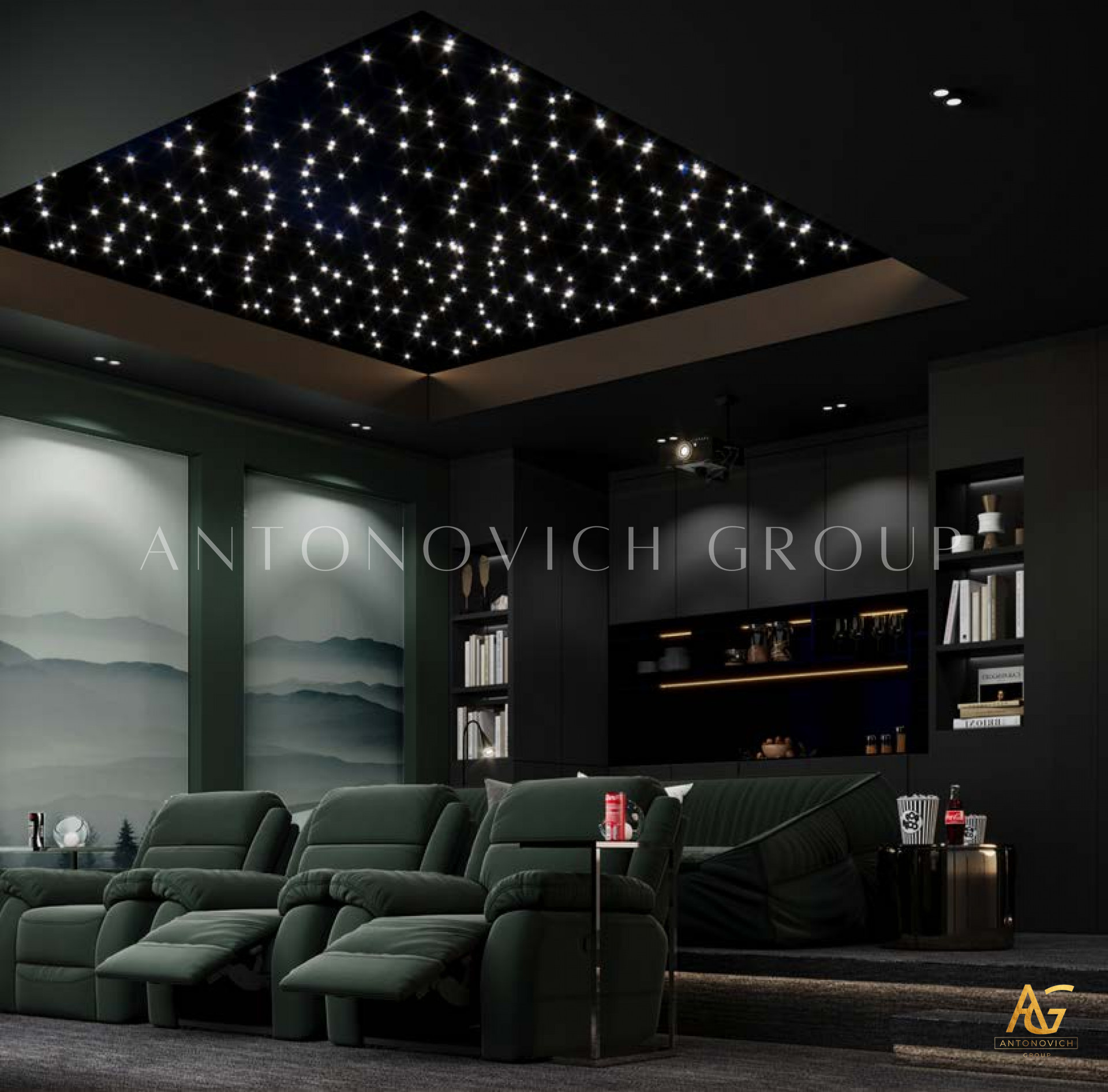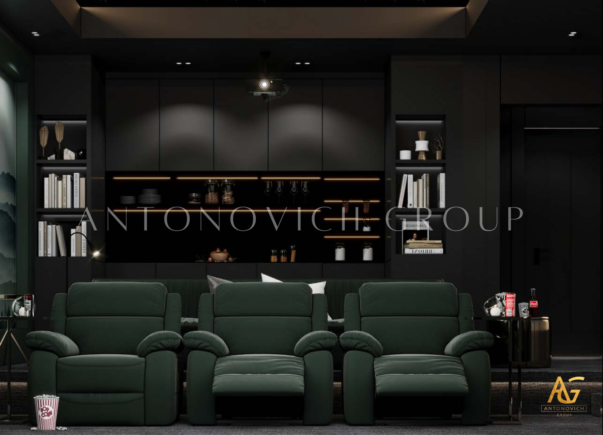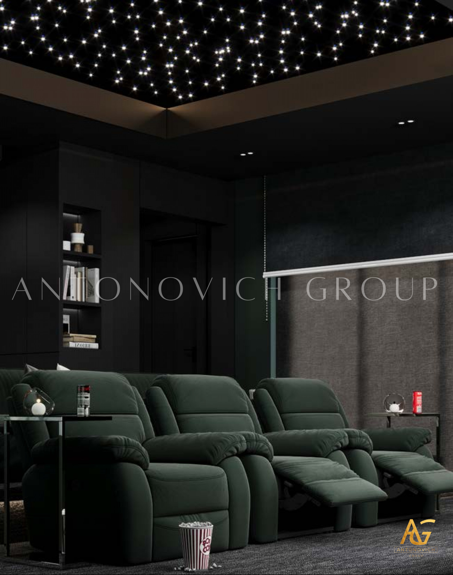 Видение Антонович Дизайн выходит за рамки привычных решений. С развитием технологий границы домашнего развлечения расширились, и оформление кинозала должно это отражать. Иллюстрируемое решение включает премиум AV-система для дома. Точная акустическая инженерия для кинотеатра и современные световые решения создают захватывающий опыт, который полностью погружает зрителей.