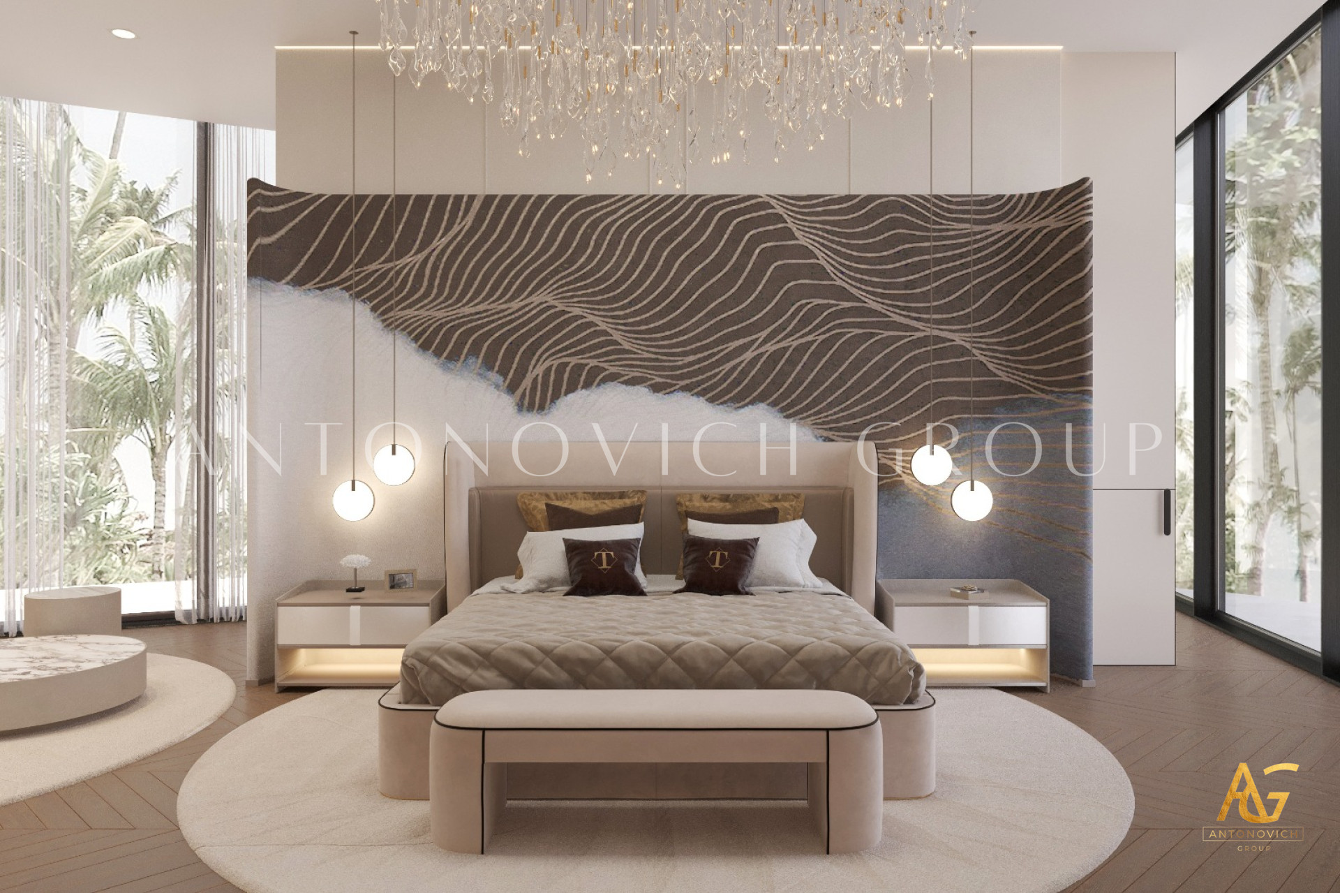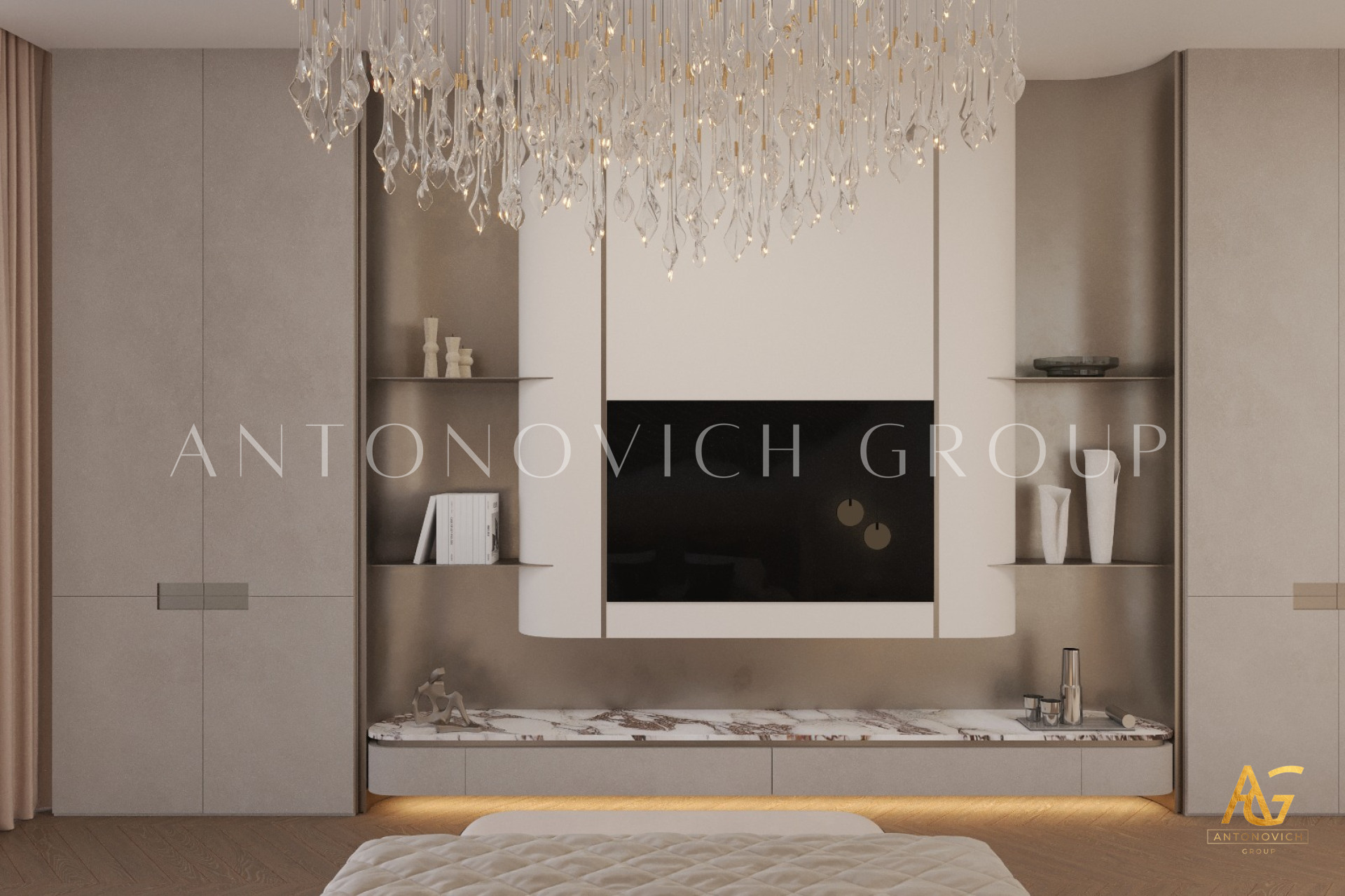 Создание дизайна современной спальни, который отражает роскошь и утончённость, требует точного баланса между элементами интерьера и мебелью. Антонович Дизайн (Antonovich Group) мастерски сочетает хрустальные люстры и художественные стеновые решения, превращая спальни в спокойные и впечатляющие пространства. Их опыт превращает интерьер в элегантное убежище, объединяющее современную эстетику и вечную роскошь.