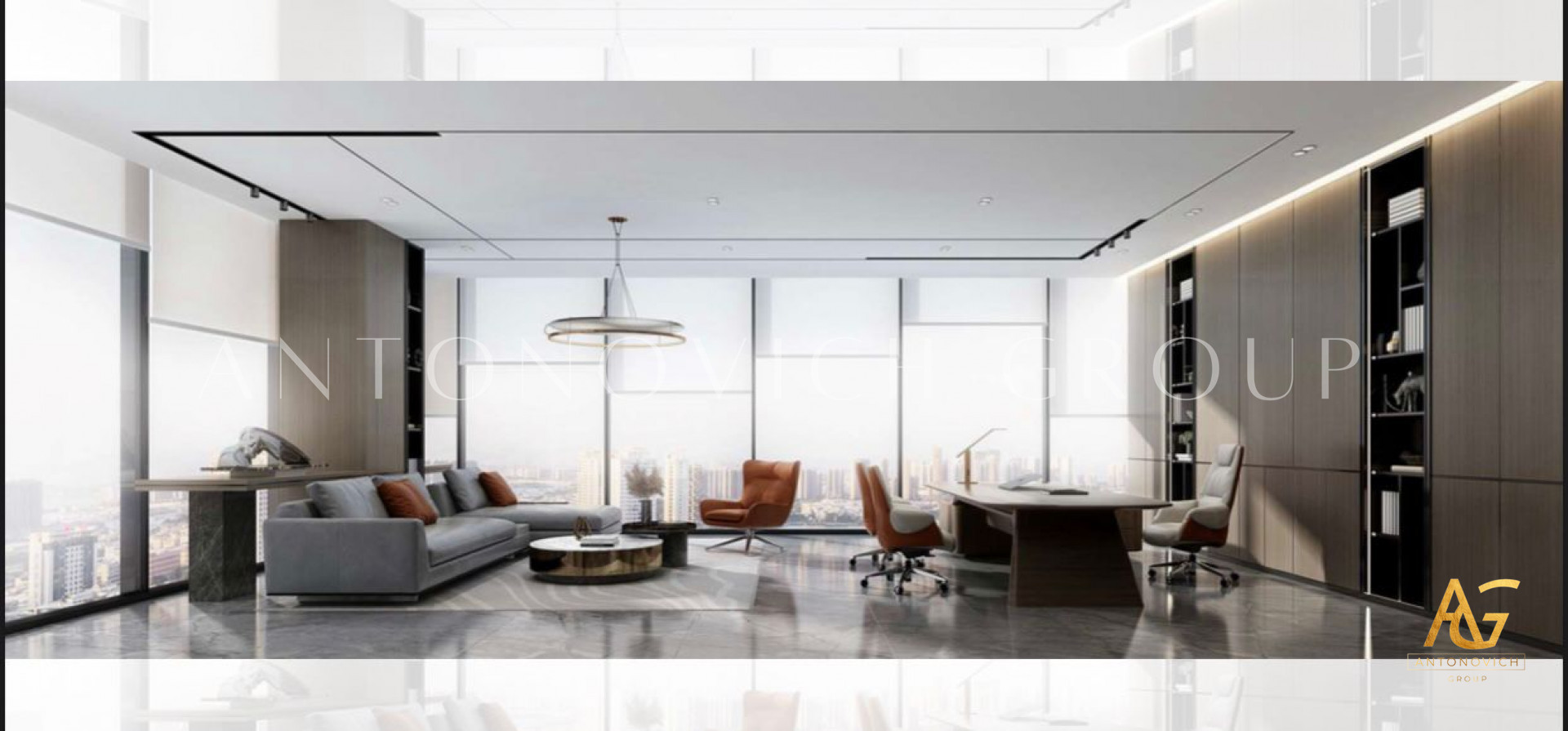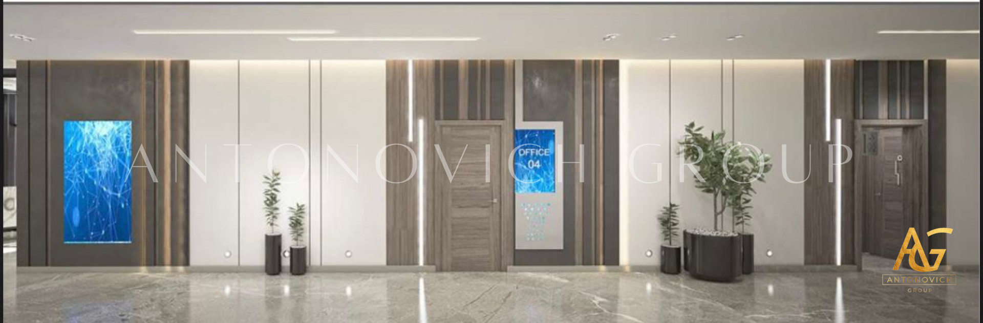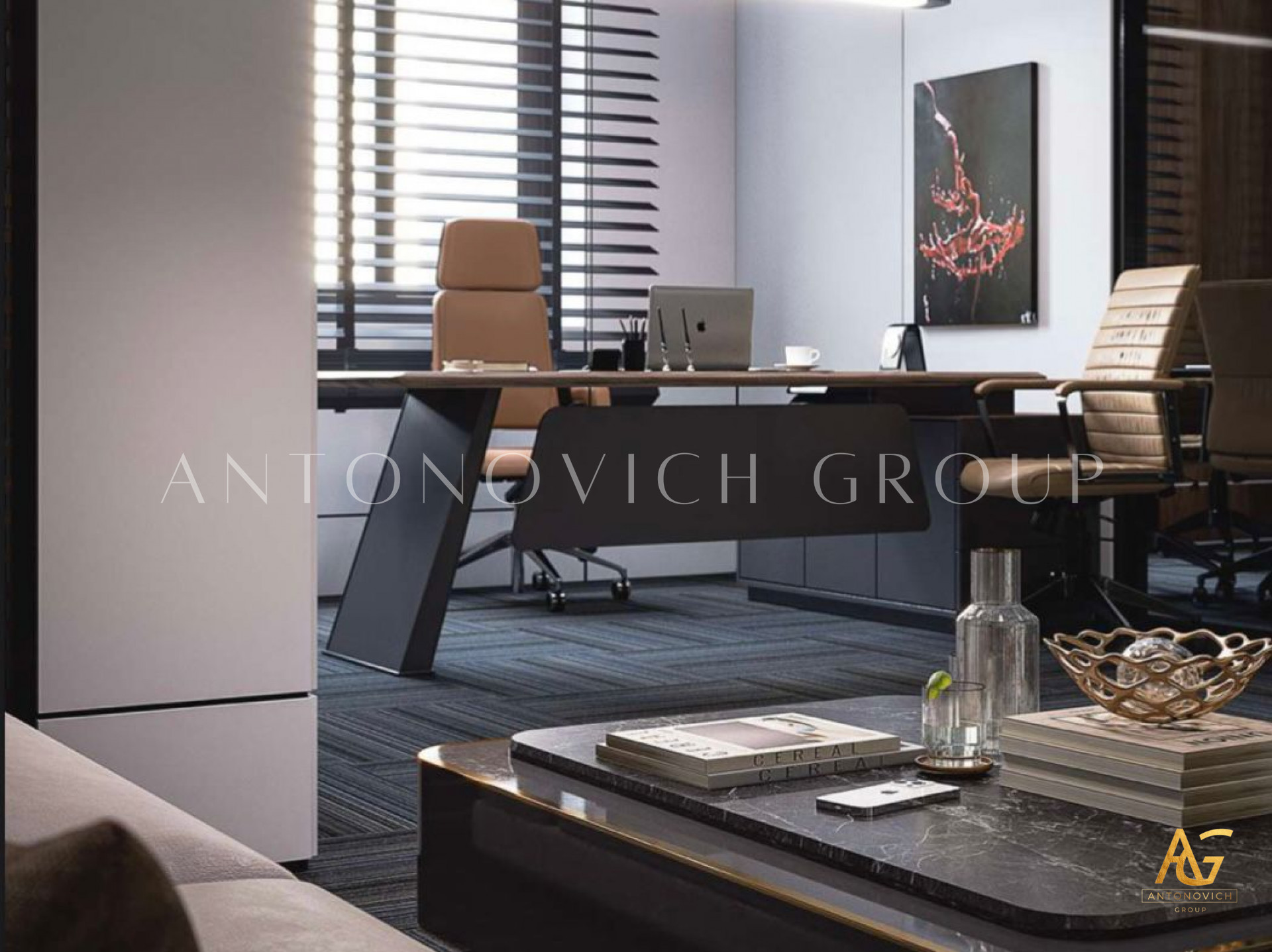 Кресла гармонируют с остальным коммерческим fit-out, боковые растения служат удачным акцентом. Этот эффектный проект — яркий пример офисный интерьер Дубай, где чудесные узоры создают захватывающую и изысканную роскошь. Золотые украшения придают пространству особый шарм. Материалы подобраны безупречно, и внимание к деталям заметно во всём — это образец оформления коммерческого офиса. Антонович Дизайн (Antonovich Design) выбрал благородный золотой оттенок для этого роскошного проекта, считая его лучшим решением для выражения роскоши. Запросы на премиальный дизайн офисов Москва и других мегаполисов подтверждают востребованность подобных решений.