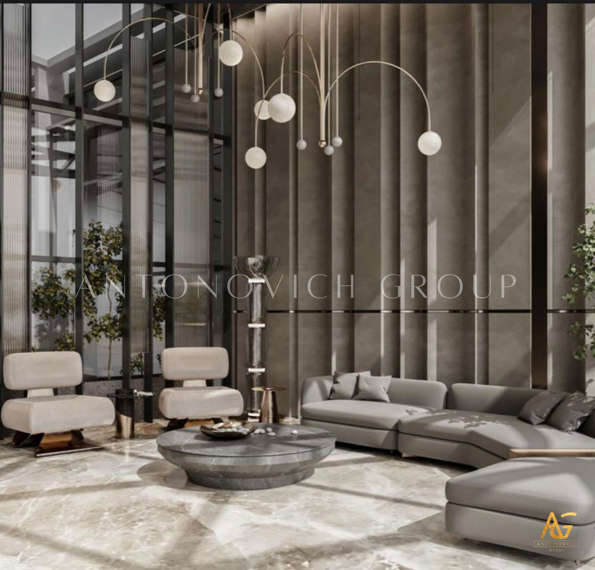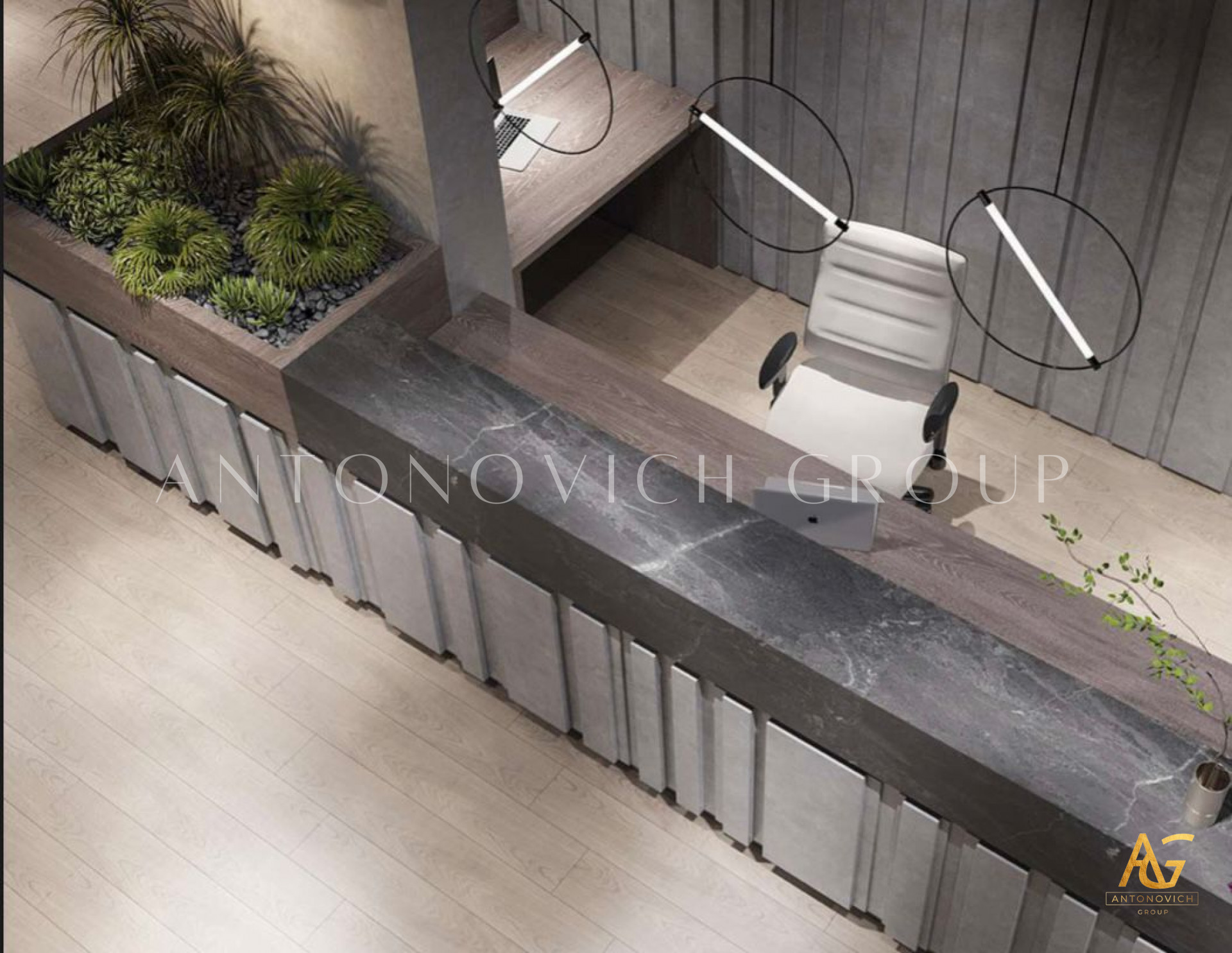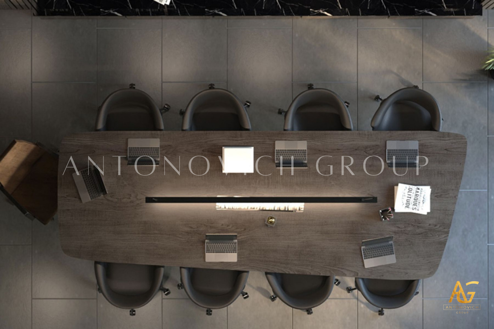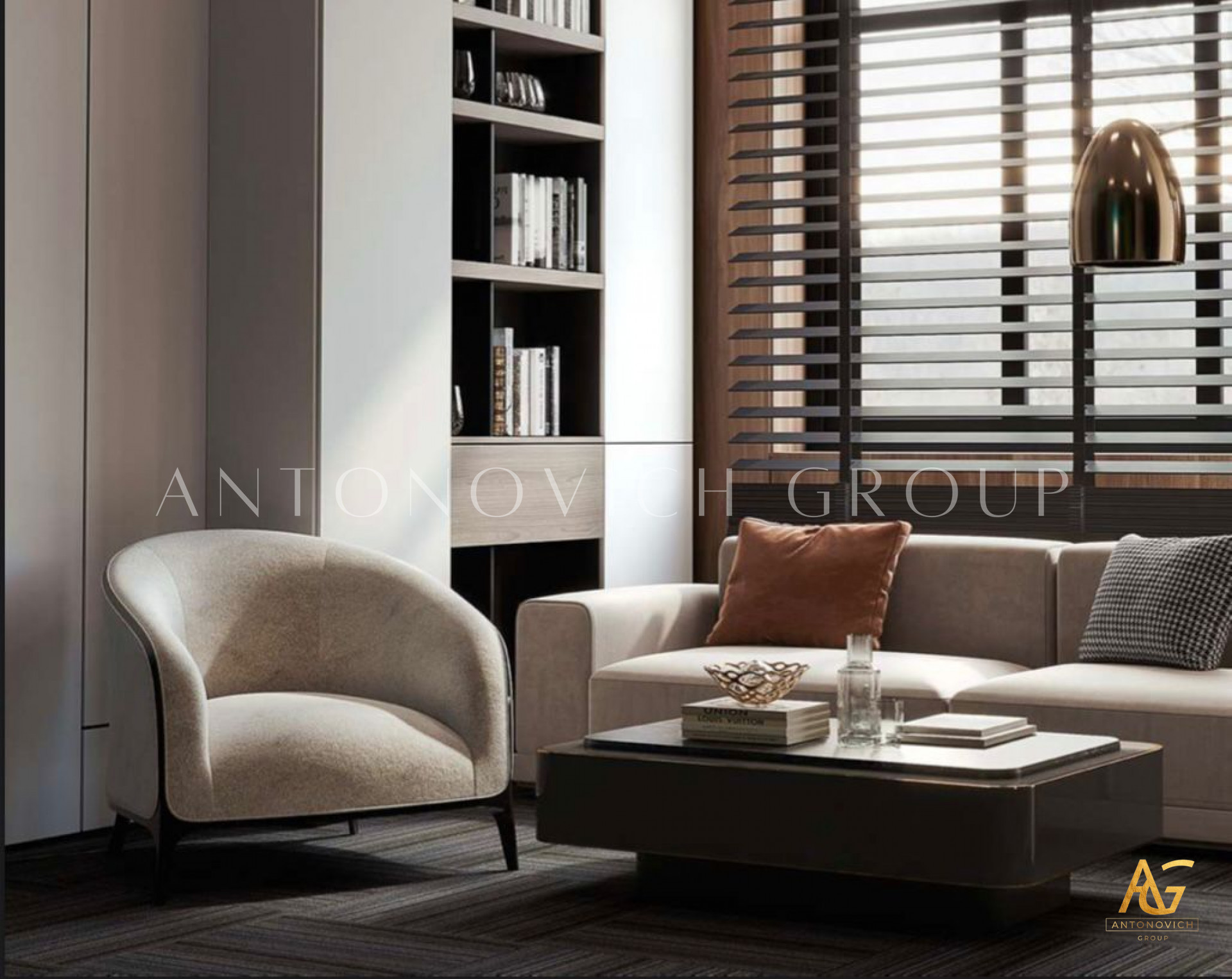 Кресла гармонируют с остальным коммерческим fit-out, боковые растения служат удачным акцентом. Этот эффектный проект — яркий пример офисный интерьер Дубай, где чудесные узоры создают захватывающую и изысканную роскошь. Золотые украшения придают пространству особый шарм. Материалы подобраны безупречно, и внимание к деталям заметно во всём — это образец оформления коммерческого офиса. Антонович Дизайн (Antonovich Design) выбрал благородный золотой оттенок для этого роскошного проекта, считая его лучшим решением для выражения роскоши. Запросы на премиальный дизайн офисов Москва и других мегаполисов подтверждают востребованность подобных решений.