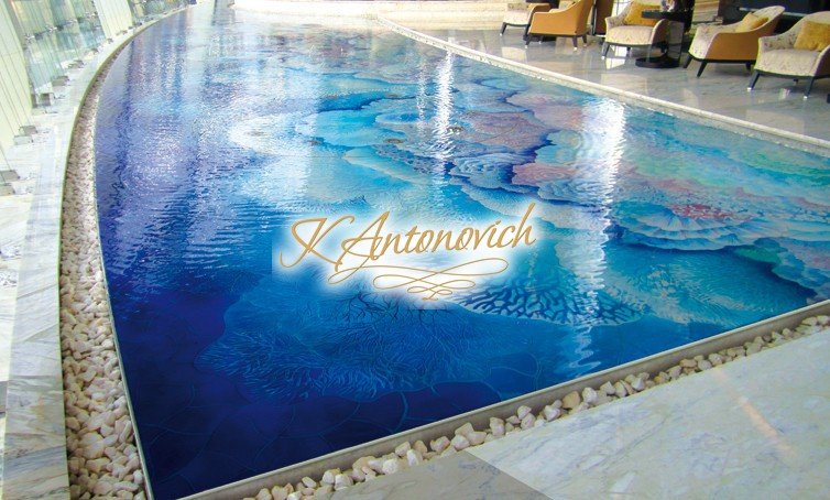 Профессионалы Антонович Дизайн (Antonovich Design) выполняют укладку бассейна с использованием современных технологий и только натуральных, высококачественных материалов. Такой бассейн принесёт эстетическое удовольствие и оправдает ваши предпочтения. С помощью наших дизайнеров и декораторов любое сложное абстрактное панно, репродукция знаменитой картины или изображение из вашей любимой фотографии может быть воспроизведено в бассейне.