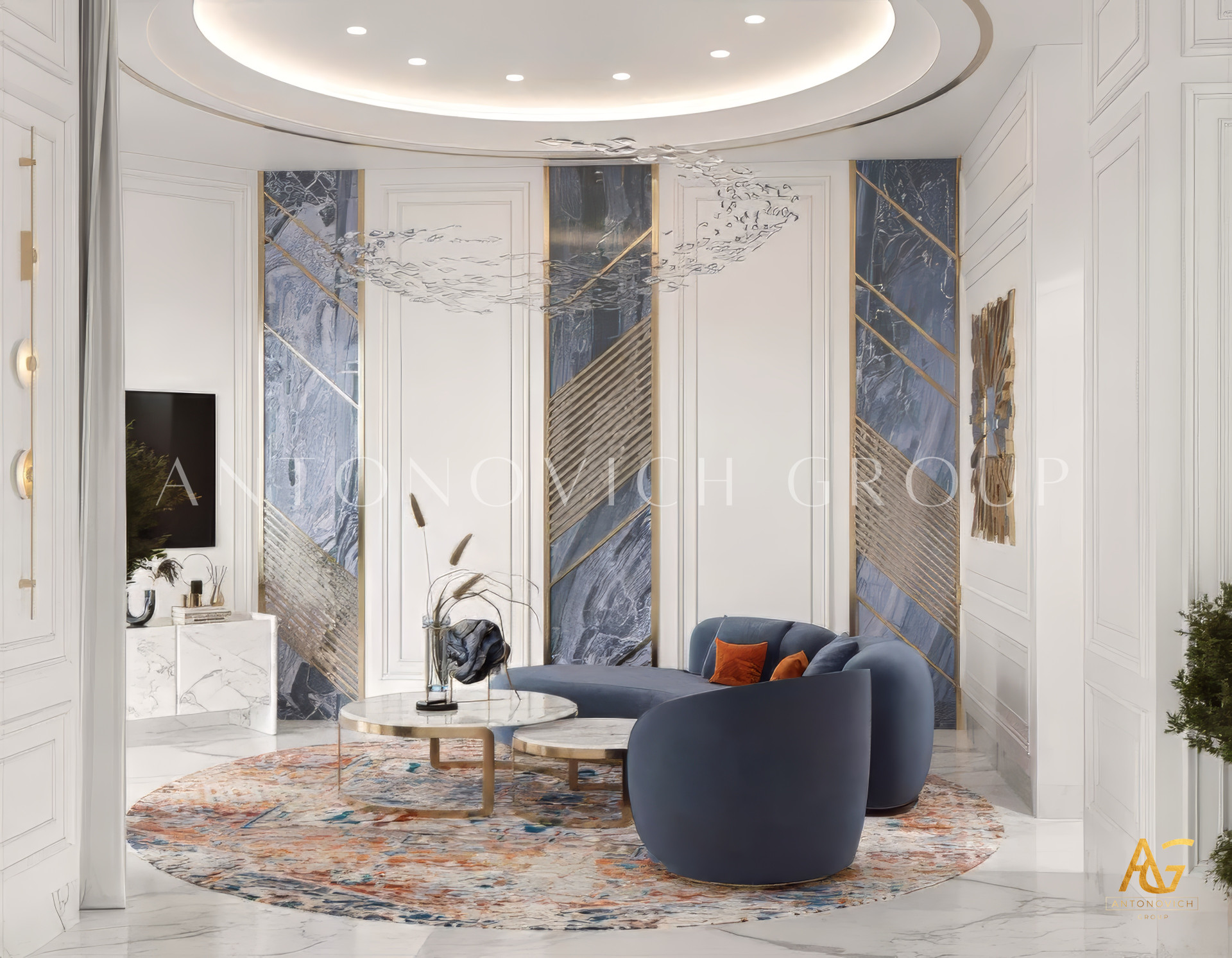 Антонович Дизайн (Antonovich Design) создаёт неоклассическую гостиную — гармонию элегантности и семейного уюта. В центре проекта — интерьер неоклассической гостиной с правильными пропорциями, мягкой палитрой и продуманным светом.