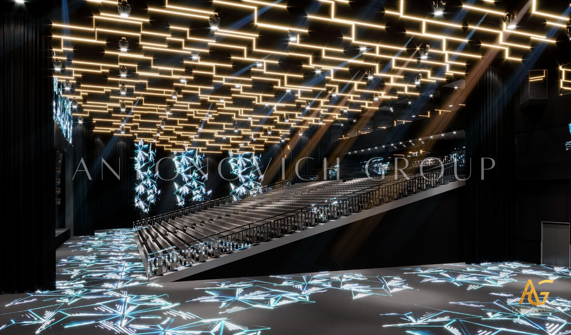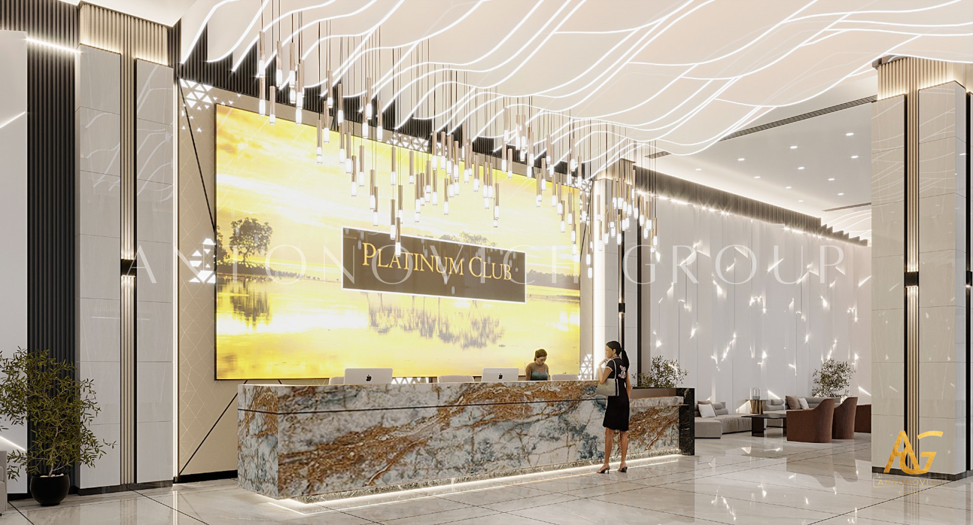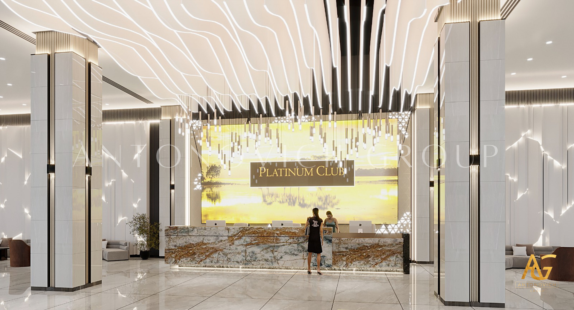 Роскошные материалы — ещё один важный элемент. В проекте для Platinum Arena используются роскошные материалы для интерьера, такие как мрамор, латунь и кристаллы, которые придают пространству благородство и долговечность.