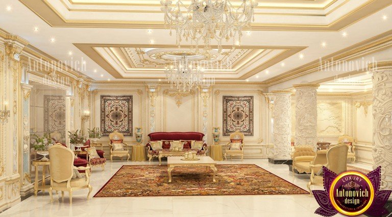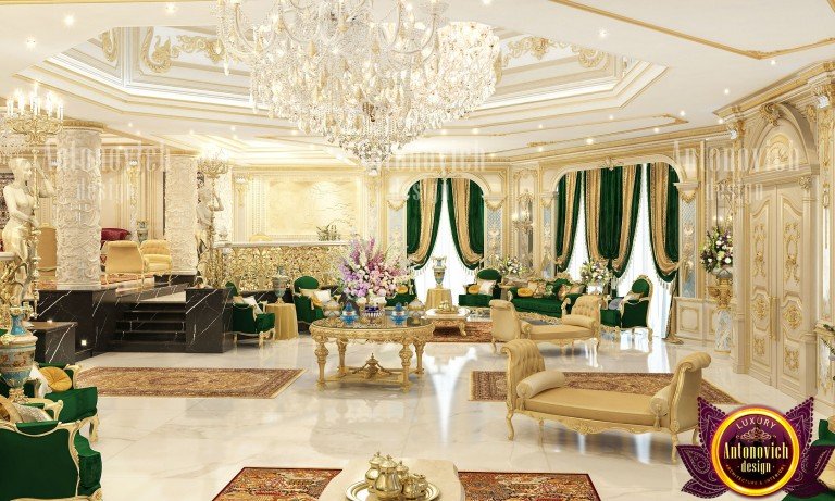 Все пронизано деликатным шиком, который отличает залы французских дворцов. В то же время интерьер и отделка холла дышат теплом и комфортом. Впечатляющая лепнина с позолотой задаёт геометрию и торжественность пространства — классическая отделка холла выполнена с особой тщательностью.