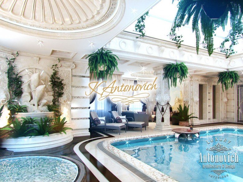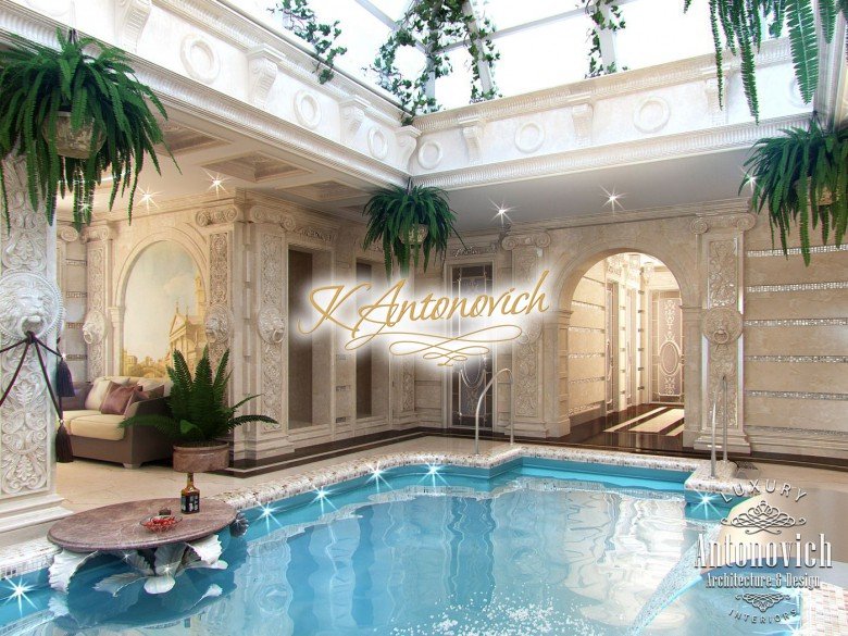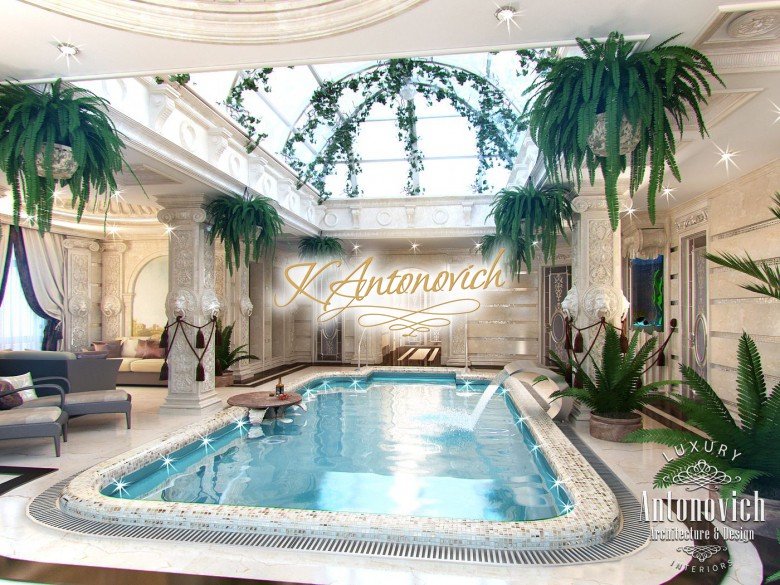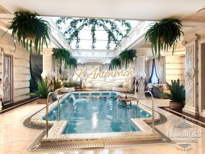В этом дизайне роскошного бассейна в Дубае собрано несколько впечатляющих элементов эстетики. Отделка стен, потолка и пола формирует единую композицию. Ничто не заменит расслабляющее погружение в бассейн после долгого рабочего дня. Этот роскошный бассейн в Дубае поднимает дневное плавание на новый уровень благодаря эффектному декору и изысканным удобствам. Здесь не осталось ни одного неухоженного уголка — этот бассейн в ОАЭ продуман до мелочей. Эти летние святилища расположены в пышной среде и сохраняют прохладу в течение всего сезона. Главная особенность — изящно оформленная терраса бассейна с продуманной композицией, LED-подсветка бассейна и потолок, вдохновлённый природой. Плитка и узоры на премиальном полу усиливают исключительность пространства. Отделка бассейна мраморной плиткой подчёркивает его статус и утончённость. Декор этого роскошного бассейна действительно преобразует комнату — кремовая гамма оживляет интерьер. Мировая компания Антонович Дизайн (Antonovich Design) поможет вам создать дизайн бассейна в ОАЭ вашей мечты. Интерьер бассейна премиум класса задуман для сочетания развлечения и благородной обстановки. В этом впечатляющем помещении предусмотрена превосходная мебель, что делает его полноценным внутренним бассейном под ключ. Роскошный интерьер закрытого бассейна обширен и впечатляет прекрасными материалами и оформлением. Все базовые задачи учтены в современном решении для бассейна. Плавание здесь поднимет уровень вашей релаксации и комфорта.
