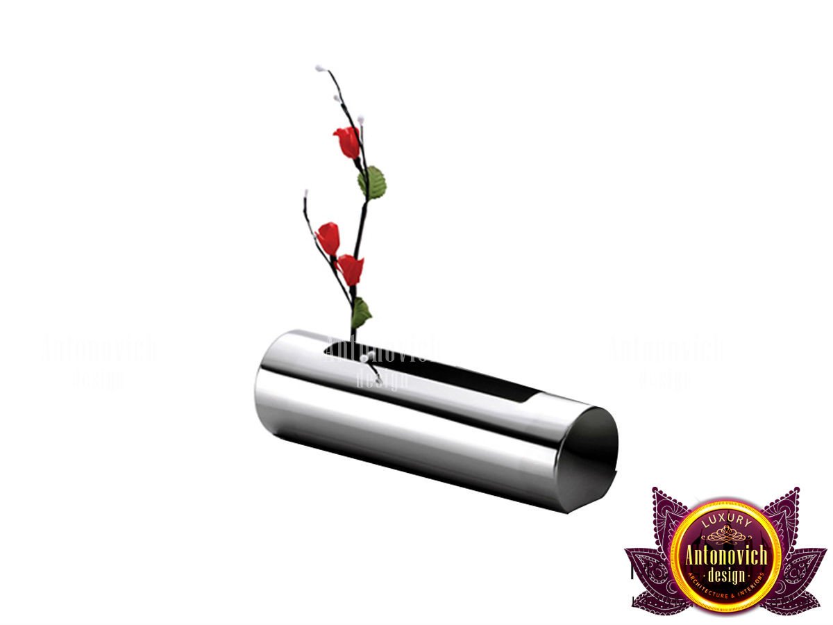 Они могут быть выполнены из металла, пластика, стекла, хрусталя, керамики, фарфора, бетона, вырезаны из дерева или сплетены из прута. Форма вазы может быть самой разной. Антонович Дизайн выполняет настольные вазы в форме ромба, прямоугольника, круга, они могут быть прямыми или изогнутыми, удлинёнными, цилиндрическими, коническими, складными, в виде кувшина, чаши, горшка и т.д. То же относится и к декору поверхности: узоры, рельеф, роспись, монохромные цвета или яркий рисунок. Помните, что интерьер комнаты и декоративная ваза должны быть в гармонии. Следите за соответствием стиля: монохромные варианты идеальны для минимализма, расписные изделия — для классического интерьера.