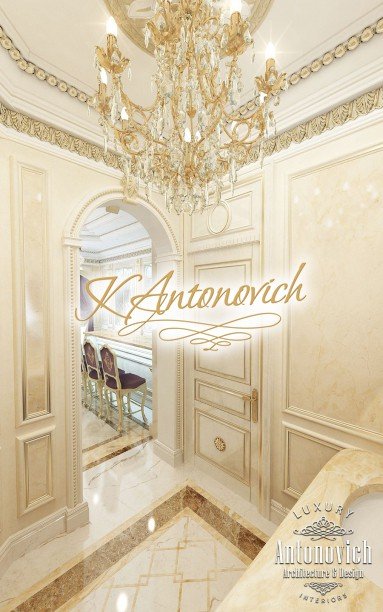 Планы дома, о которых мечтали владельцы недвижимости в ОАЭ, стали основой проекта. В этом проекте классика и восточный стиль гармонично сосуществуют. Прежде всего дизайн интерьера вилл отражает открытую и гостеприимную натуру хозяев, их позитивный взгляд на жизнь и утончённый вкус. В представленном примере дизайн интерьера вилл в Дубае активно используются яркие оттенки и насыщенные тона, в холле резной узор на мраморном полу напоминает цветущие цветы. В интерьере много дизайнерских акцентов. Роскошный дизайн интерьера вилл видно в консоли на резных ножках с позолотой на фоне большой зеркальной панели с декоративными латунными узорами, этот приём отражает технику мэшрабия. Потолок с лепным декором и элегантной люстрой выглядит благородно. Круглый холл с арками открывает другие жилые комнаты, и каждый из залов обладает ярким характером. Так интерьер виллы в ОАЭ подчёркивает лучшие обычаи маджлиса, большое количество мягкой мебели позволяет комфортно принять много гостей. Яркие акценты — изящный шёлк изумрудного оттенка, украшающий окна, и шёлковые подушки ручной вышивки, а оформление виллы в Дубае дополнено тщательной планировкой, и планировка интерьера виллы в Дубае включает две зоны отдыха с местом для релакса и столовой. Такой подход стал основой проектов интерьера вилл в Дубае, создаваемых Антонович Дизайн (Antonovich Design). Он представляет собой воплощение современного дворцового роскошного интерьера, где мечты и пожелания хозяев имеют первостепенное значение. Он также виден в примерах дизайн виллы в Дубае и дизайн частной виллы в Дубае, демонстрируя элитный дизайн интерьера вилл и роскошный дизайн интерьера вилл.