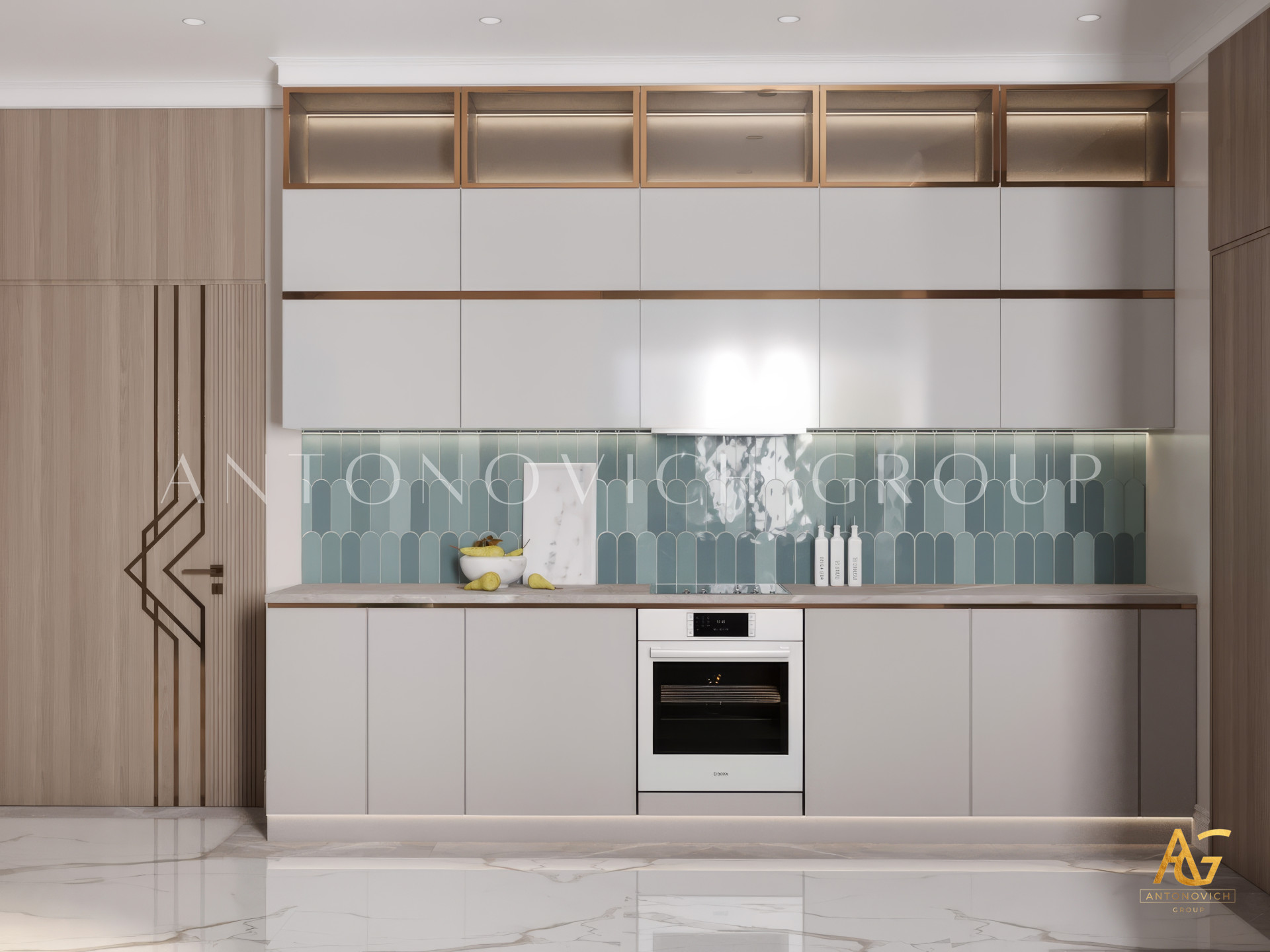 Striking harmony, amazing simplicity, exquisite design, not annoying the eye with useless details. White is the predominant color in this kitchen. Admit it honestly, it looks amazing when everything around you shines with purity. Well thought out, ideally created on high-precision production by Luxury Antonovich Design radiates endless beauty. If you are looking for a kitchen without compromise, it is exactly what suits you.
