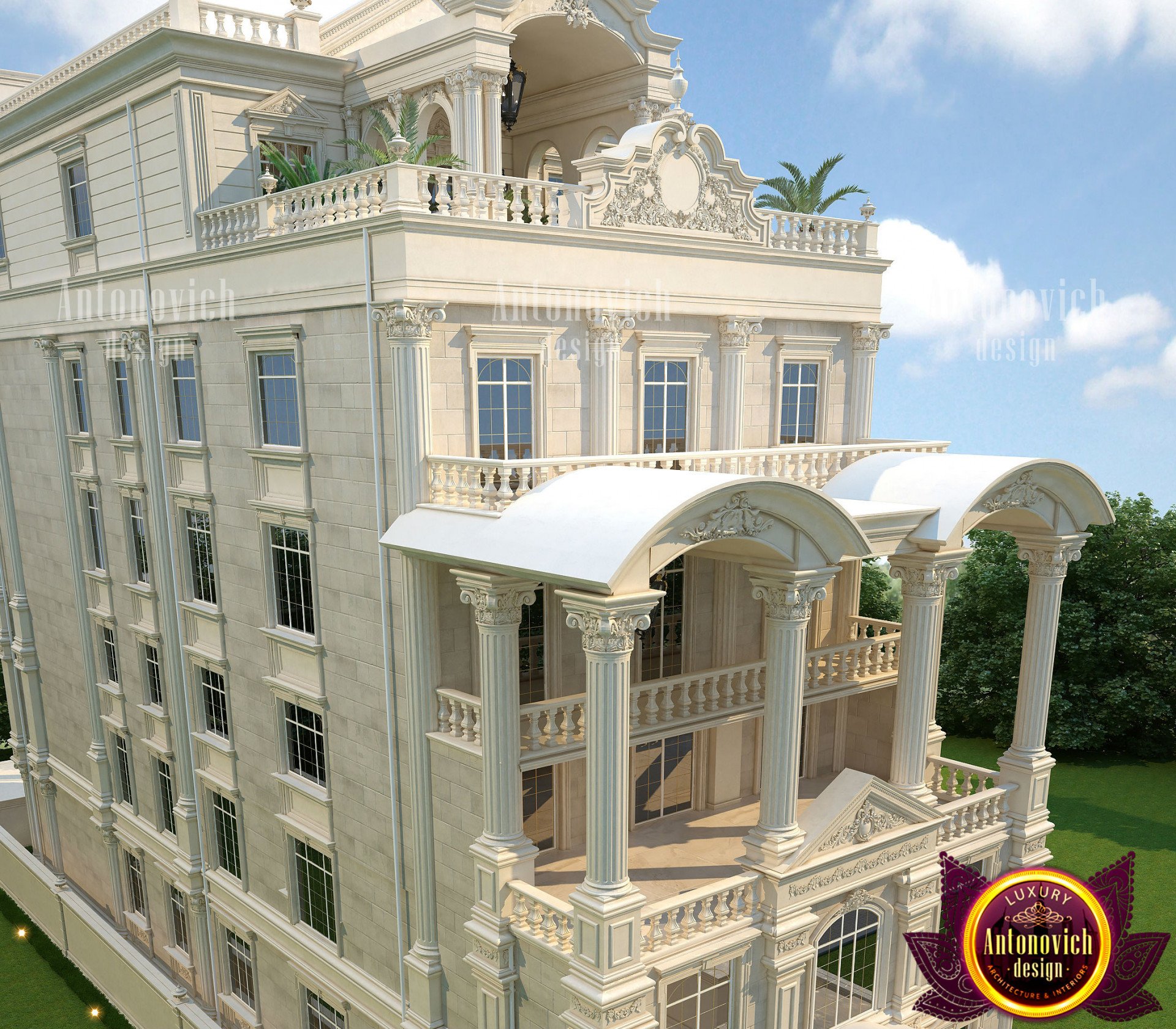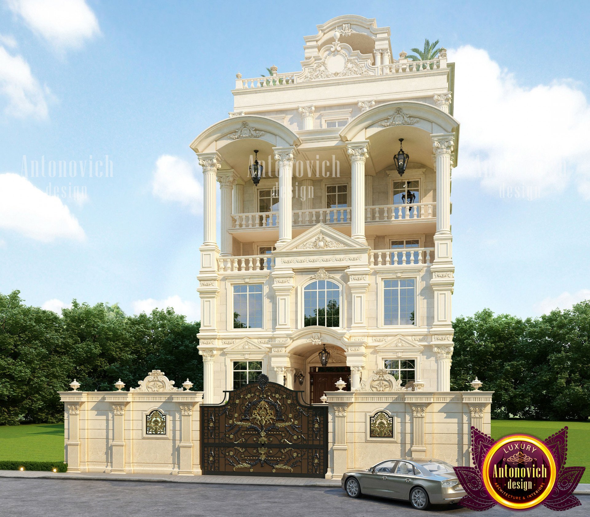 Development of a house facade design project is a difficult and time-consuming task. The facade, without exaggeration, is the face of any building, and the impression of it and its owner will depend on how competently and beautifully it is designed. In an architectural project, this word has a slightly different meaning, because the task of any project by Luxury Antonovich Design is to give not only artistic, but also technical information. Therefore, traditionally facades are called orthogonal projections of the house from the “side”. In these drawings all dimensions and elevations should be read.