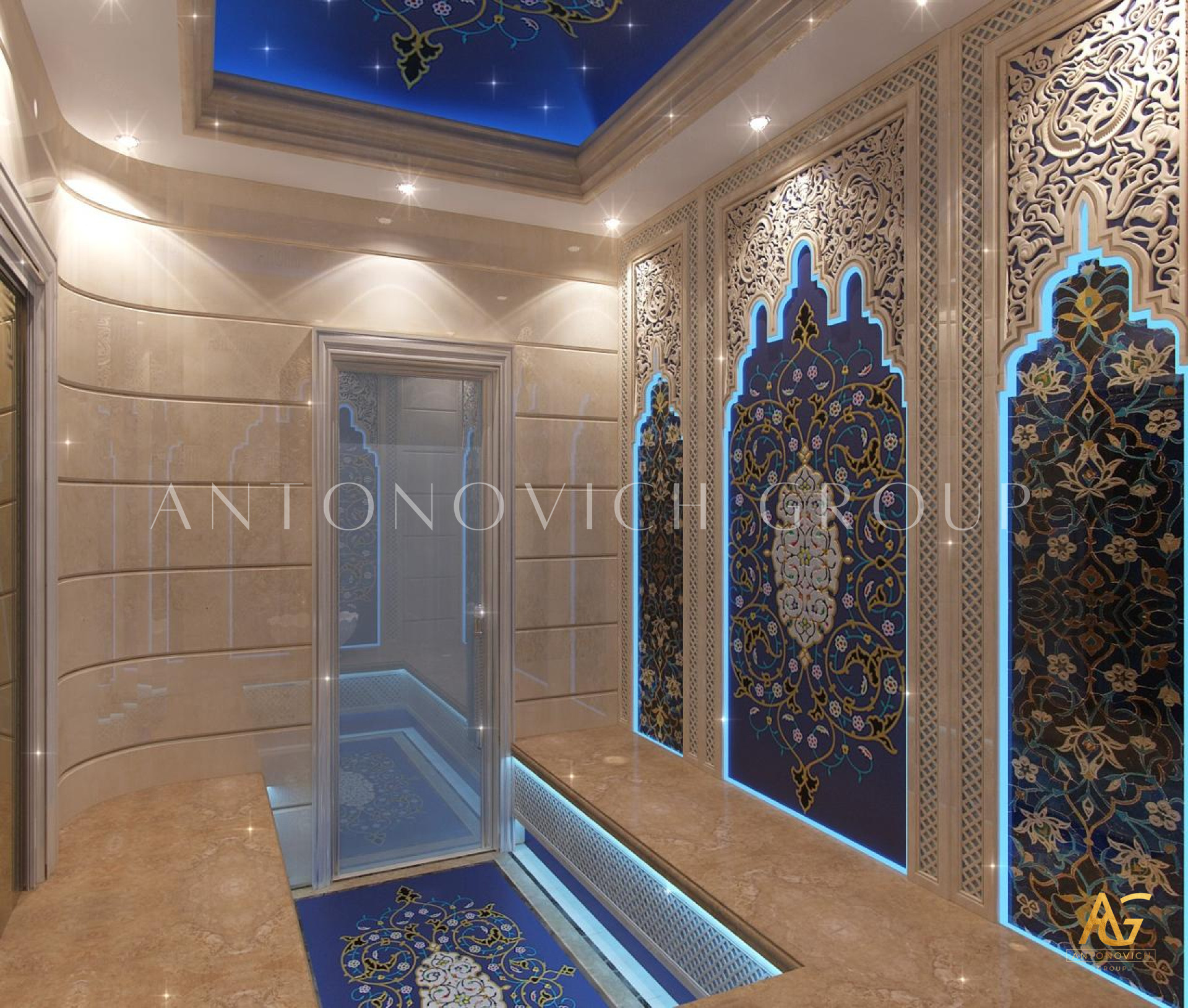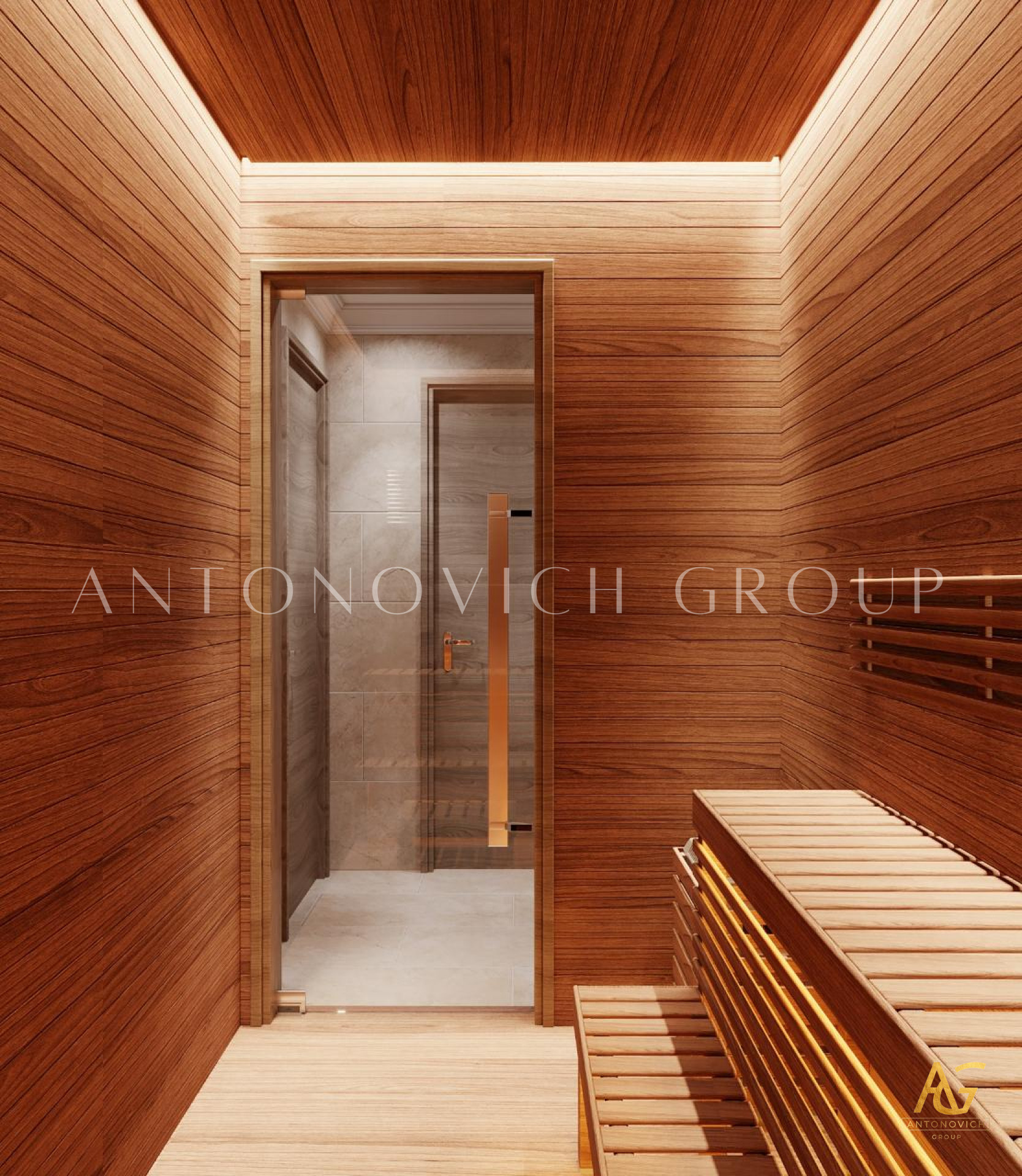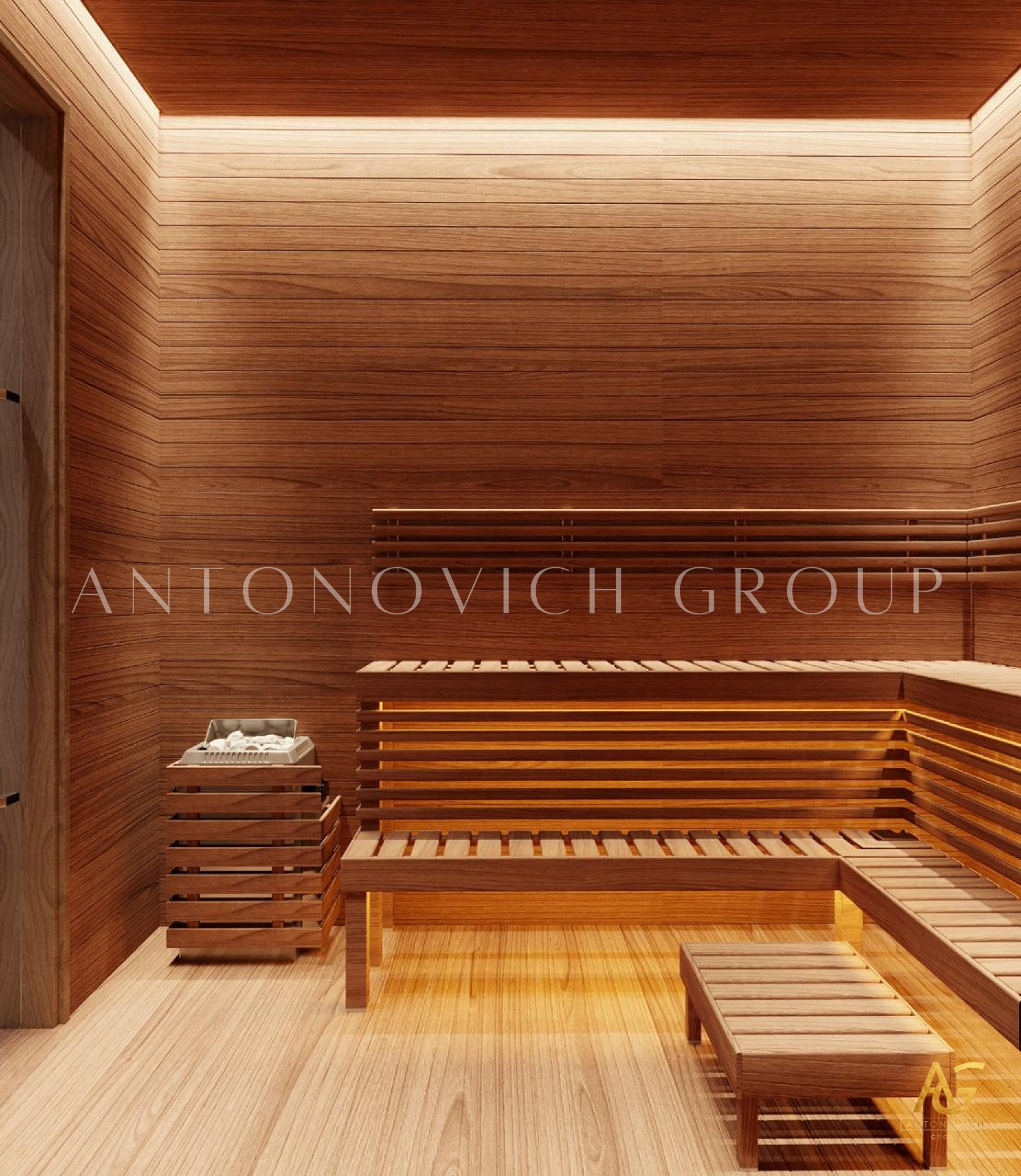 Developing a project of a gym or a spa room is always associated with a number of important tasks. Our Luxury Antonovich Design team of architects and designers will help you to choose the right floor covering, high quality finishing materials, think through a rational arrangement of ventilation devices and lighting devices, engineering communications and take into account many other nuances.
