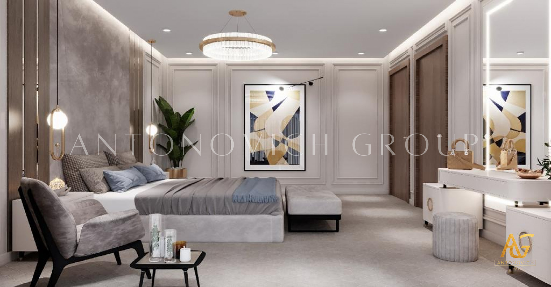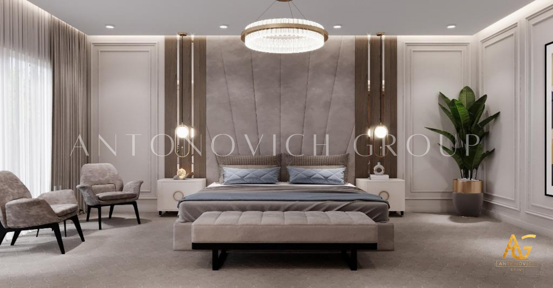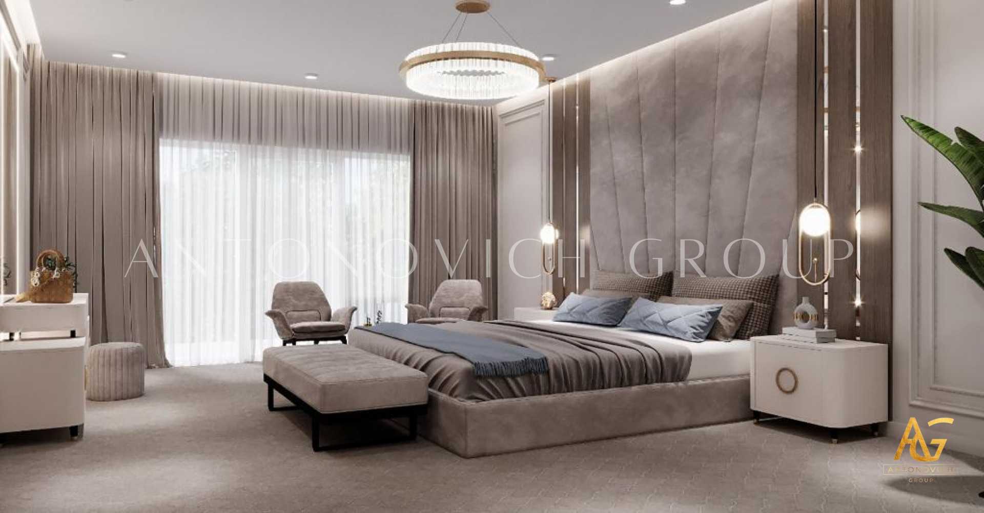 As the top interior designers, Antonovich Group provides full services from A to Z to create the right environment of warmth and flair for extraordinary bedroom interior design. Color mixing in the bedroom is essential for achieving a consistent home design style. As a result, in addition to space planning, choosing materials, colors, and decorations is a time-consuming process that demands undivided attention. Client points and requirements would go a long way toward creating the best bedroom interior design.