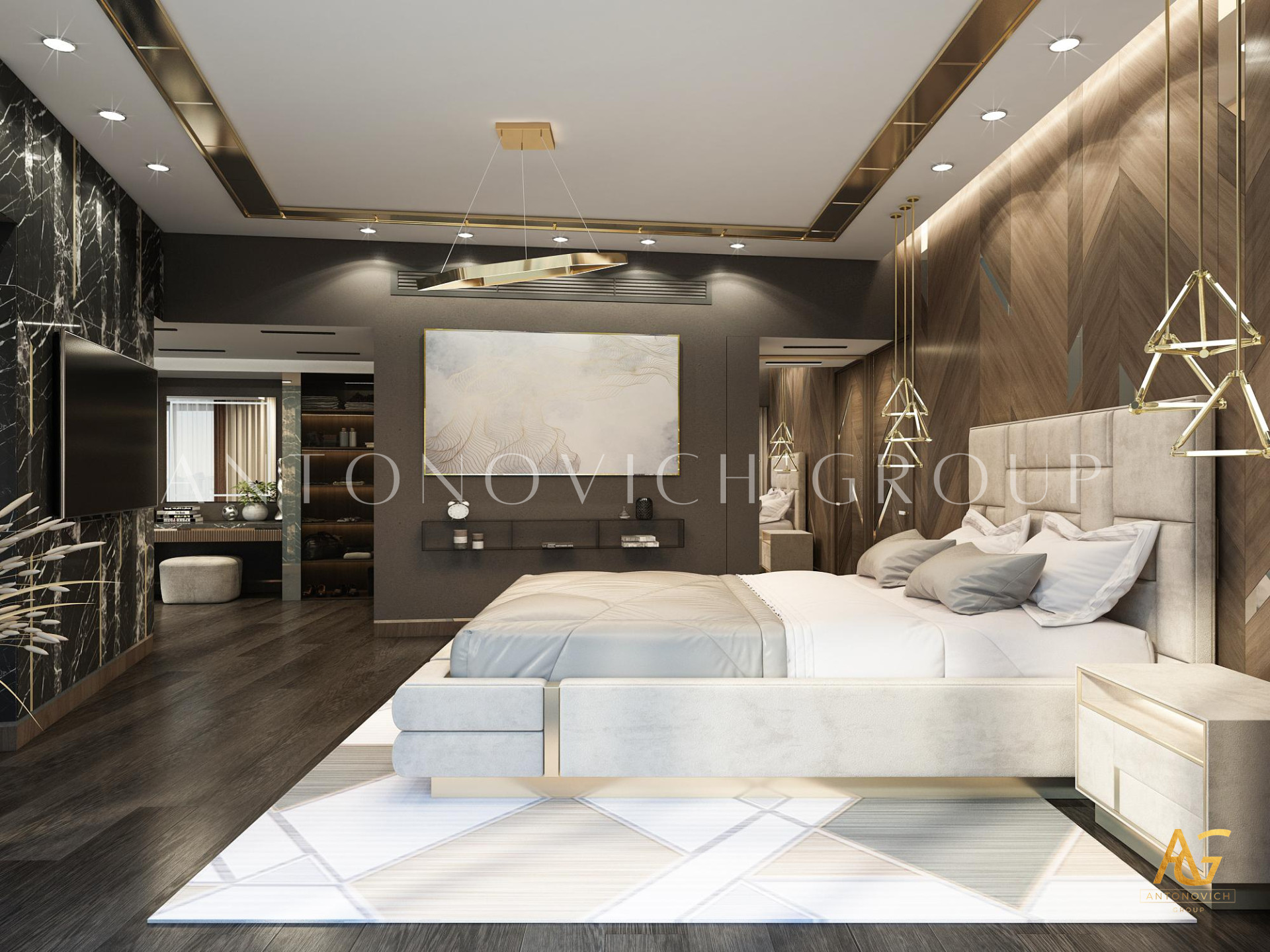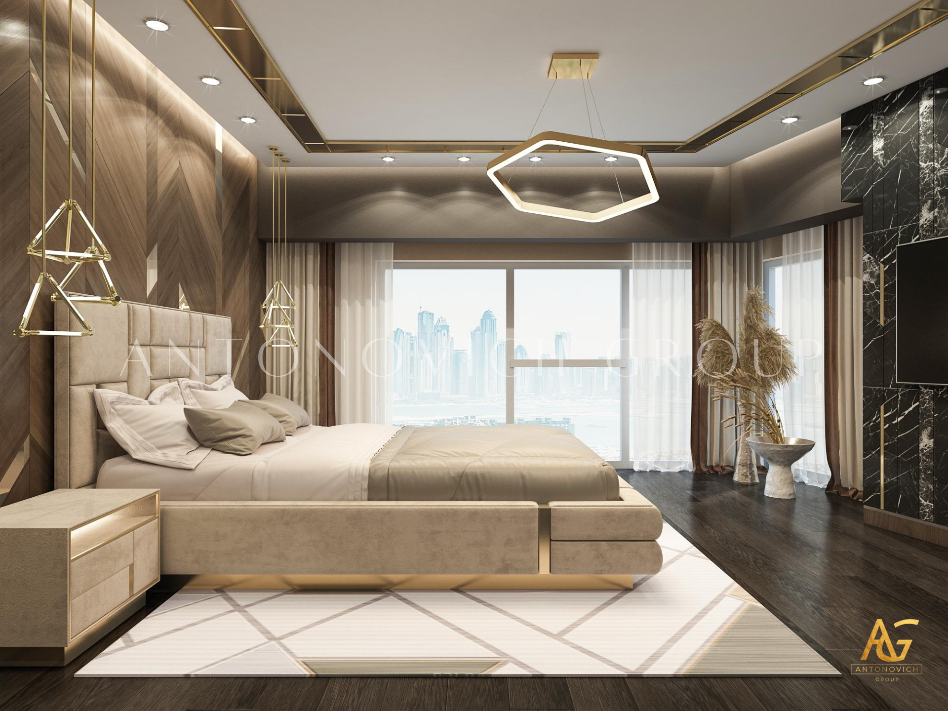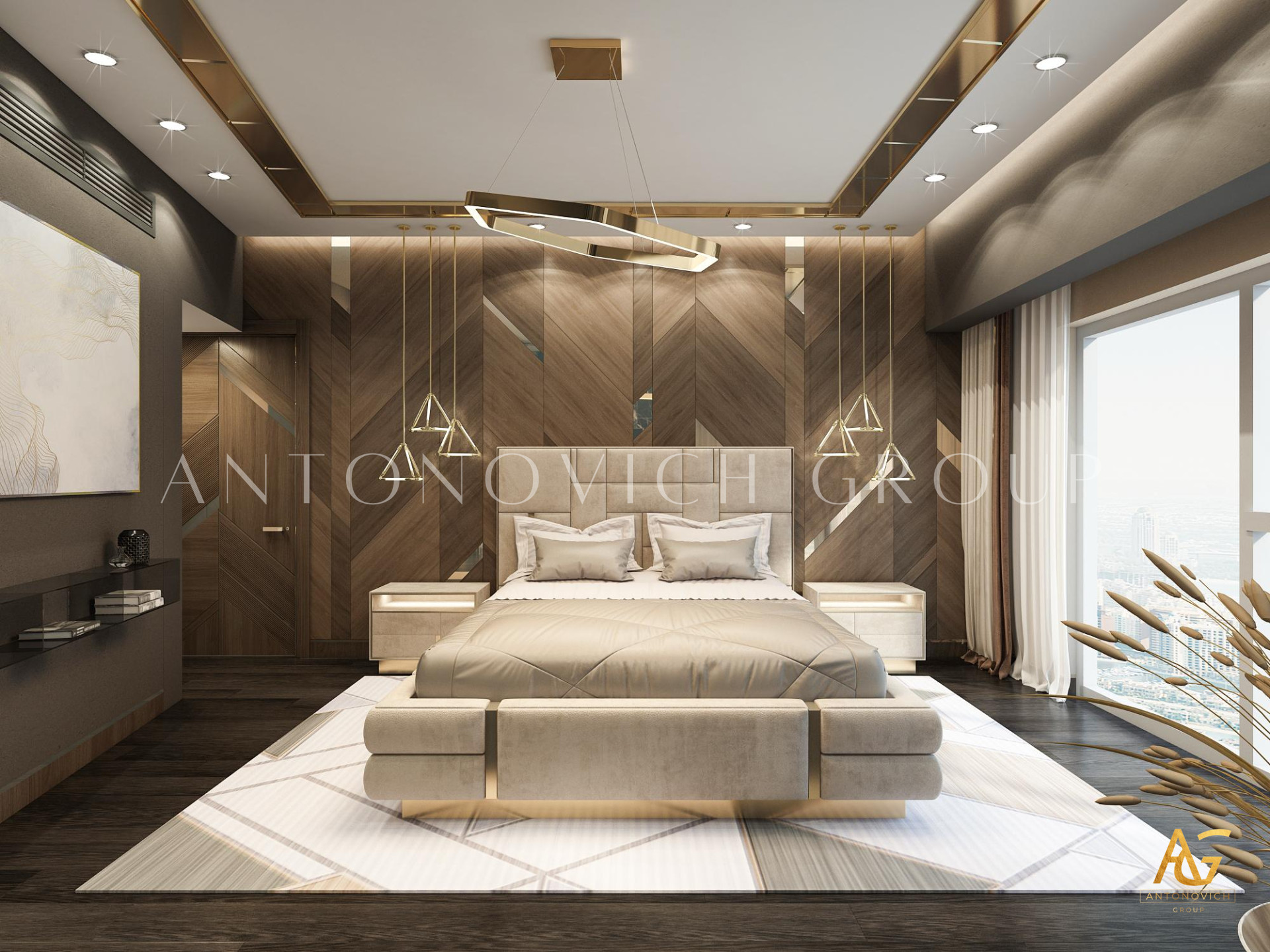 Luxury bedroom interiors by Antonovich Group feature only the finest materials and finishes. From Italian marble flooring and handcrafted wooden furniture to plush velvet upholstery and crystal chandeliers, every detail is carefully selected to enhance the elegance of the space. Whether designing a lavish master suite or a stylish guest bedroom, Antonovich Group ensures that every material used reflects opulence and durability. Maximizing space without compromising on style is a key aspect of Antonovich Group’s approach. Their expert designers create smart layouts that optimize storage, enhance natural light, and maintain a clutter-free environment. Walk-in wardrobes, built-in shelving, and multifunctional furniture are seamlessly integrated to provide both convenience and luxury.