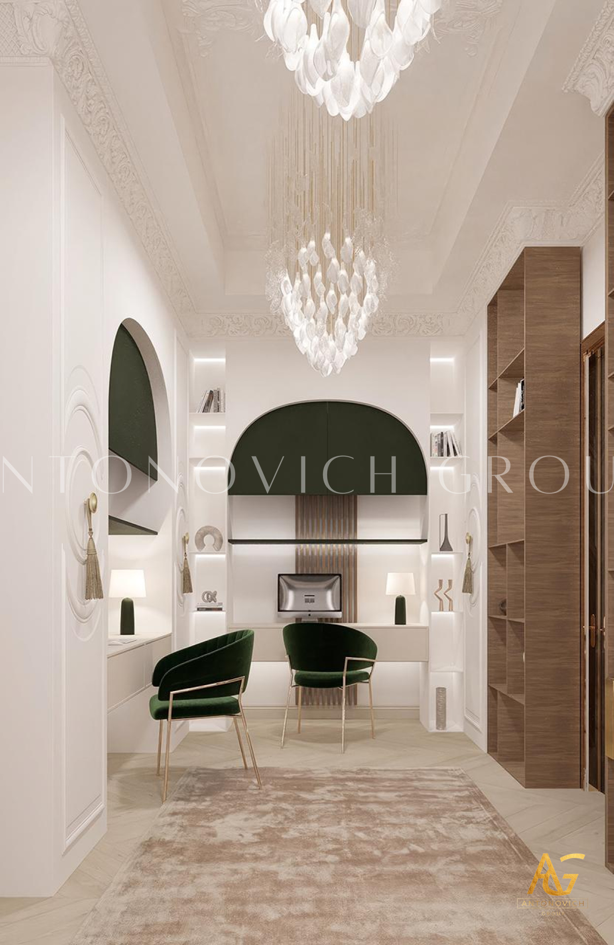 There is a direct dependence between the effectiveness of the kids education and the convenience of their workplace. Moreover, children health depends on furniture solution and lighting. Our company Luxury Antonovich Design will help you to organize and create the design of the working area in the childrens study room correctly.