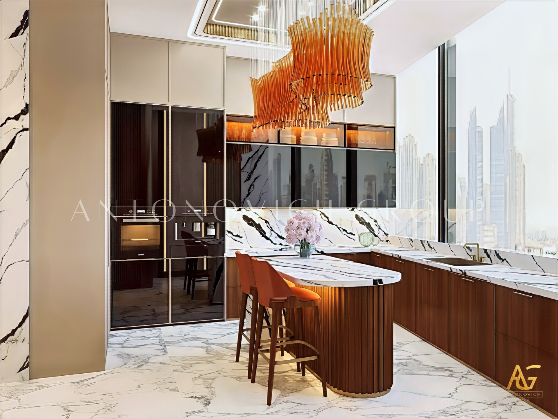 The walls in this luxury kitchen interior design are also superbly beautiful. They are not left unnoticed as Luxury Antonovich Design has made sure that the entire walls will have its own characteristics and personality. The luxury kitchen interior design also has a huge flooring which has an amazing pattern. The overall finish of the luxury kitchen interior design is beyond beautiful.