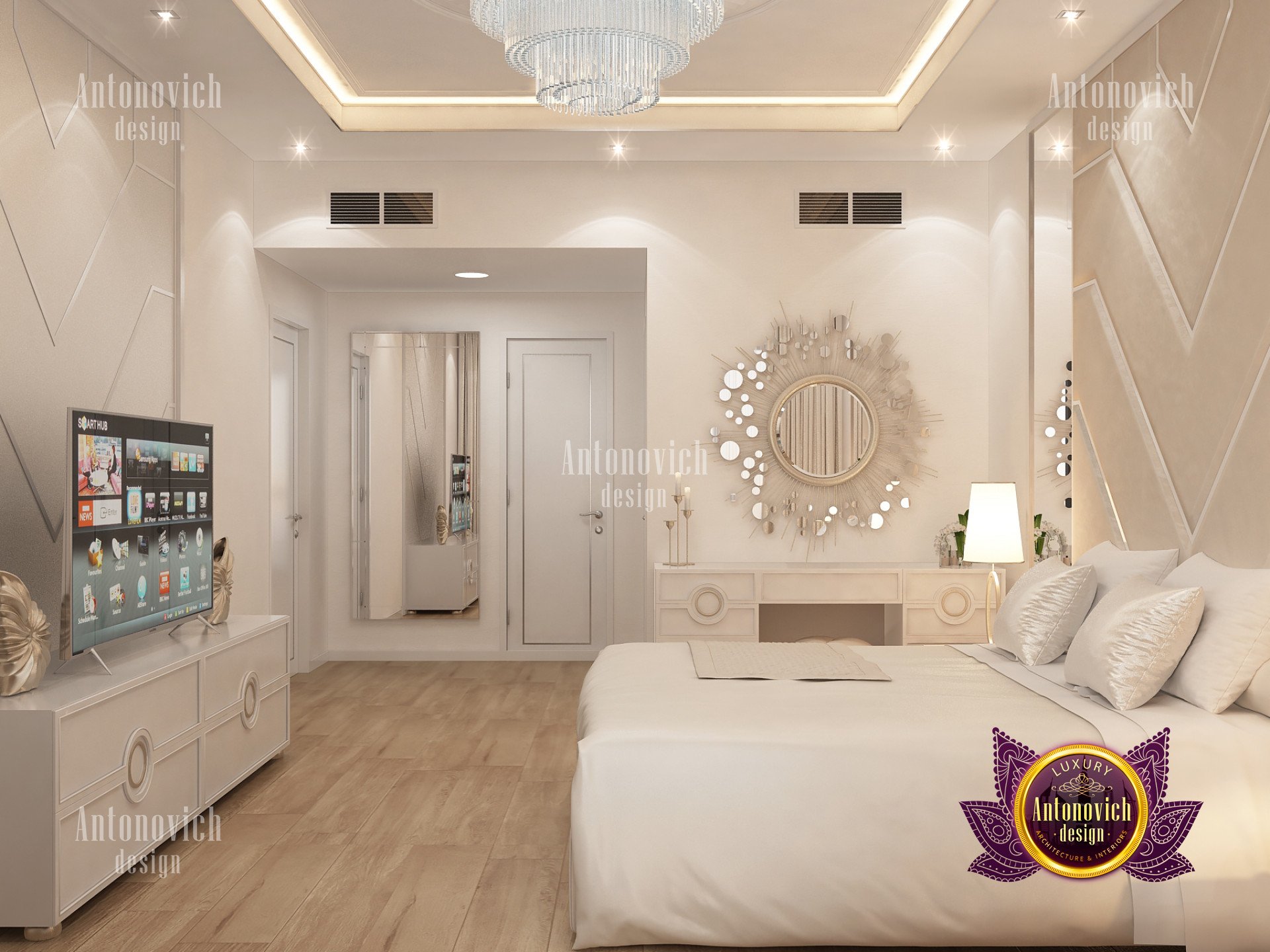 Every angle of the luxury bedroom interior design is captivating and has a unique element. The gorgeous lamps add to the stunning design of the luxury bedroom interior design. Having a luxury bedroom interior design like this every morning is truly a beautiful atmosphere that you will surely love. Luxury Antonovich Design has made sure that every corner of this luxury bedroom interior design is beautiful and minimalist.
