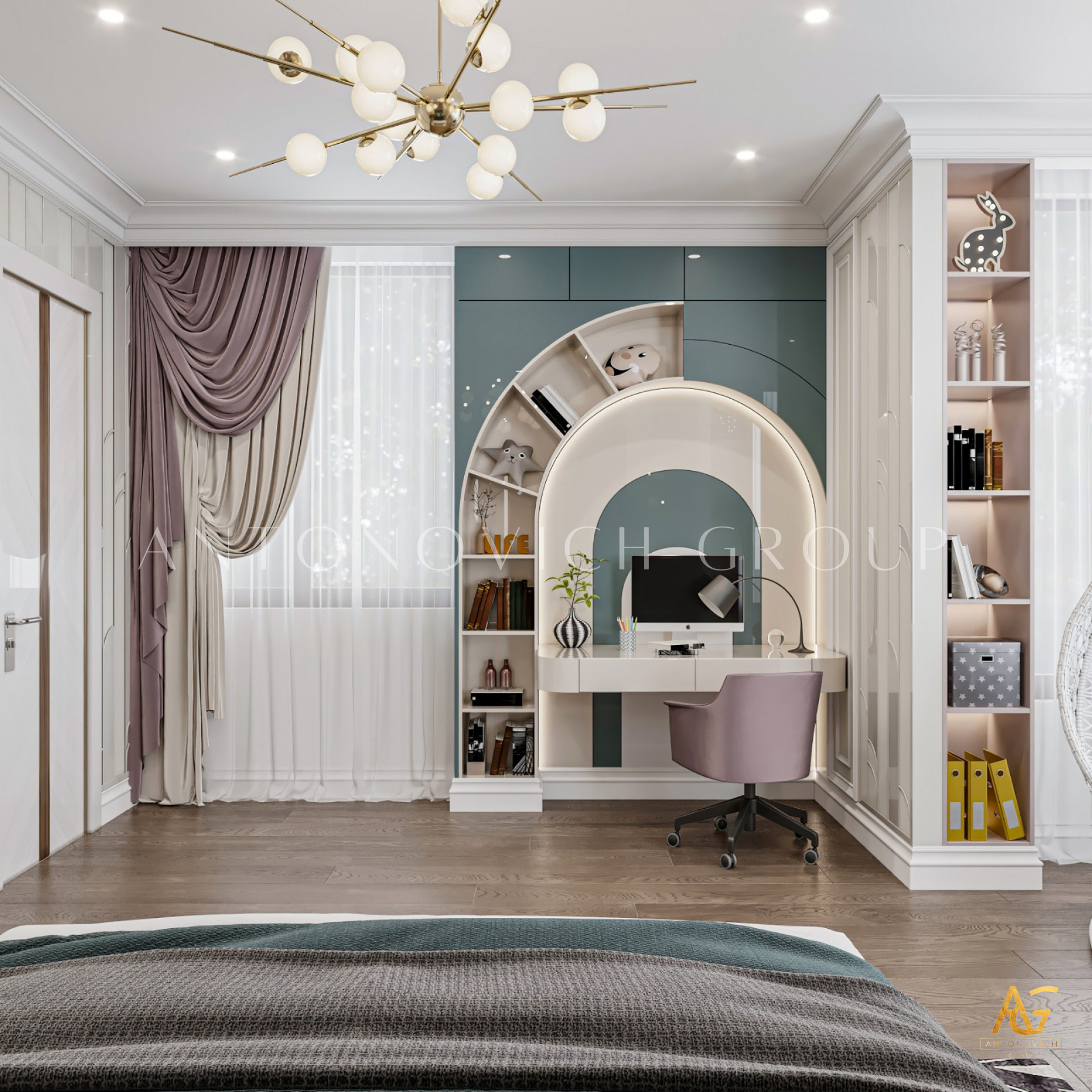 Antonovich Group's stylish bedroom interior designs for kids are a perfect blend of form and function. They create visually stunning spaces that are also practical and functional, incorporating color, pattern, furniture, storage, lighting, and accessories to create a fun and inviting atmosphere that children will love. Whether you're designing a nursery for a new baby or a bedroom for an older child, the Antonovich Group's designs are sure to inspire and delight.