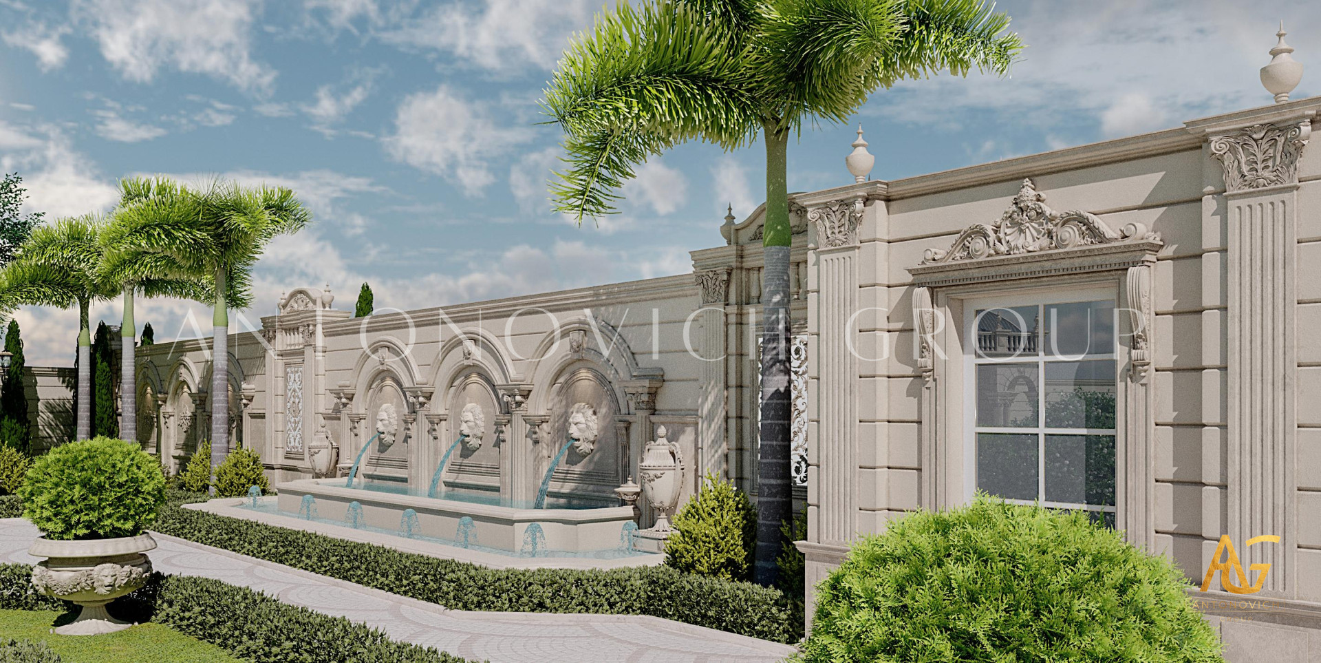 A well-designed landscape complements the villa’s grandeur, creating a serene and breathtaking environment. Antonovich Group specializes in lush garden designs, featuring: