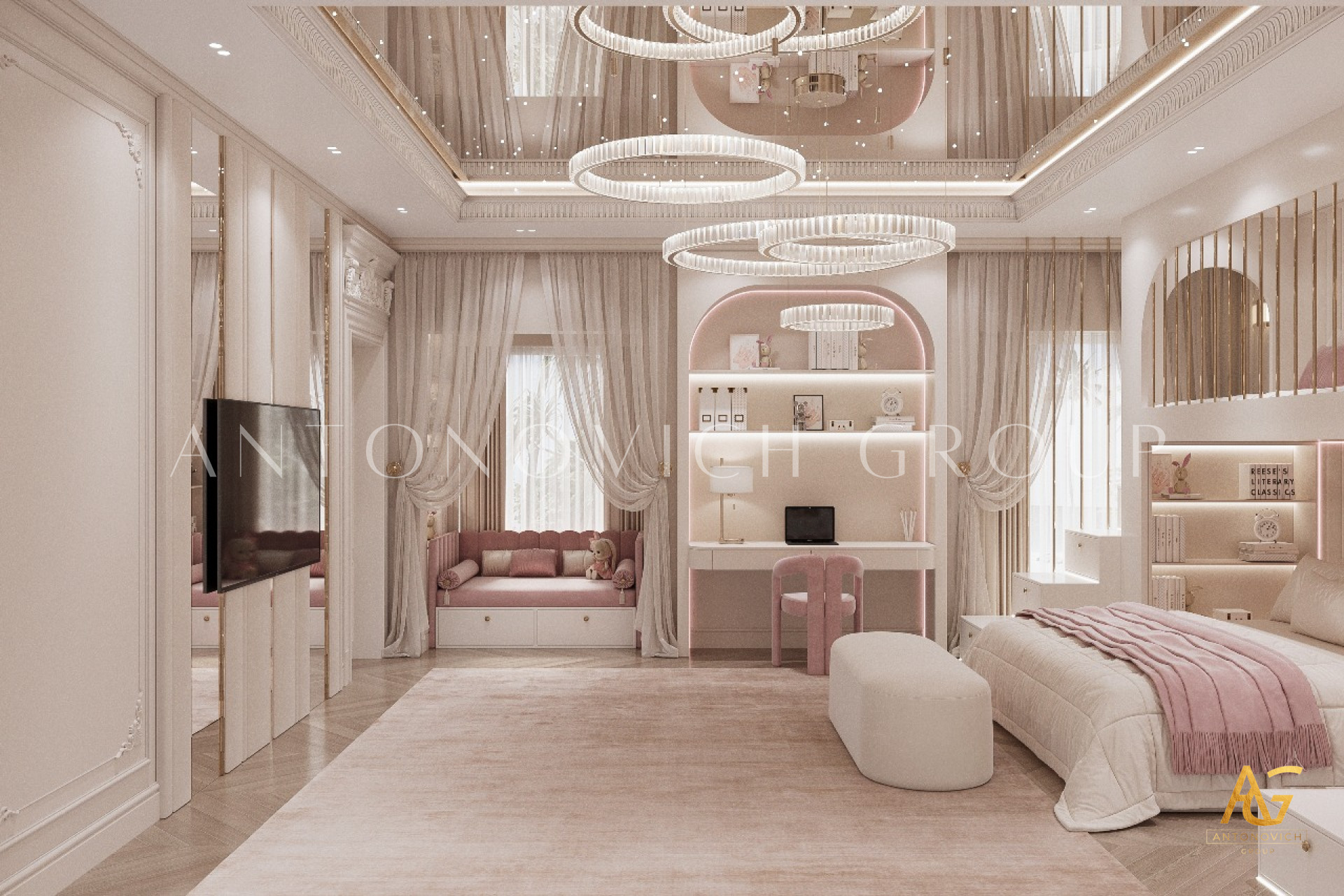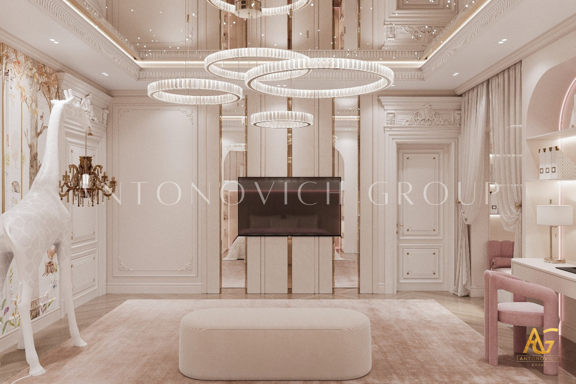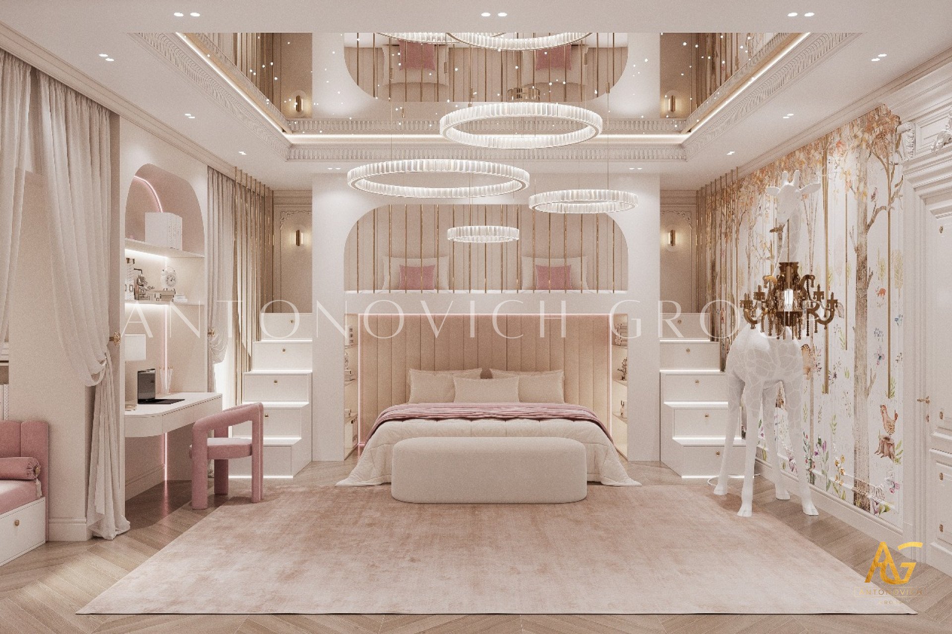 Luxury Antonovich Design is the creator of the most exquisite architecture and the best interior design Dubai. It has been always the top of the choice of every VIP’s, Royal families and world top leaders in developing their prestigious properties inside and outside Dubai. This elegant bedroom interior design for kids has been very well performed having the most tender and comfortable mood for the kids. To achieve the consistent design of the expensive villa design in classic concept, this bedroom for kids has been very well implemented having a classical interior mood as well. On the other hand,Luxury Antonovich Design manages to bring out most of the ideal decoration that is suitable to the style and interest of the kids for this bedroom.