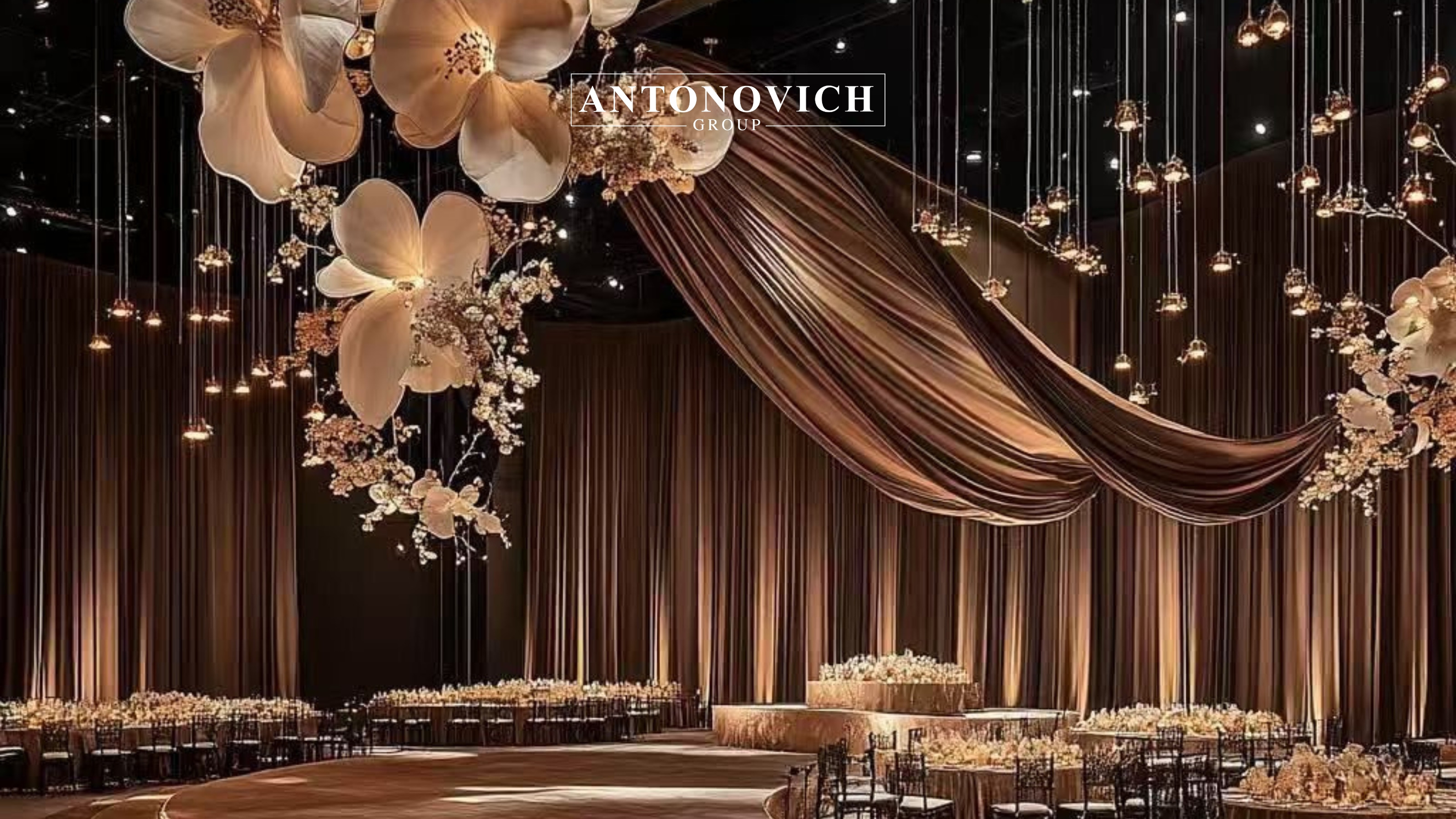 For luxury weddings and VIP events, Antonovich Group creates fully customized tented venues complete with lighting, flooring, staging, and decor. These tents are perfect for outdoor galas, ceremonies, and private banquets.