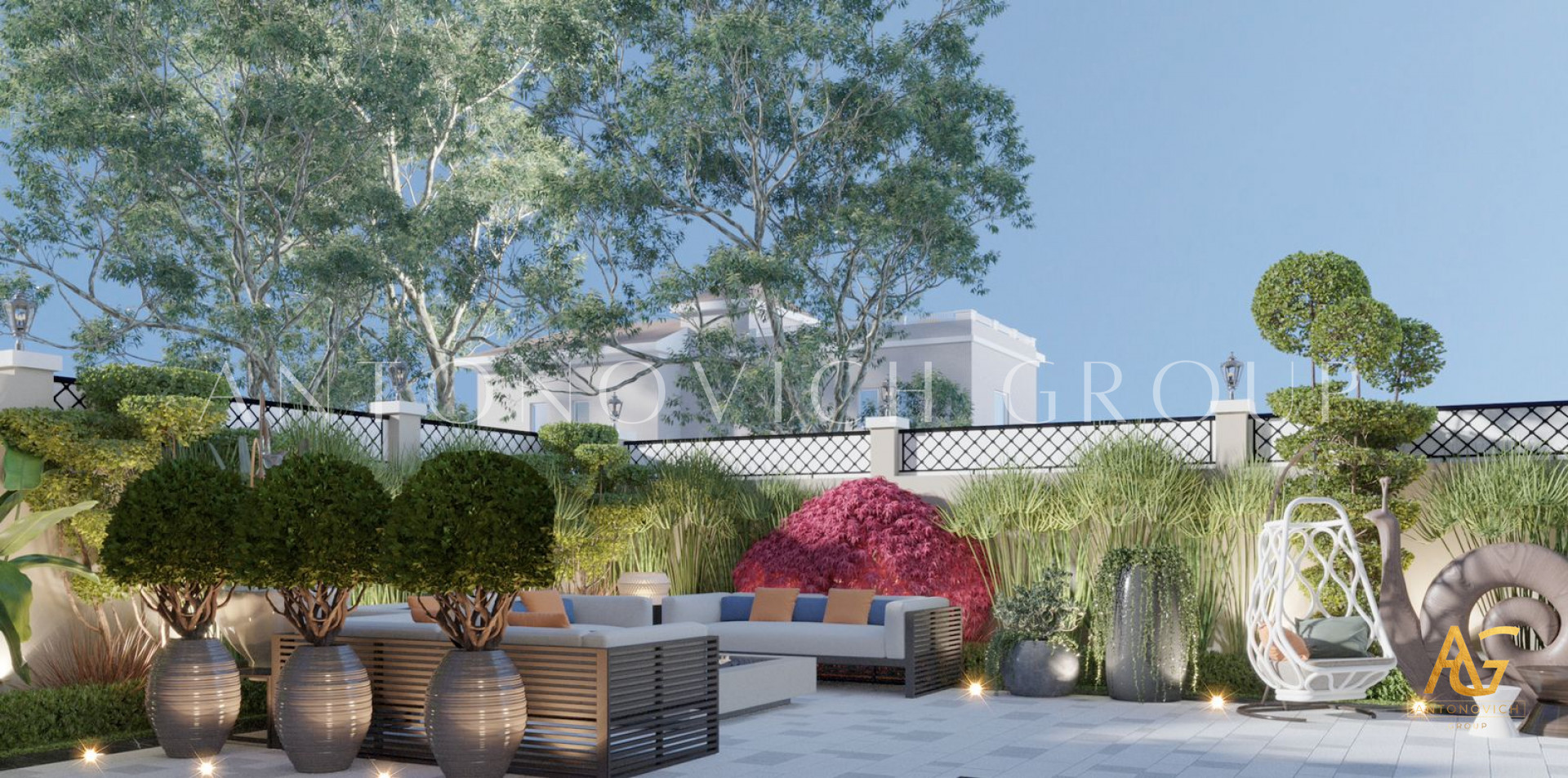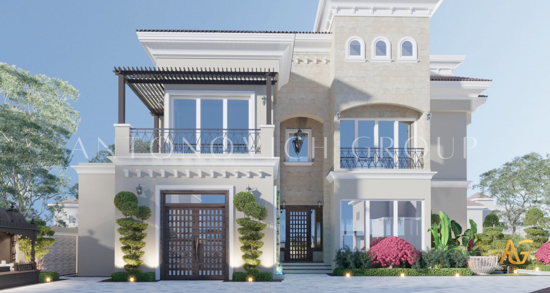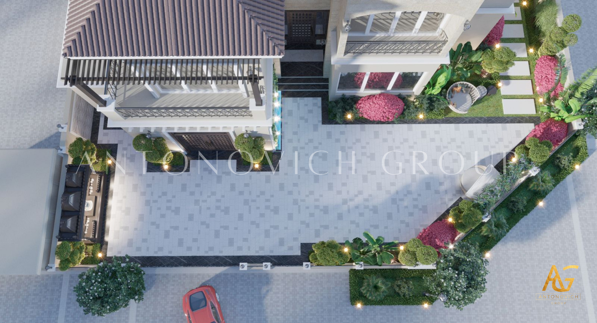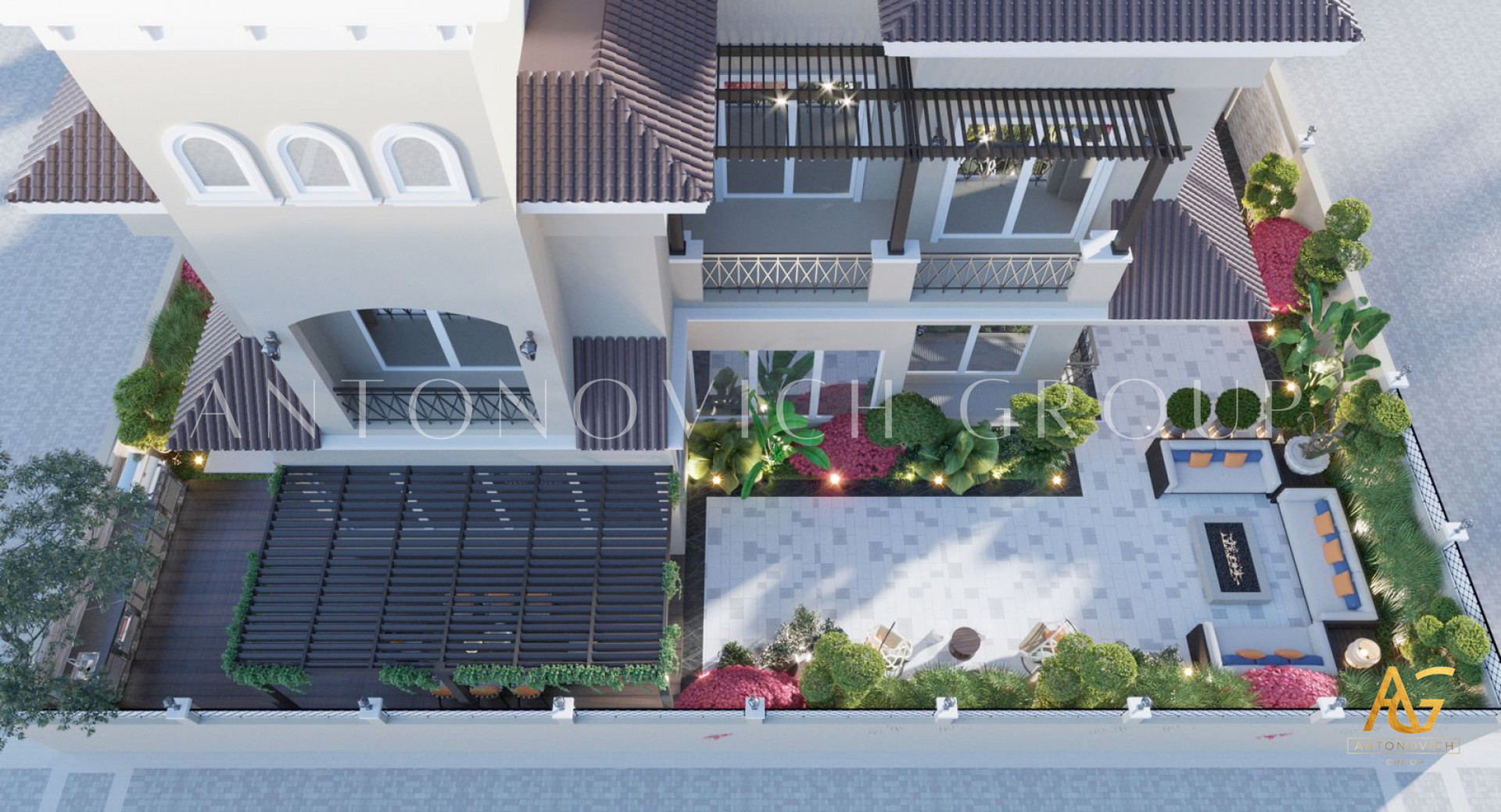 The Aldea is a popular residential area with a calm and comfortable ambiance. This is a peaceful corner of heaven where you may relax away from the hustle and bustle of the city. The region has beautiful villas that are surrounded by natural nature. There are several buildings available for family gatherings. The BBQ area is a terrific place to have fun. Inside, many villas include private pools and beautiful gardens. The Aldea contains everything a person may want, from stores to clinics. This Villa Exterior Design has been designed and developed by Antonovich Group the form its original plain and typical exterior features. The team has leveled up each exterior detail that consists of a spacious Spanish-inspired villa set against the backdrop of a desert landscape. Our team has performed a ranch-style with lush green courtyards inside. The exterior is surrounded by greenery and there are well-groomed walking paths throughout the landscape area.