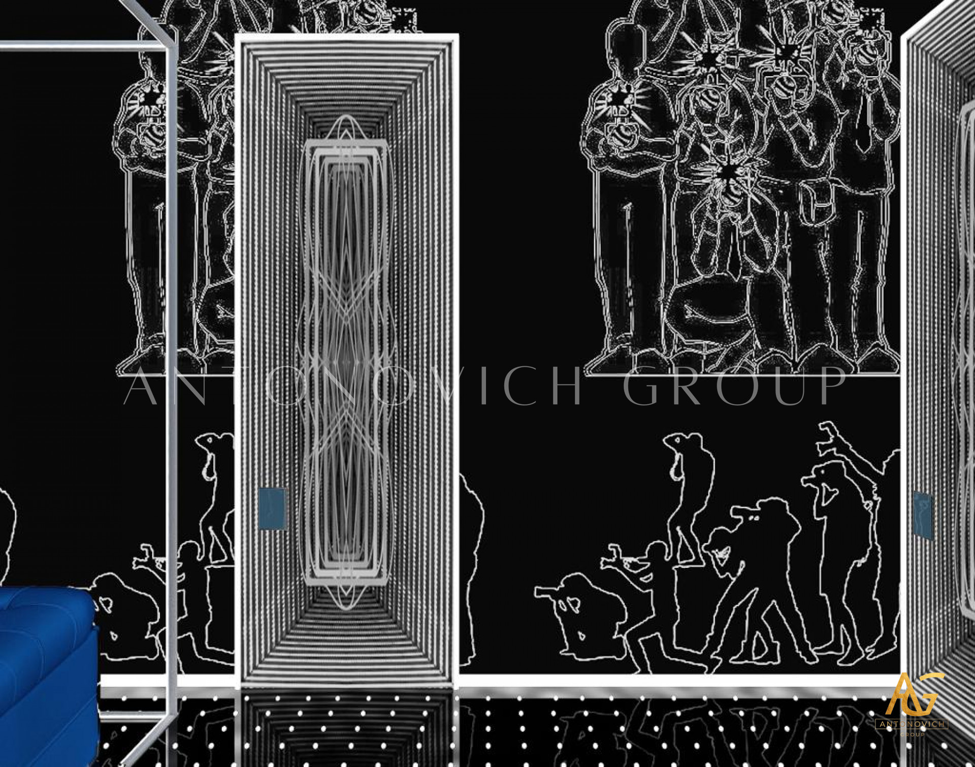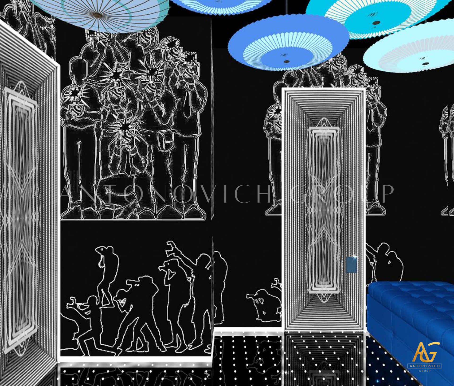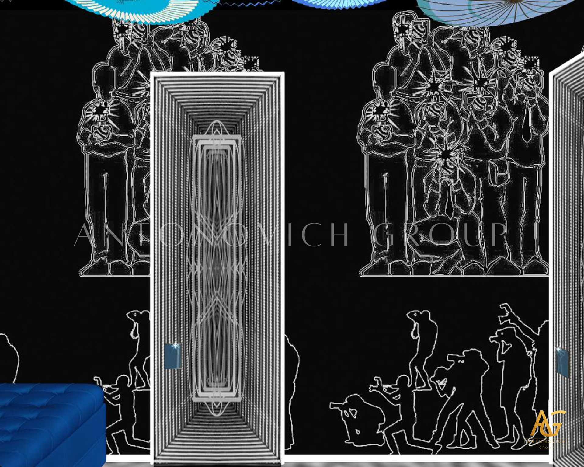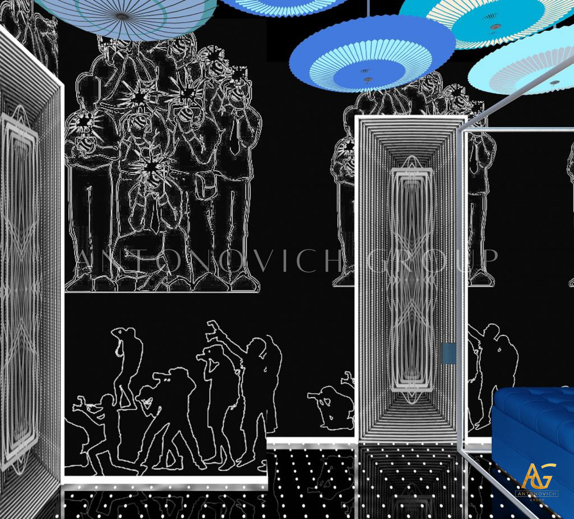 The black color with a hint of blue. This opulent restaurant is out of this world! The exquisite quality elements are ideal for a member of the executive. This premium Outstanding Restaurant Interior Design stands out thanks to its fine details and well-organized wall decors. The restaurant table and chairs are strategically situated in the center, making the entire luxury Outstanding Restaurant Interior Design simple to navigate. The shelves give plenty of space for you to store your belongings. It would be a big fun experience to be able to dine in this stunning high-end luxury Outstanding Restaurant Interior Design! The interiors stunning embellishments are out of this world. The intricacy of the lines, curves, and spirals is incredible. The colors compliment one another, and the luxury Outstanding Restaurant Interior Design includes lovely tones to make the space even more sumptuous. Luxury Antonovich Design also developed a one-of-a-kind ceiling. The pattern is quite attractive, and the chandelier completes the whole look. Looking down from the top gives the impression of being in a five-star hotel. Its one-of-a-kind and wont be found anyplace else. Magnificent, modern, and professional are the features of the beautiful interior design made for this project by Luxury Antonovich Design. Magnificent detailed features and patterns complement the main theme of the room in this beautiful and large luxury Outstanding Restaurant Interior Design. The drapes are stunning, with great black and dark blue color combinations, and the flooring has a pleasant texture.