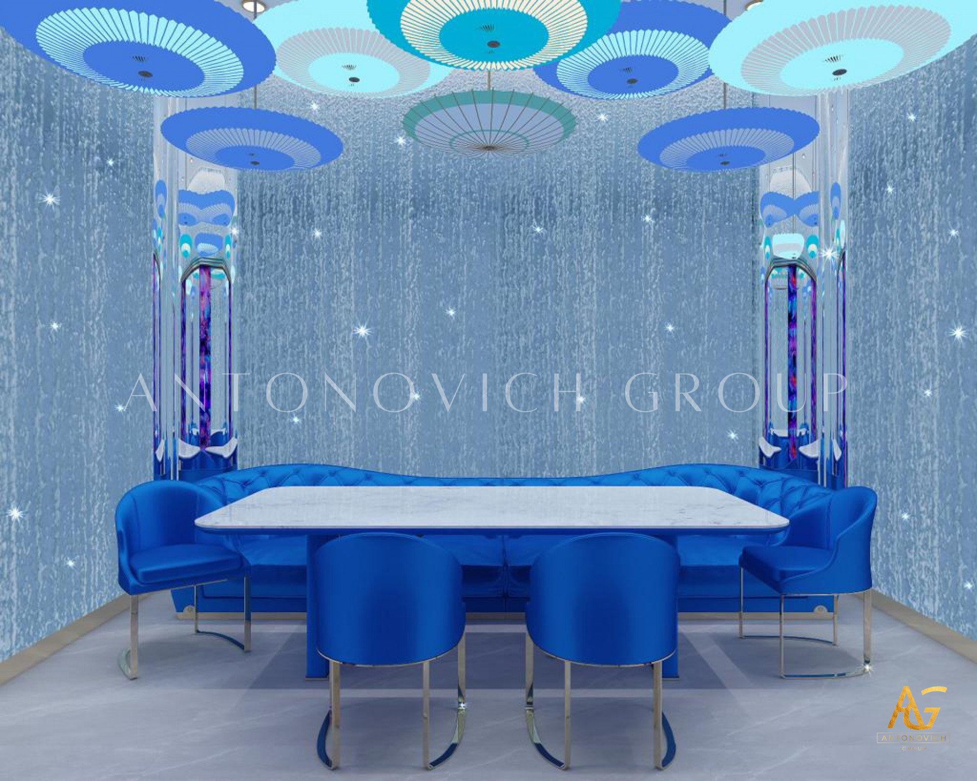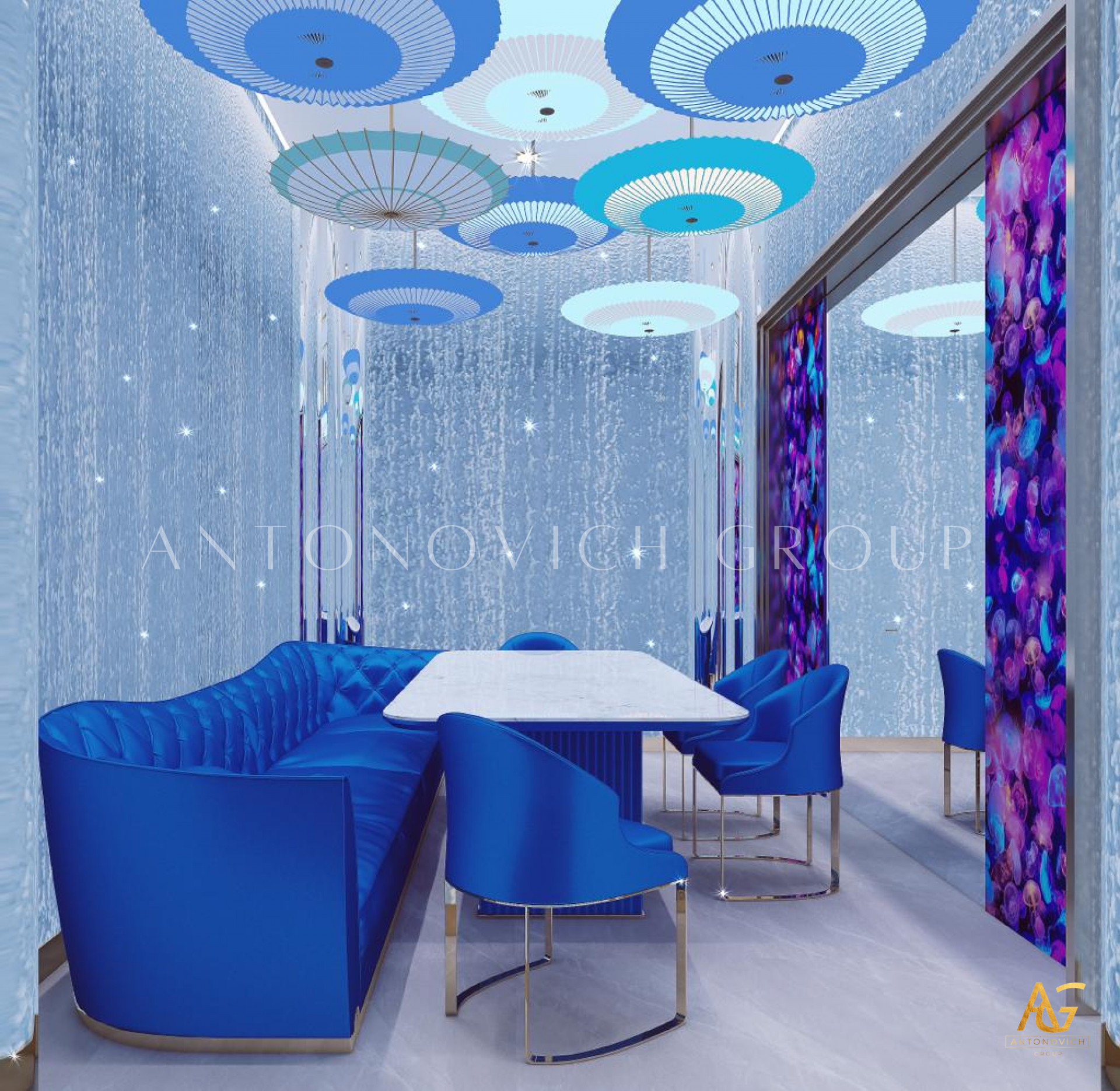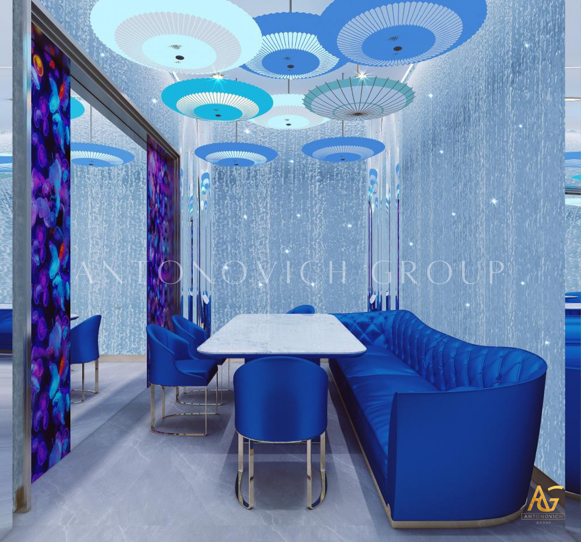 One of the world-renowned and Top Restaurant Design firms in Dubai is Luxury Antonovich Design. They have a fantastic workforce that can meet your goals and needs. As can be seen in the photos above, the design of this restaurant is rather lovely. The chairs are strategically placed next to the table, creating an optimal dining environment. You wont get bored dining with this Outstanding Restaurant Interior Design because it contains everything you need for a good day. With its cool tones, the mood of this Outstanding Restaurant Interior Design is also rather lovely. A bar or a pad is typically darker and more austere in appearance. With its fantastic staff of experienced interior designers, Luxury Antonovich Design has perfected this style. The elements in this premium Outstanding Restaurant Interior Design are maintained quite modern. The blue and neutral colors provide a breath of fresh air to this space. The cold tones are a standout. To establish a calm ambiance in this luxury Outstanding Restaurant Interior Design, various colors were used. When it comes to interior design, blue has been a favorite of many for decades. It is more practical and easy to organize than steel or concrete. Blue is also more environmentally friendly. Its contemporary appearance can be found in many places. Its natural appearance makes it one of the most adaptable materials for any interior.