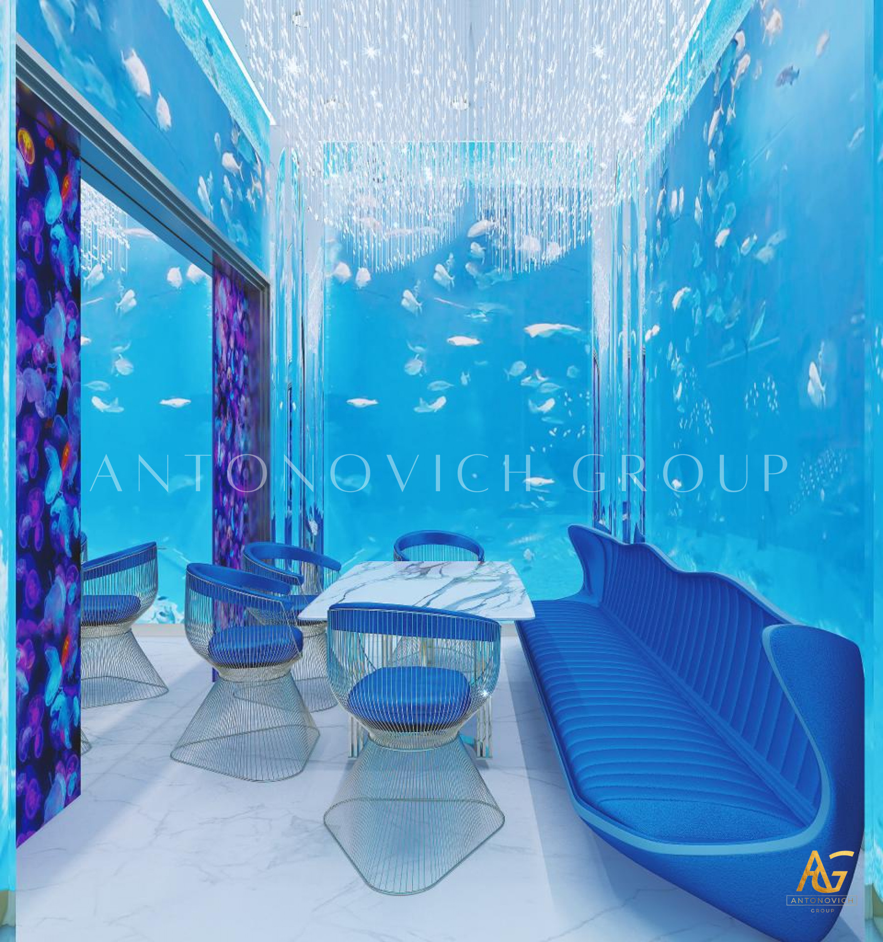 This newest project by Luxury Antonovich Design and its Restaurant decorations service in Dubai is all about this Outstanding Restaurant Interior Design! One of the features of this amazing interior refuge is the lovely aquarium. The glass used is luxurious and has a distinctive feel to it. You can easily take great photos at this location. Its design and color are very stunning, and it complements the rooms luxurious feel perfectly. The furniture designs were also well-crafted. The chair is comfortable and ergonomic, and the table contains a cabinet where you may store your stuff. The walls of the luxury Outstanding Restaurant Interior Design are extremely attractive. The glossy finish is guaranteed to make you feel opulent. The luxury Outstanding Restaurant Interior Design also has a high ceiling, which provides your restaurant a larger and more spacious feel. Dining here would be ideal because it possesses all of the characteristics of fantastic luxury design with a modern interior design. This premium Outstanding Restaurant Interior Design includes everything you need to dine every day. The primary material utilized in this finish is glass. It has a really unique gleaming contour. It isnt monotonous or excessive. There are numerous patterns and exquisite elements that we are confident you will not overlook. The dark and luxurious interior design of the premium dining is also present. Luxury Antonovich Design has done an amazing job with the colors, and the general layout looks so fresh and attractive. The processes utilized are quite precise, and the luxury Outstanding Restaurant Interior Design resulted in a stunning glass creation that is the stuff of many peoples dreams.