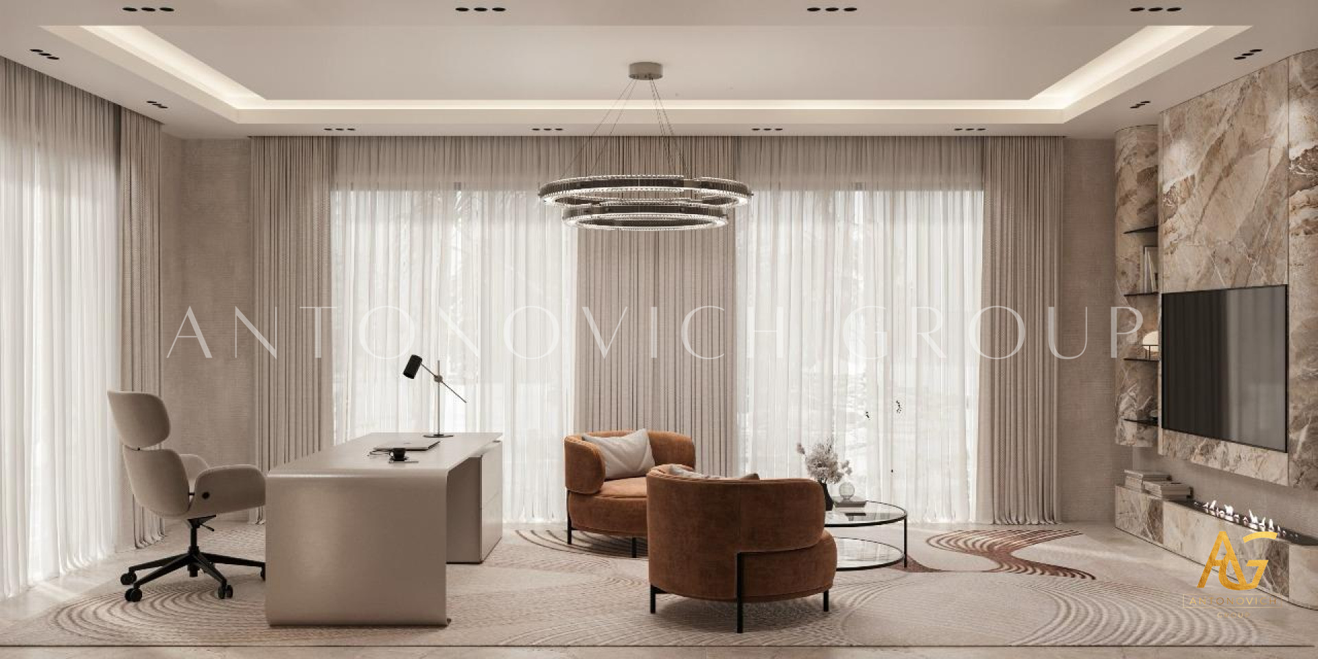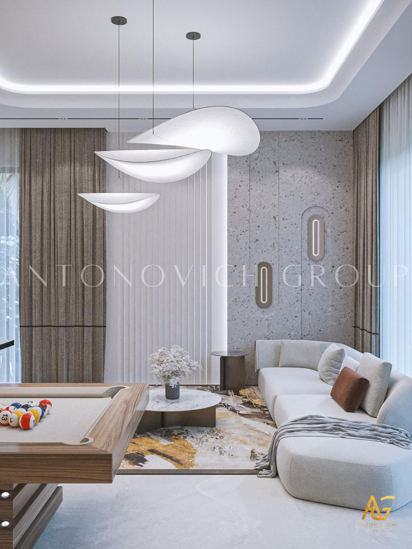 Every Antonovich Group project begins with a strong design vision. For this villa, the goal was to create a space that embodies both timeless sophistication and contemporary functionality. The design team worked closely with the client to understand their lifestyle and aspirations, developing a concept that combined luxury aesthetics with practical comfort. From the initial sketches to detailed 3D renderings, the villa’s design was carefully tailored to reflect exclusivity and refinement.