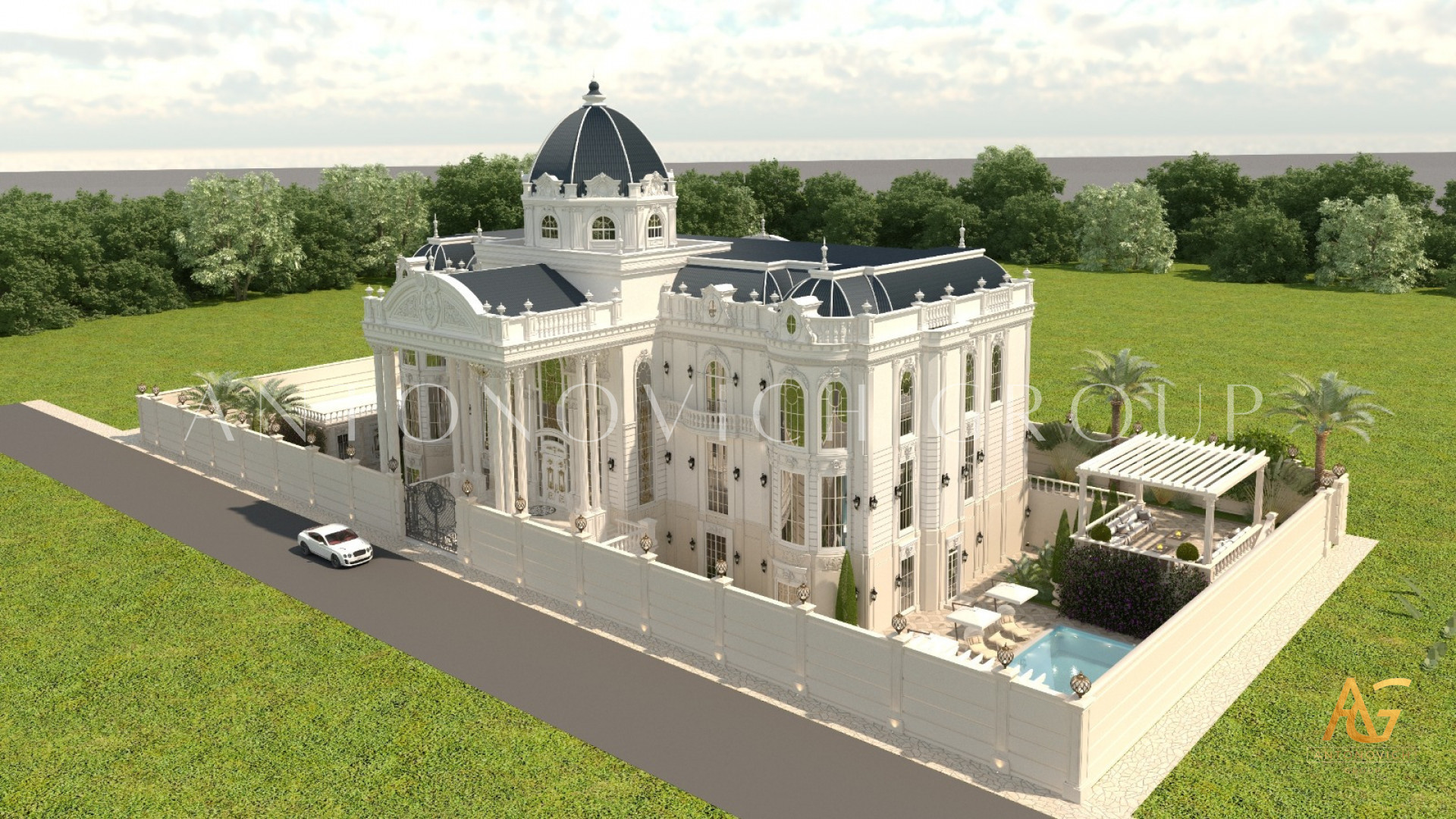 Unmatched Design Expertise: The classic villa exterior designs by Antonovich Group are unique, tailored to each client's taste, and executed with architectural precision.