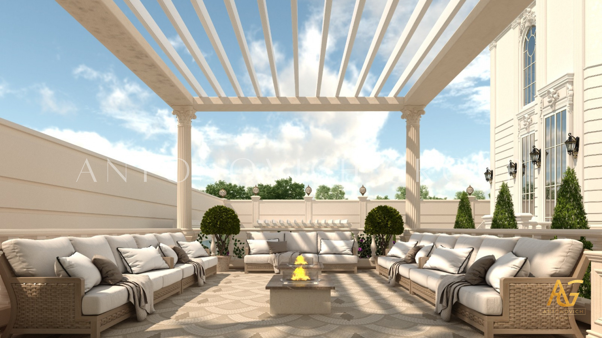 Antonovich Group’s approach to classic villa exterior design embodies a perfect fusion of traditional architectural elements and modern innovations. The meticulous attention to detail can be seen in every facade, column, and balcony. This is achieved through expert coordination between their construction and fit-out contractors, who work seamlessly to ensure that every project meets the highest standards of luxury.