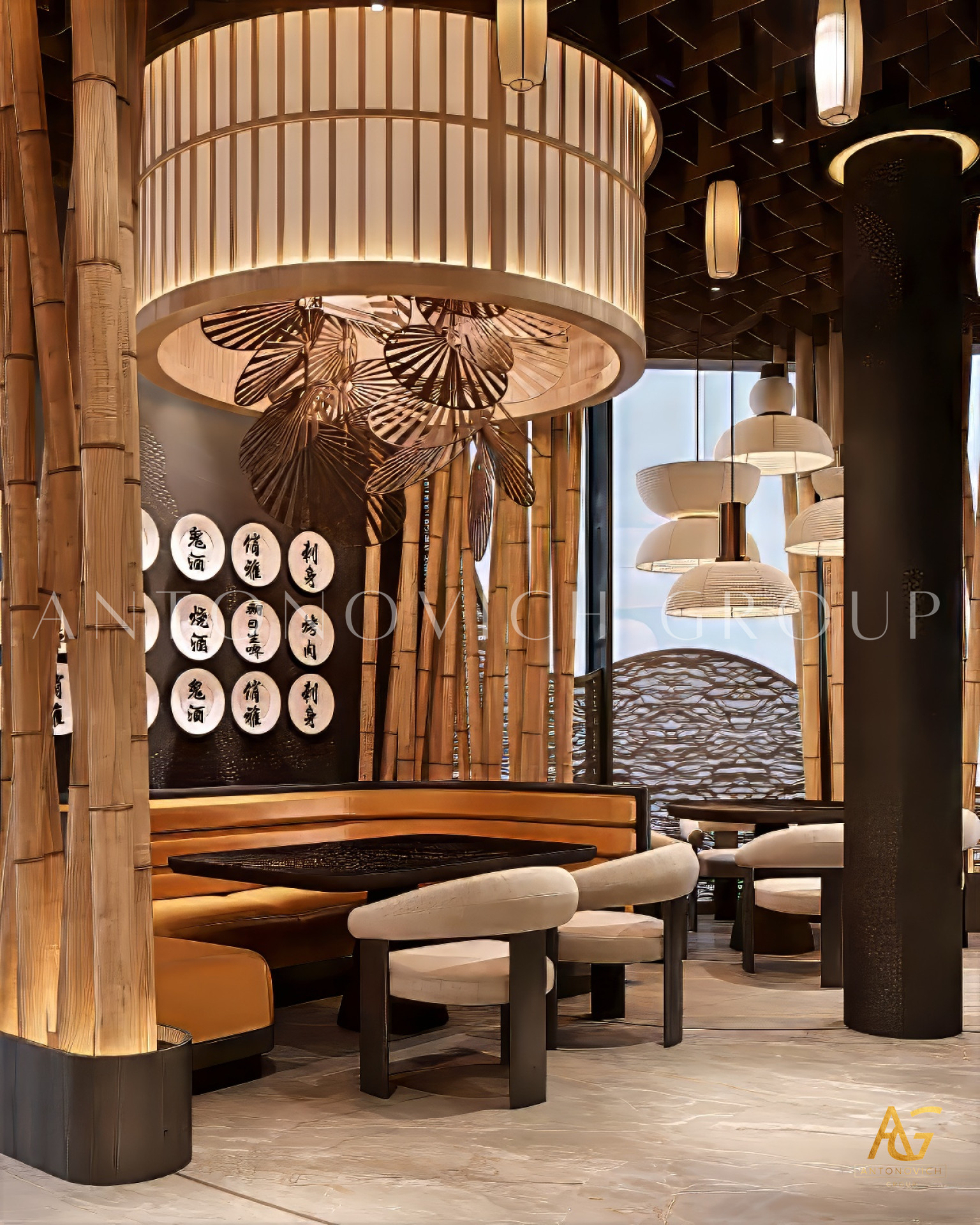- A Chinese restaurant interior design must have music, it's a requirement. Music engages all of the senses, and the perfect music will motivate diners to consume more food. The style of music will depend on the restaurant's overarching theme. Install the most modern stereo system so that it will reverberate soft music from several locations throughout the restaurant, rather than having one speaker that is constantly blasting music.