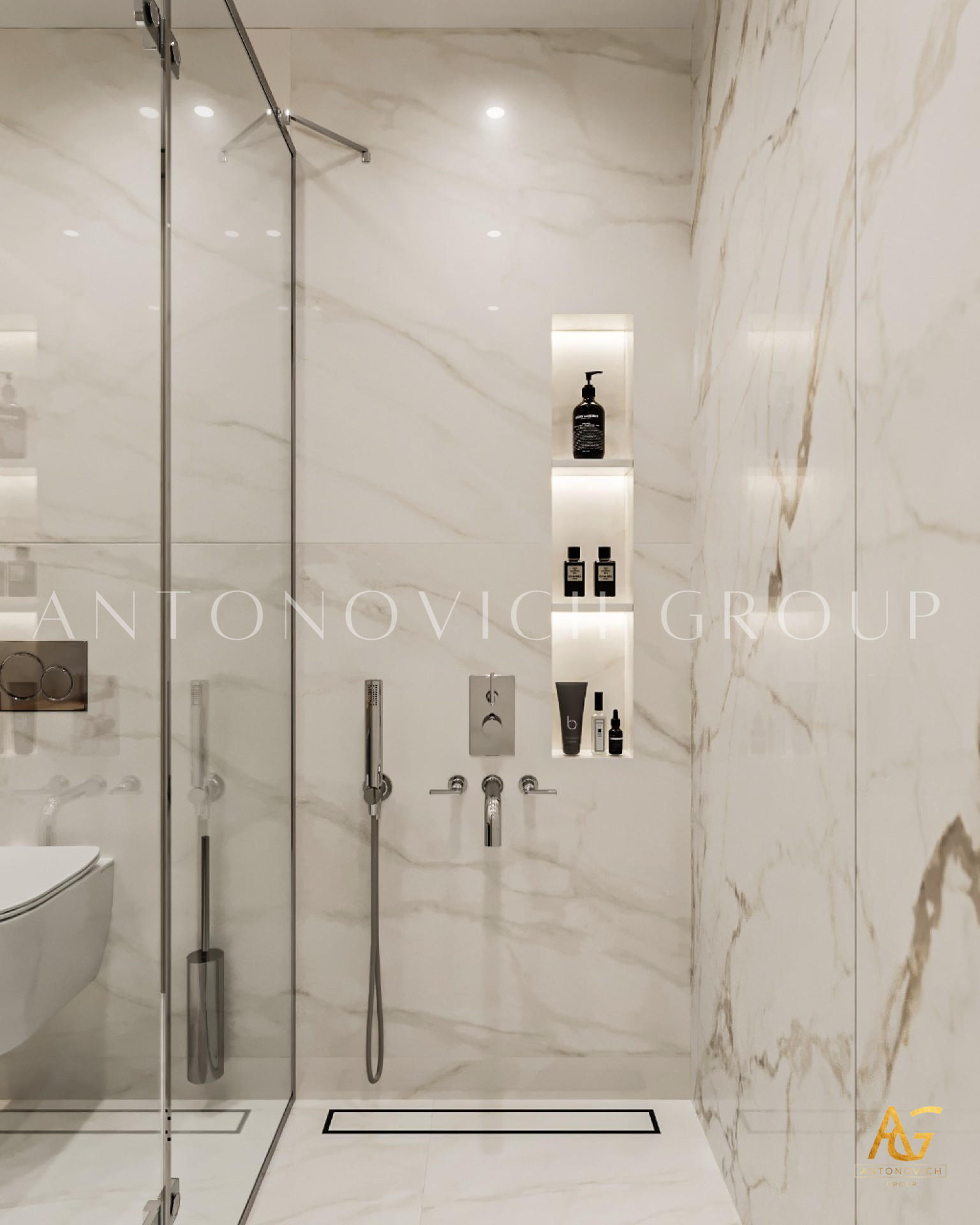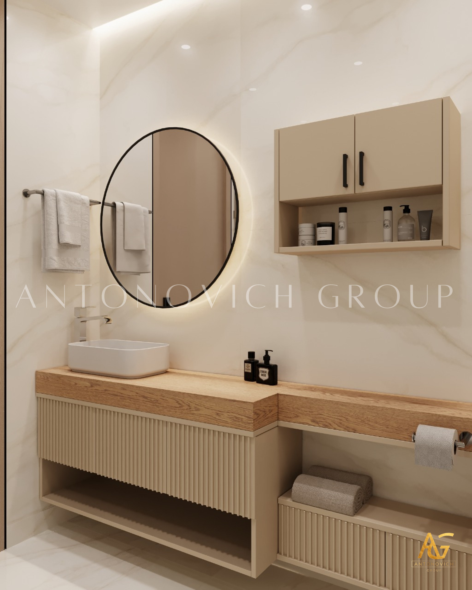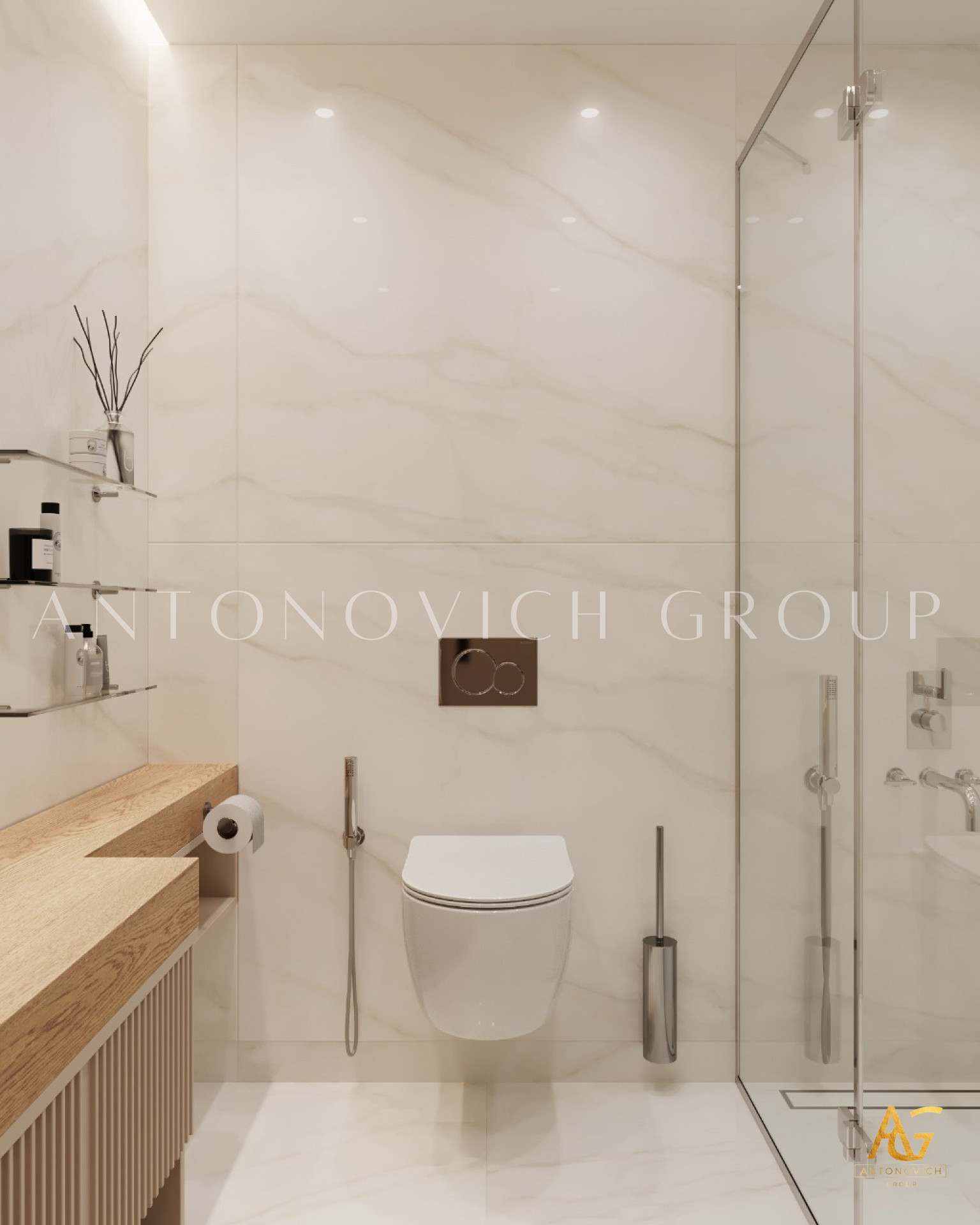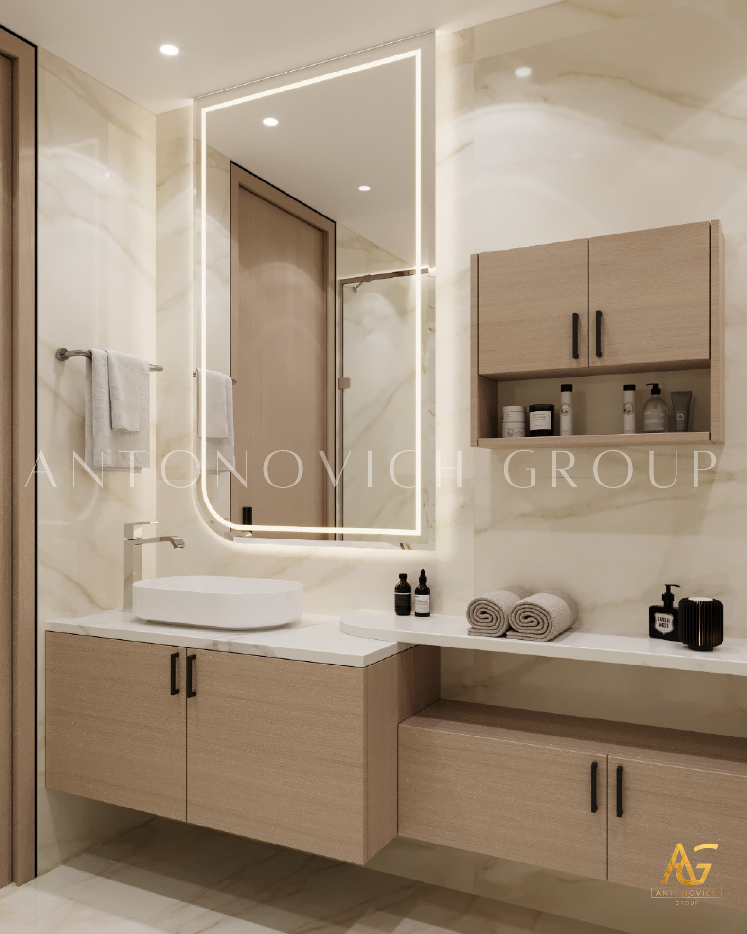 Antonovich Group is continuously attempting to provide the most luxurious design arrangement for each bathroom in order to create the most exquisite style, as it has become one of the most significant representations of any house interior. Every detail and design concept has been painstakingly grouped into the most accurate design implementations. Bathroom interiors are designed in accordance with the entire home projects concept design to achieve the best style consistency. A modern minimalist interior design mood for the bathroom is what the team has been very well executed that meets the complete requirement of the owner.
